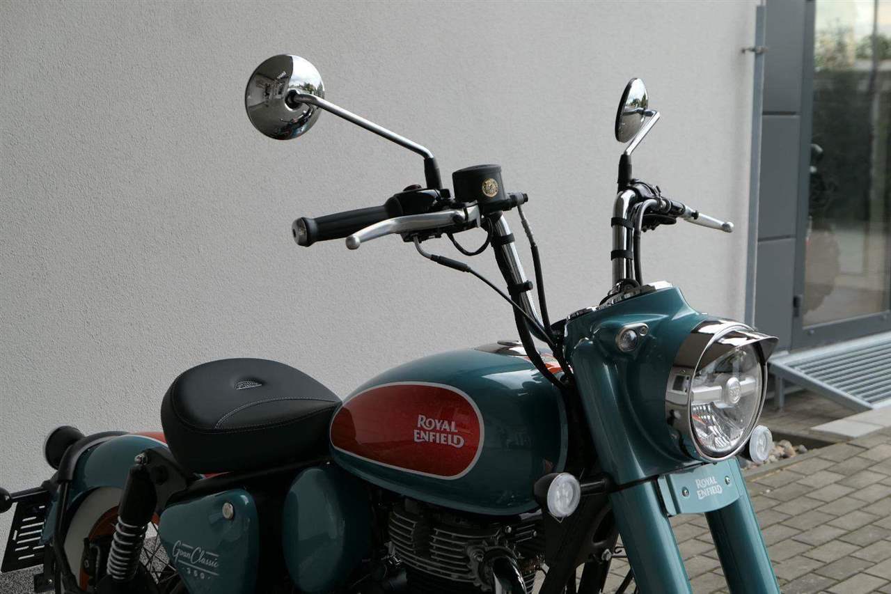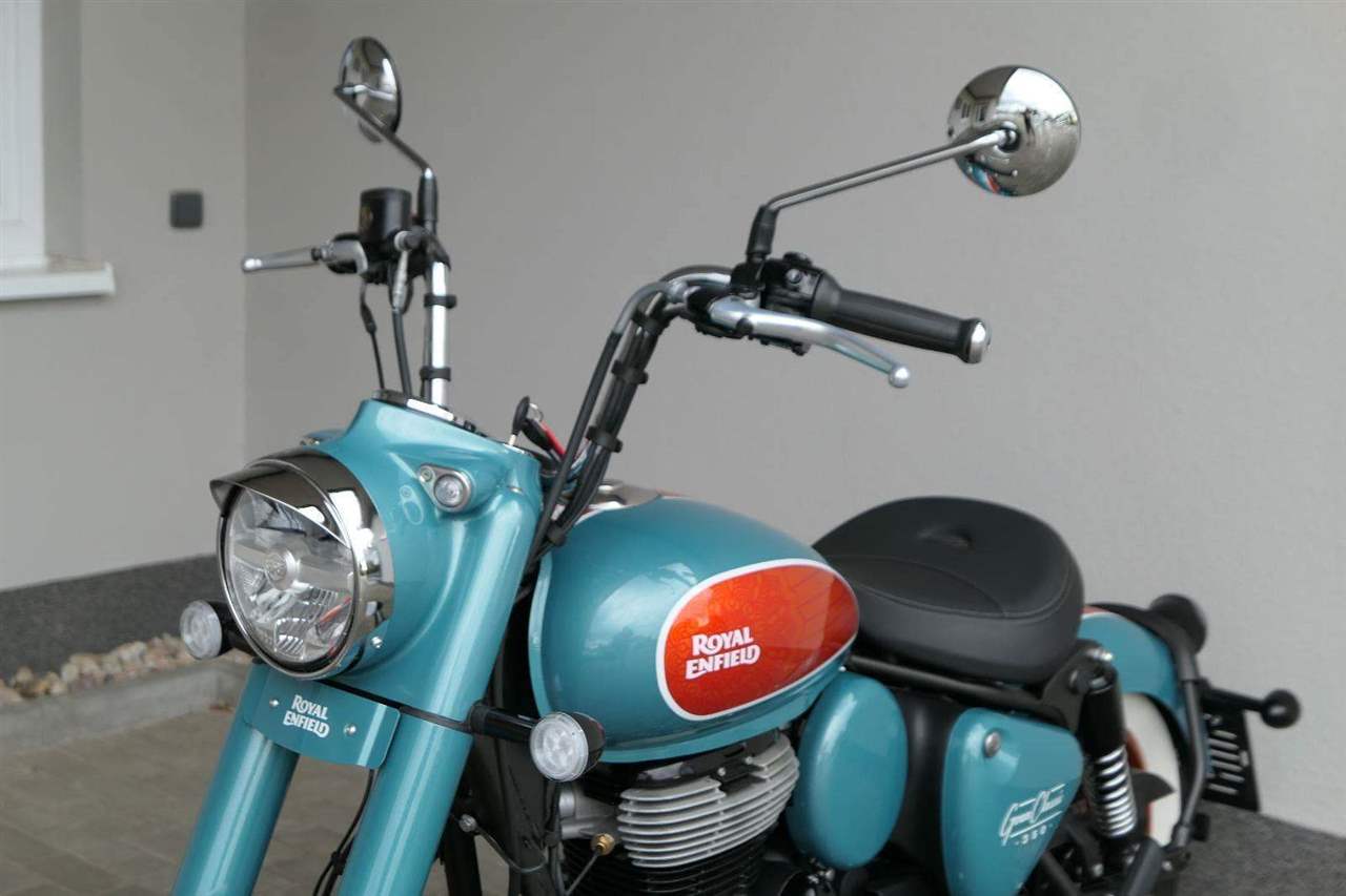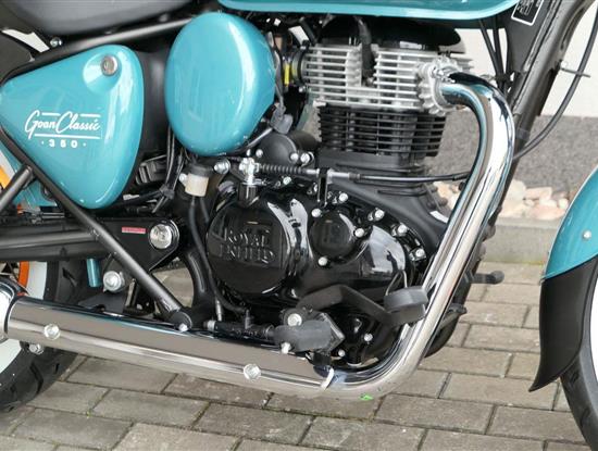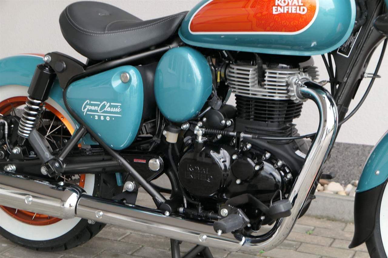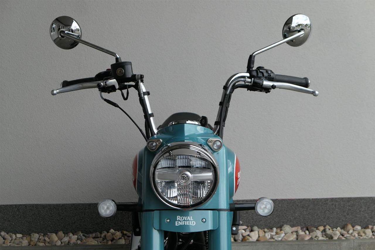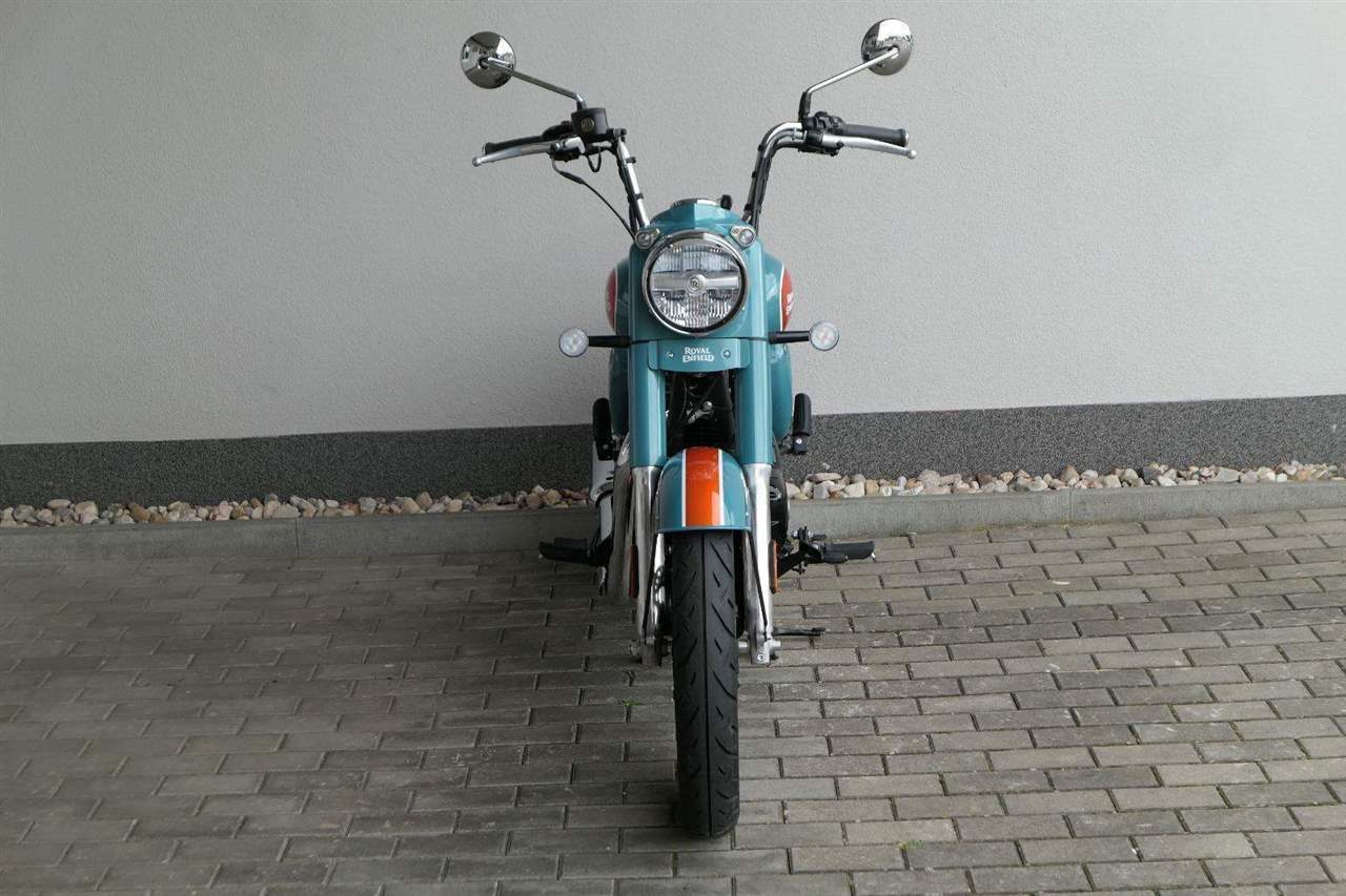 - Osvědčený motor 350 cm³ (J-platforma) – kultivovaný chod, spolehlivost a typický zvuk Royal Enfield