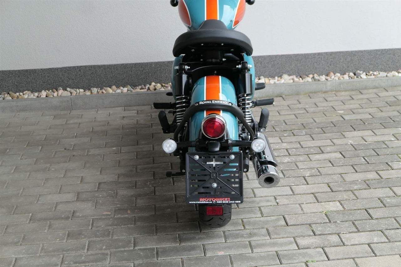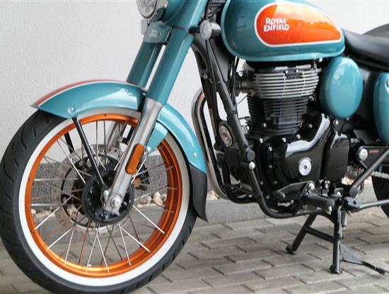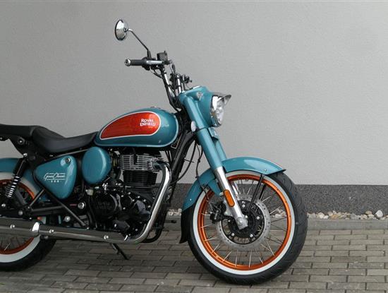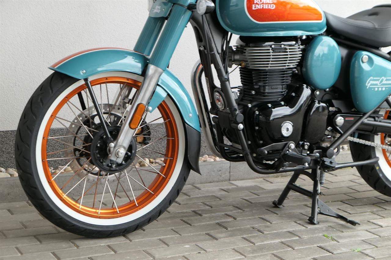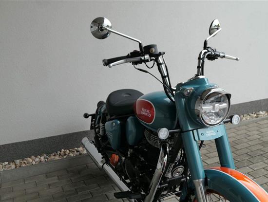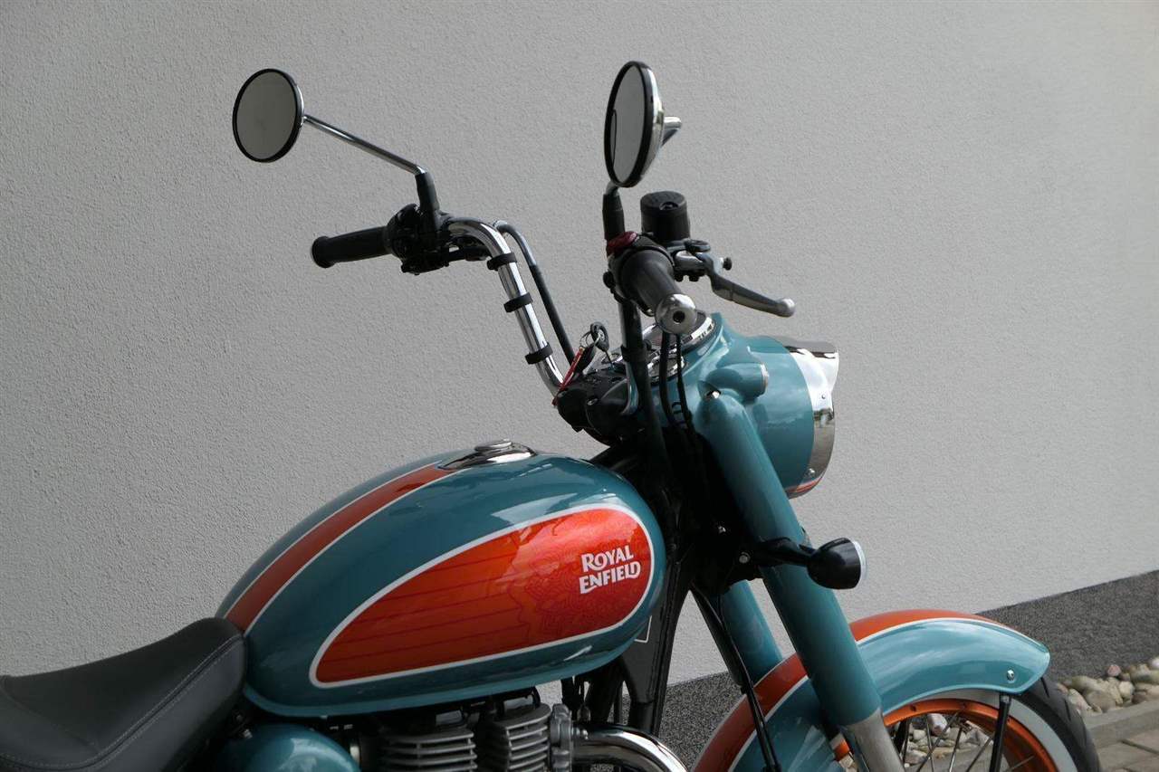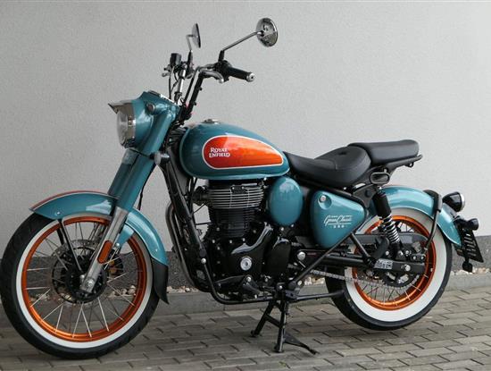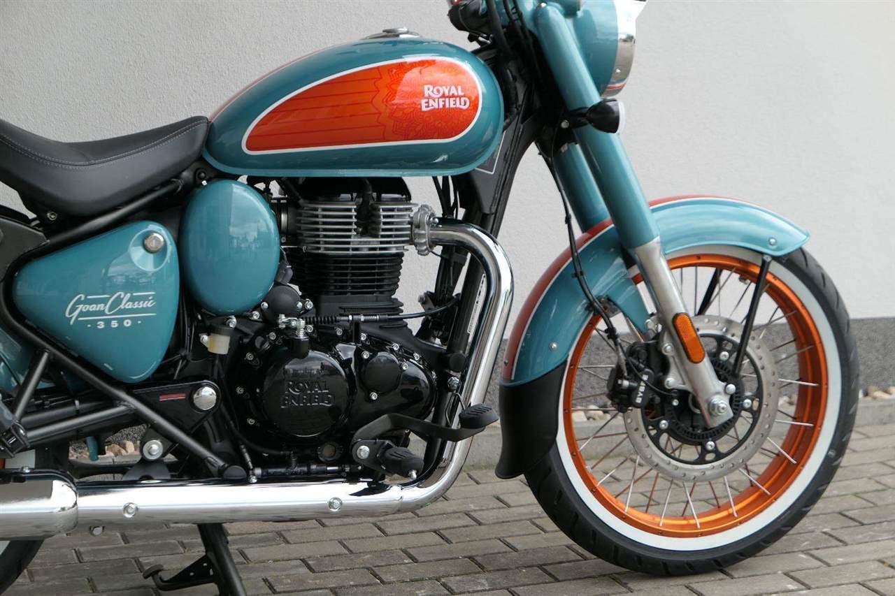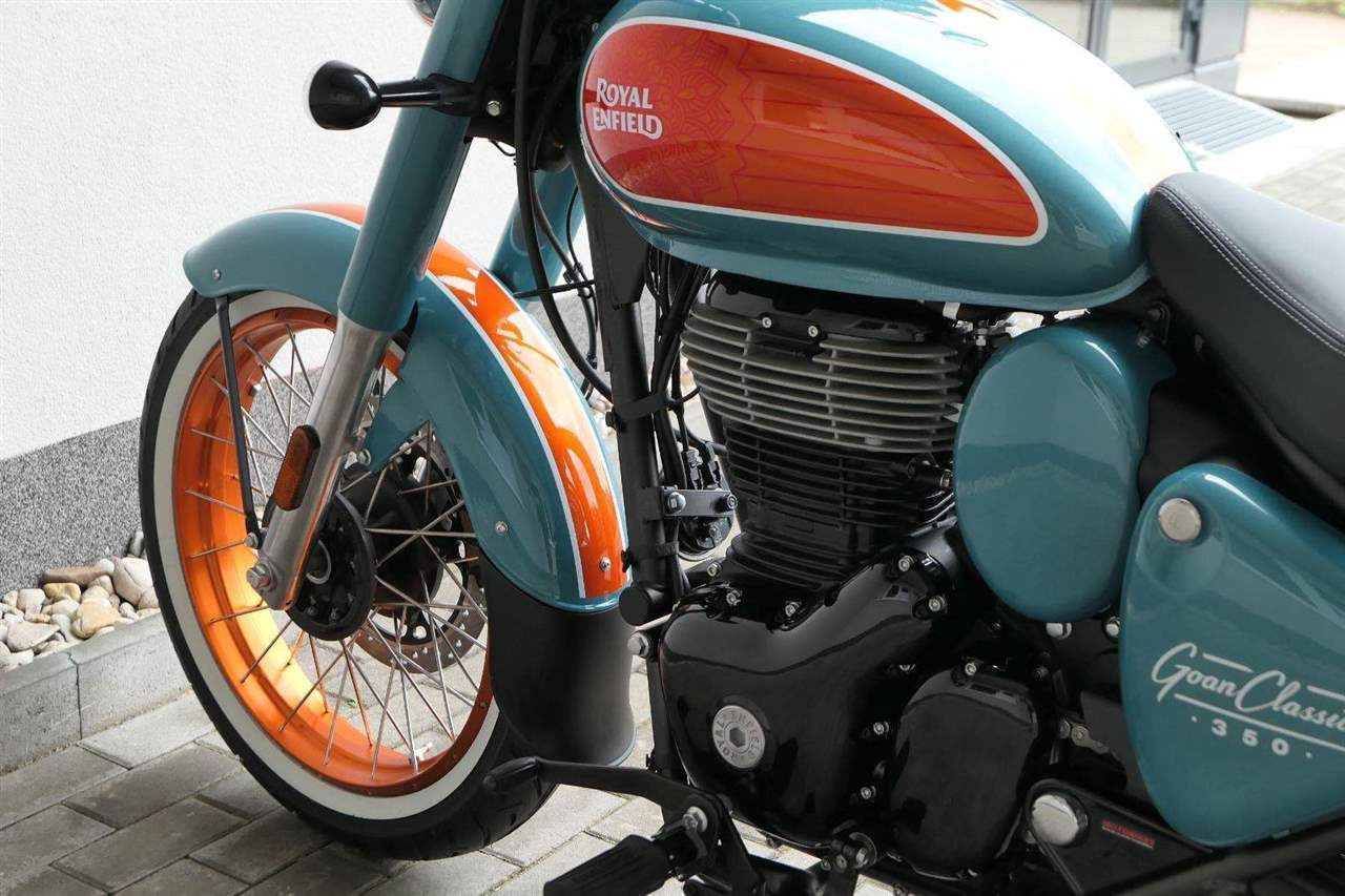 - Osvědčený motor 350 cm³ (J-platforma) – kultivovaný chod, spolehlivost a typický zvuk Royal Enfield