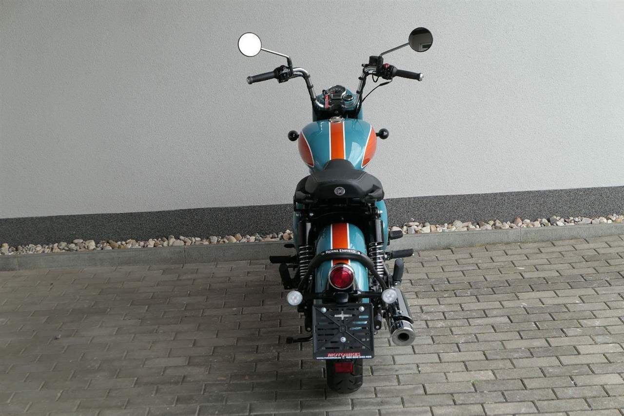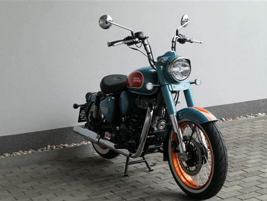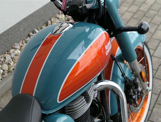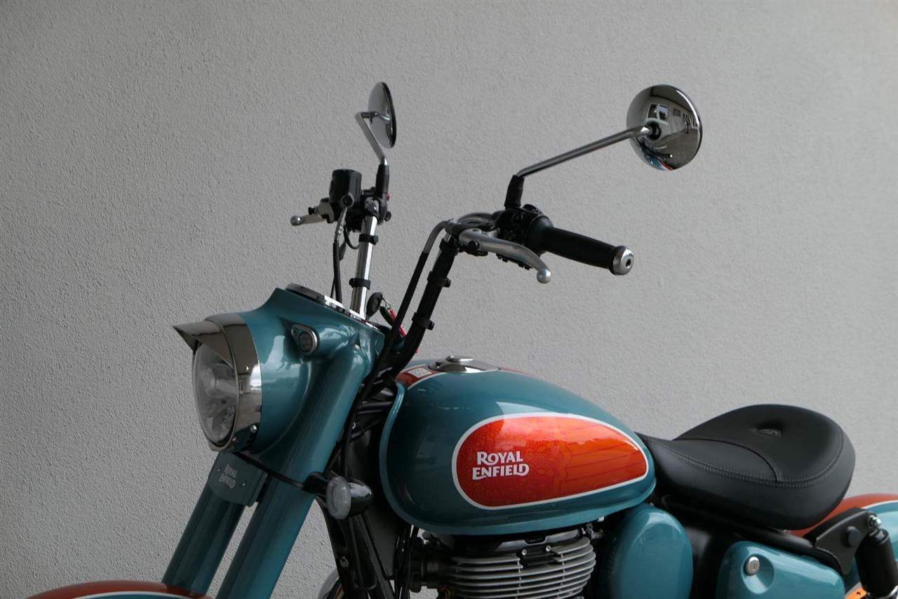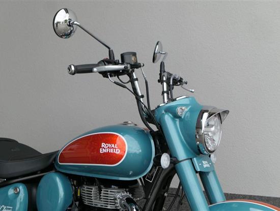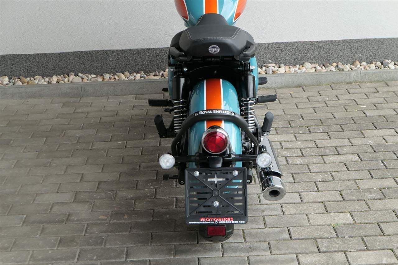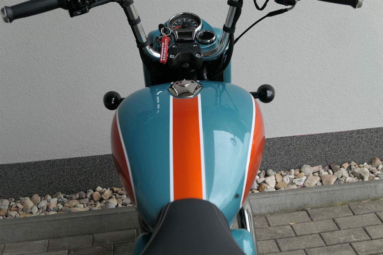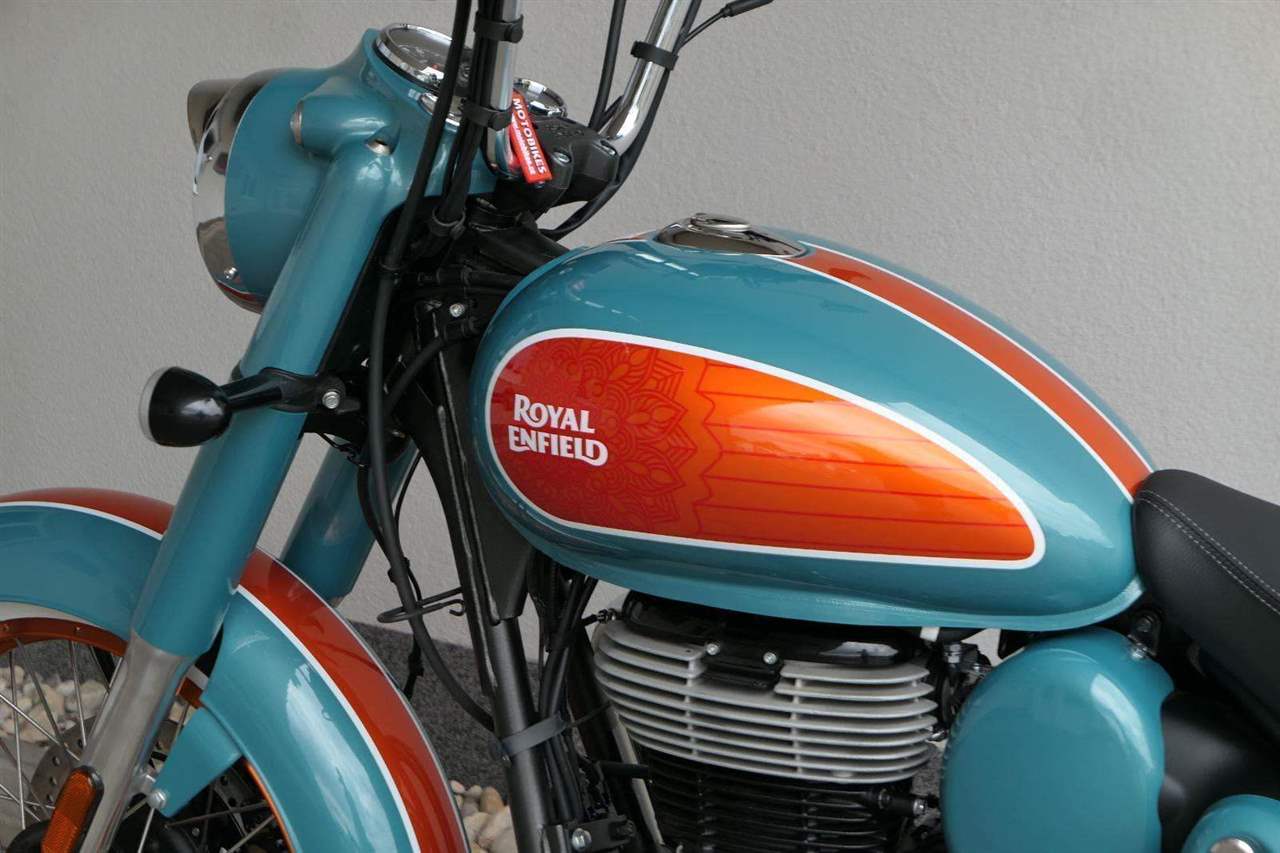 - Osvědčený motor 350 cm³ (J-platforma) – kultivovaný chod, spolehlivost a typický zvuk Royal Enfield