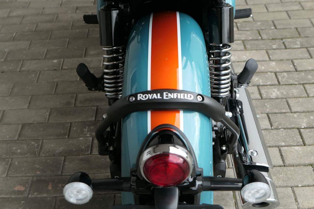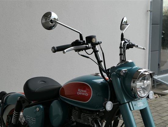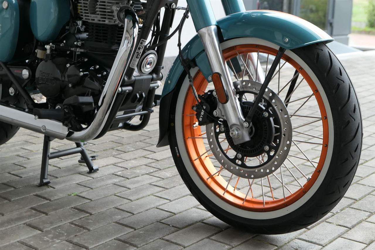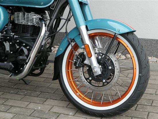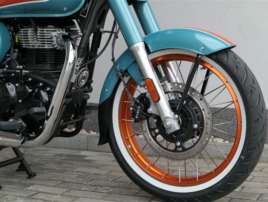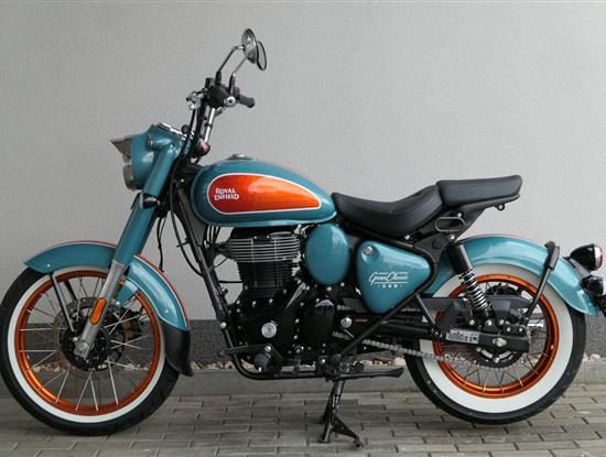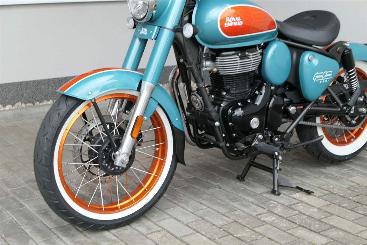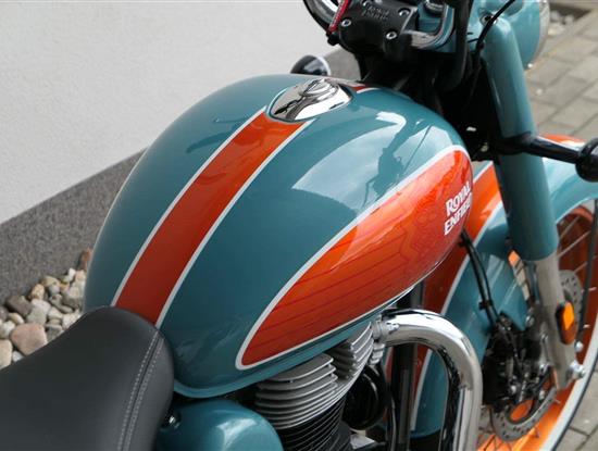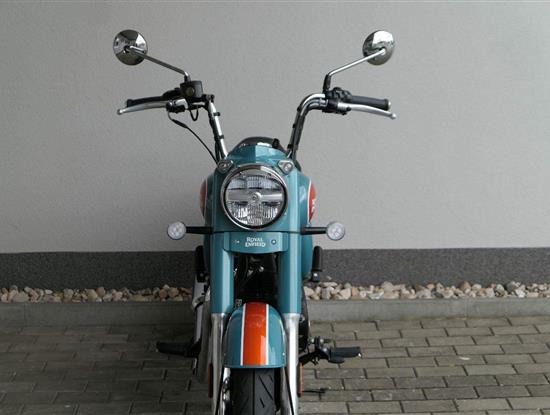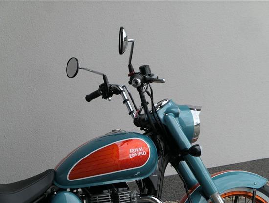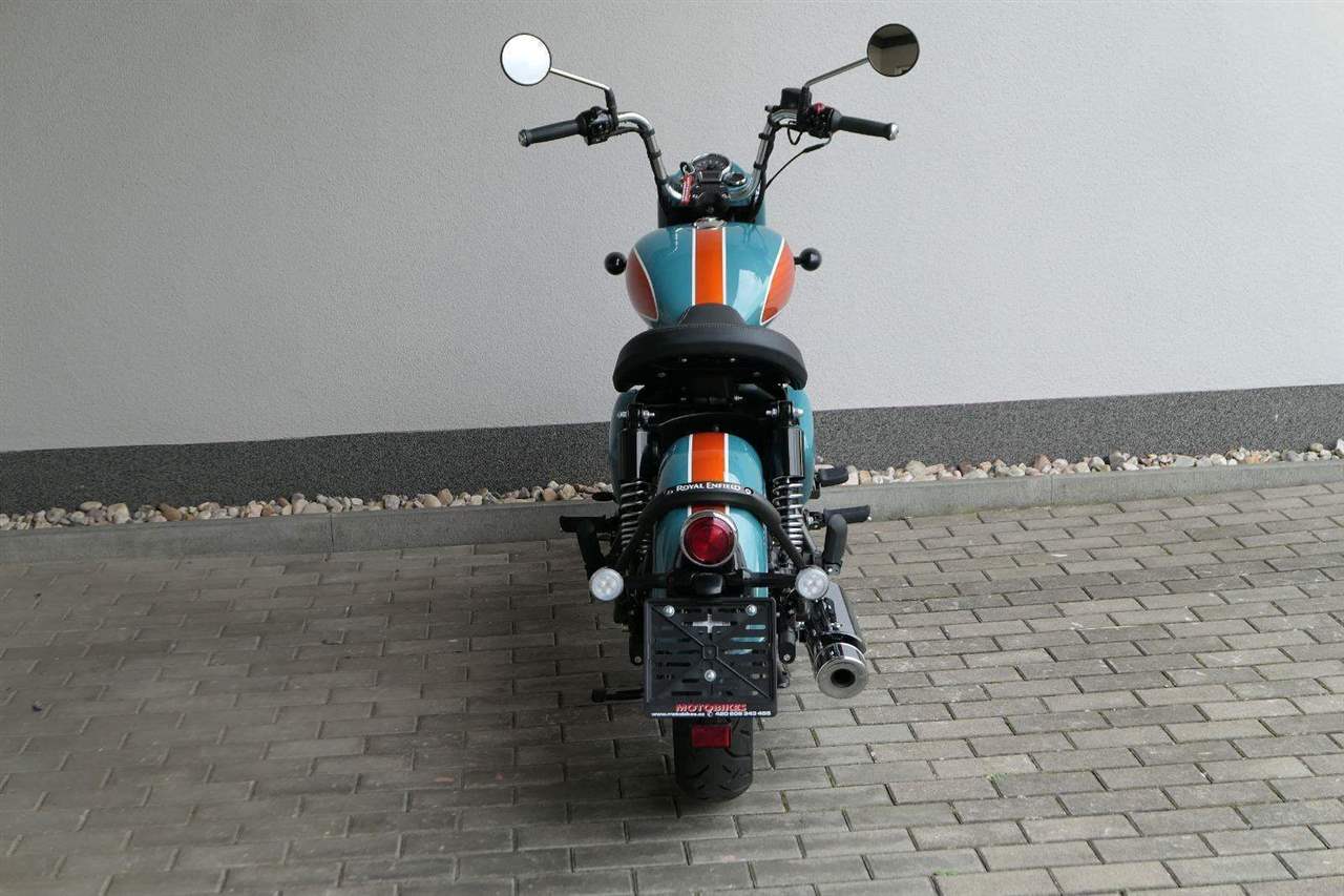 - Osvědčený motor 350 cm³ (J-platforma) – kultivovaný chod, spolehlivost a typický zvuk Royal Enfield