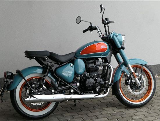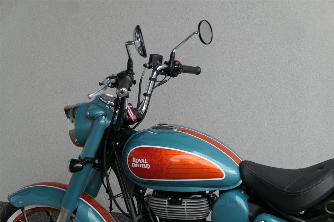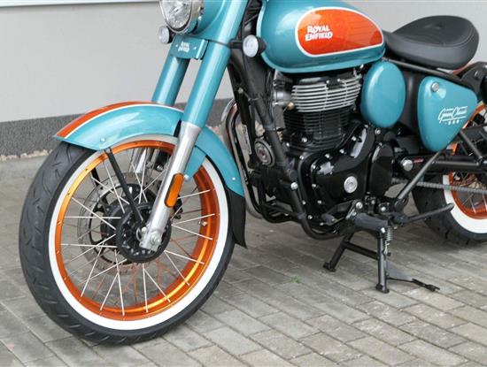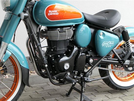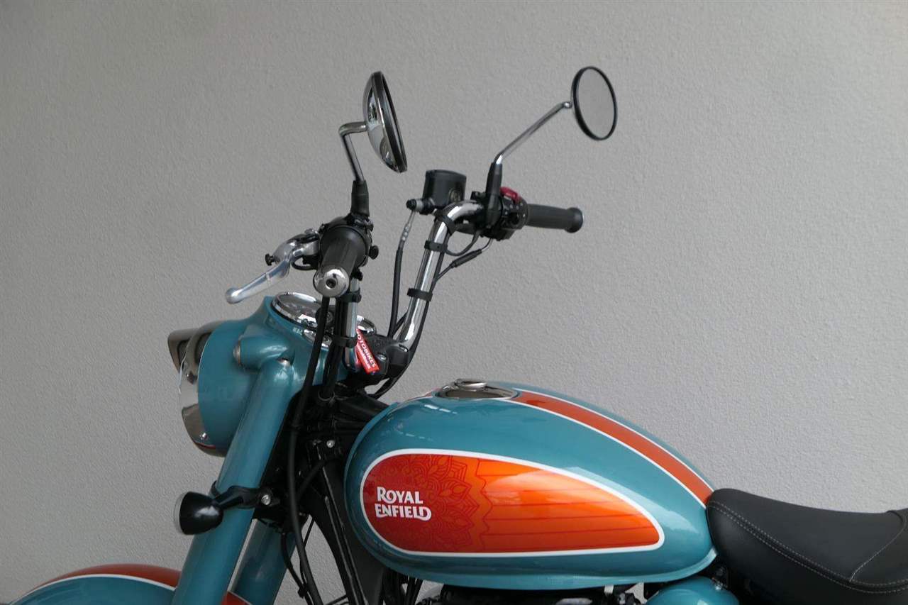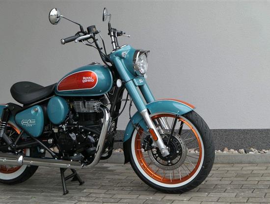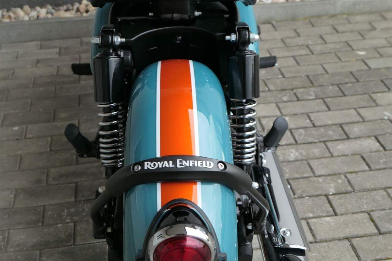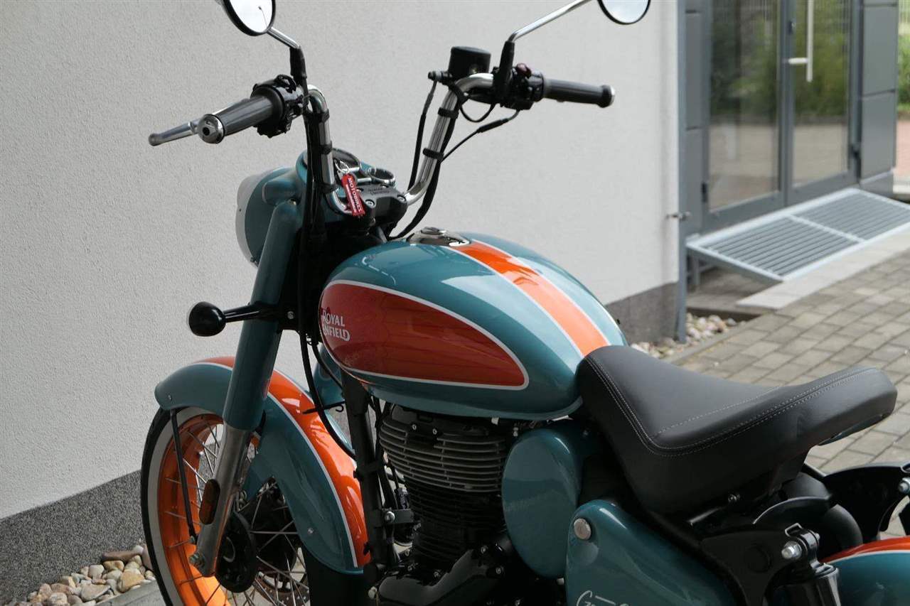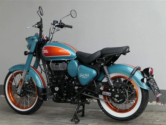 - Osvědčený motor 350 cm³ (J-platforma) – kultivovaný chod, spolehlivost a typický zvuk Royal Enfield