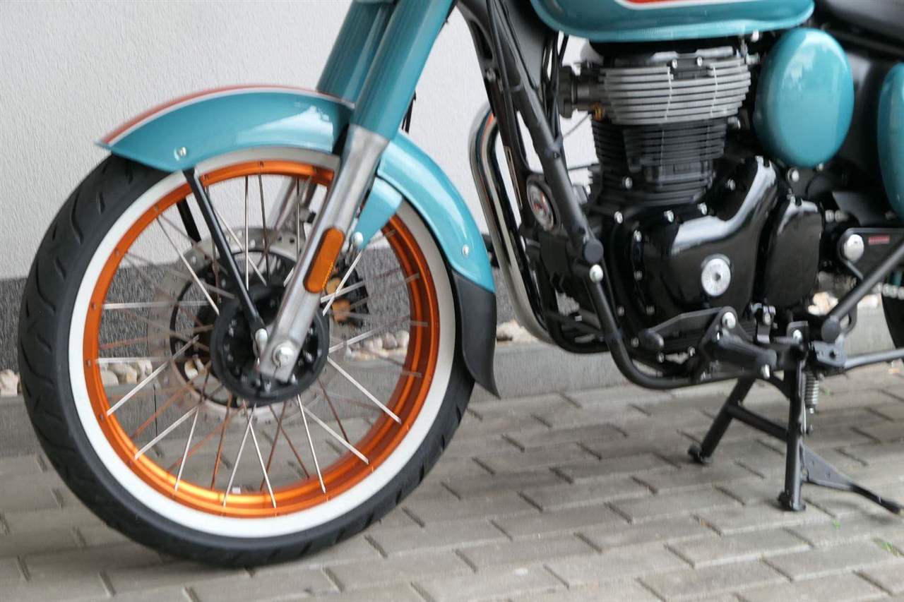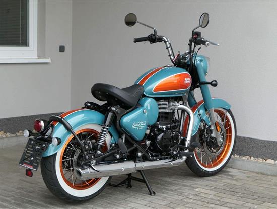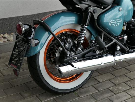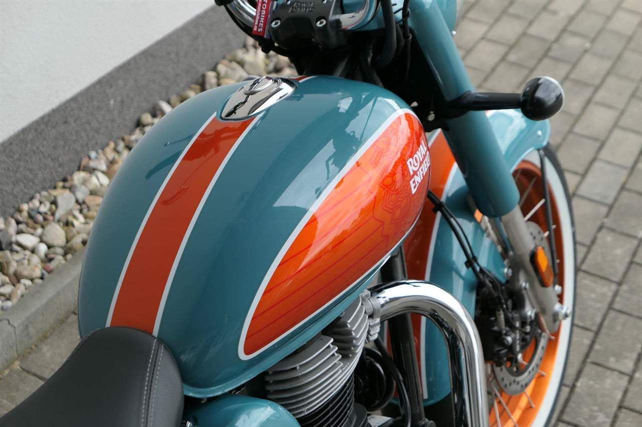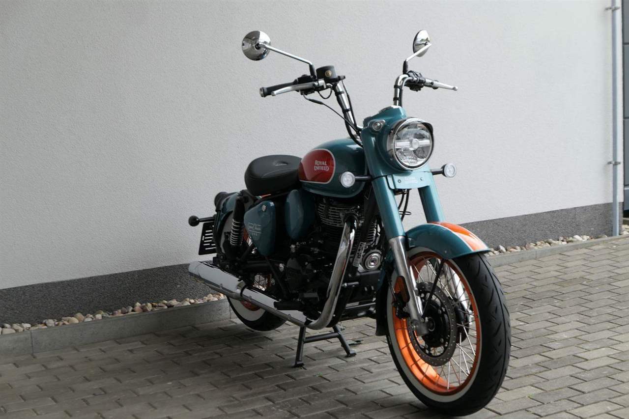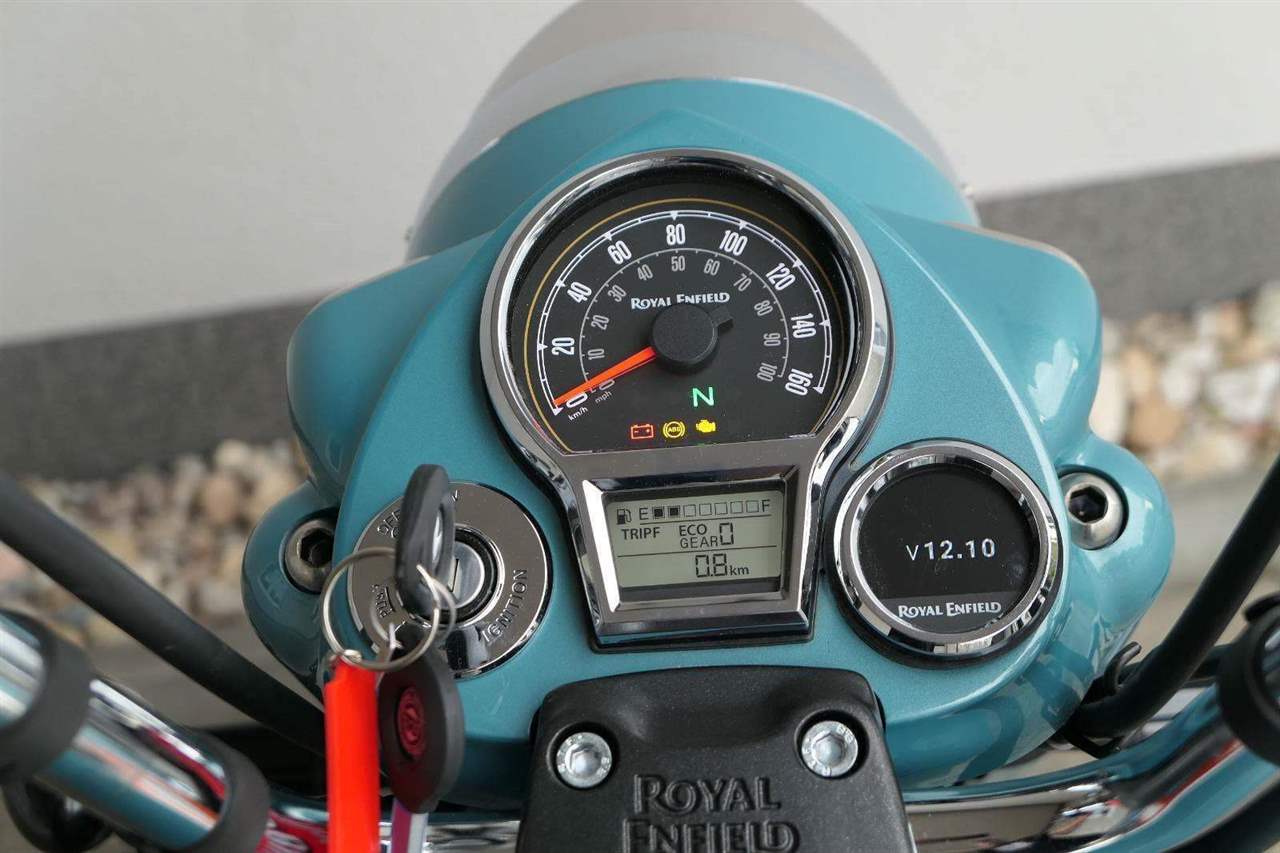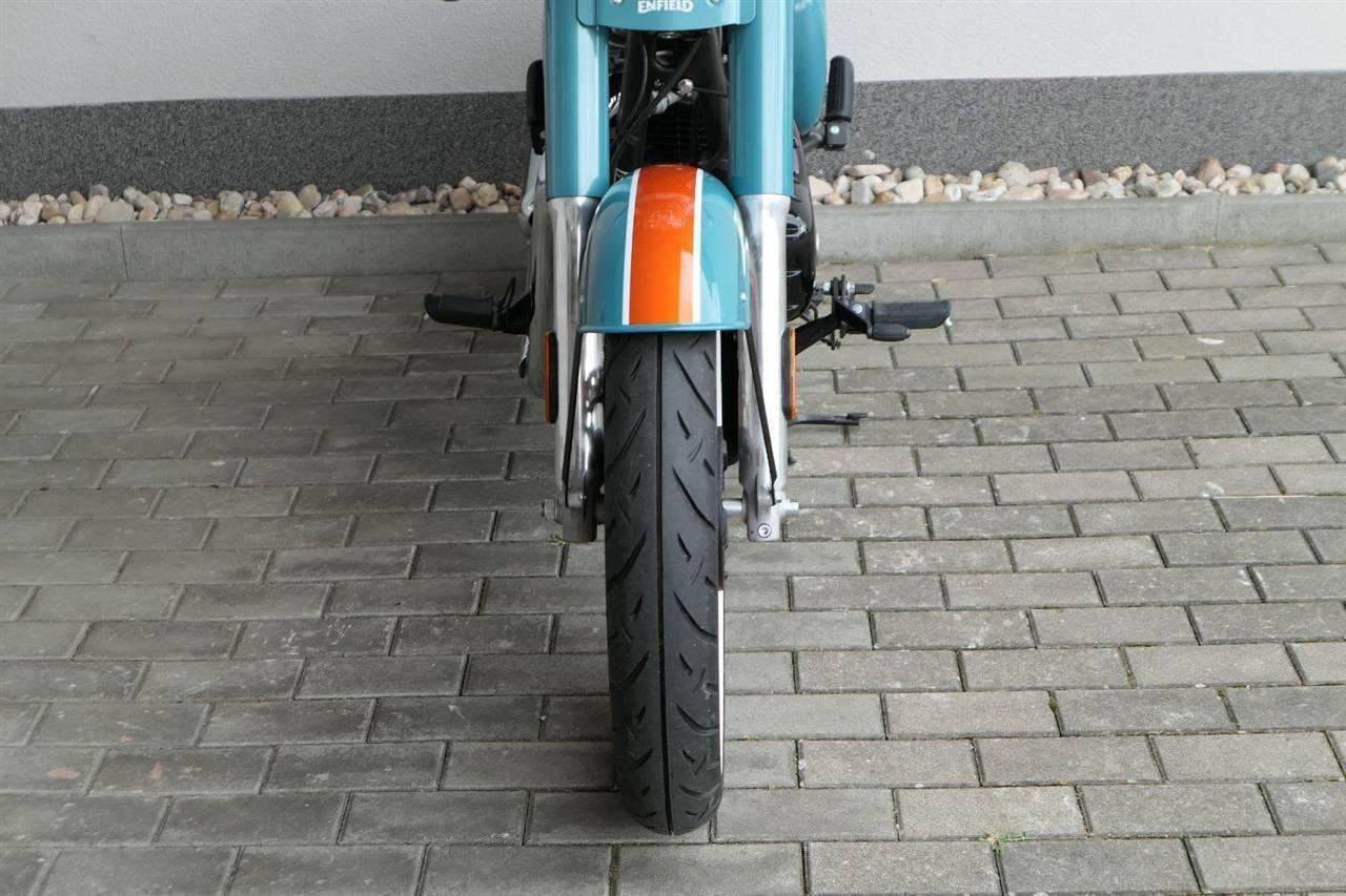 - Osvědčený motor 350 cm³ (J-platforma) – kultivovaný chod, spolehlivost a typický zvuk Royal Enfield