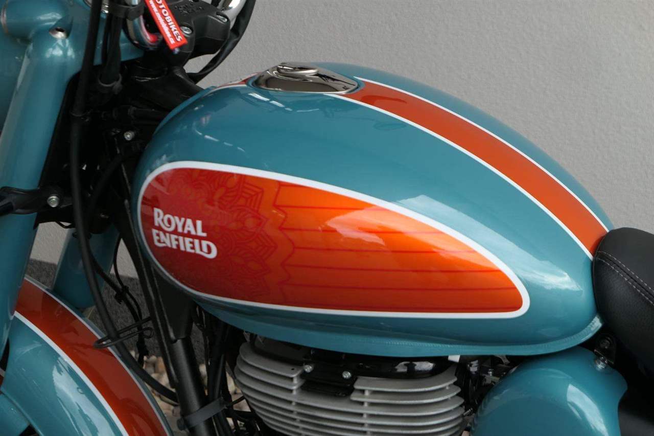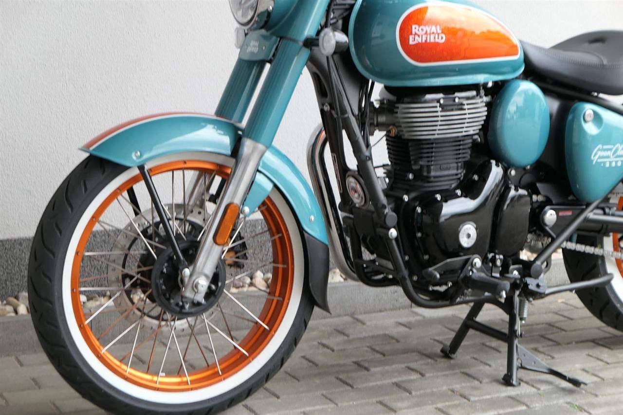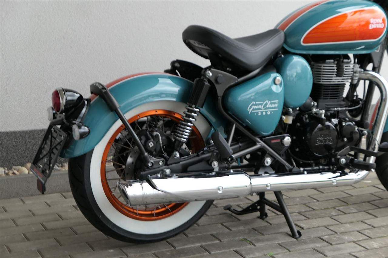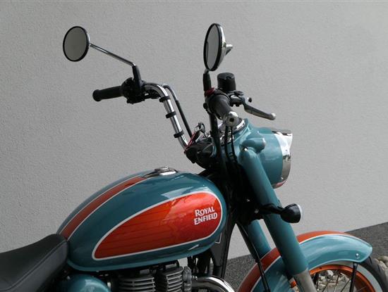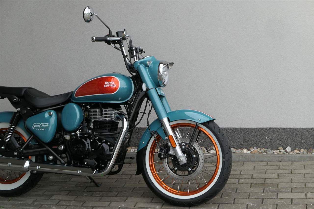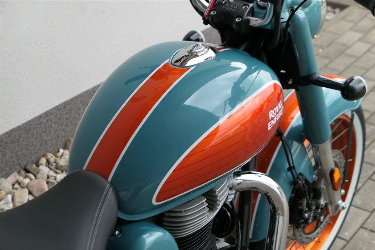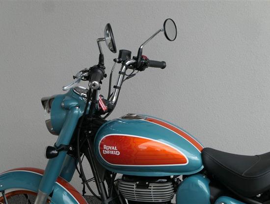 - Osvědčený motor 350 cm³ (J-platforma) – kultivovaný chod, spolehlivost a typický zvuk Royal Enfield