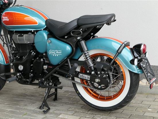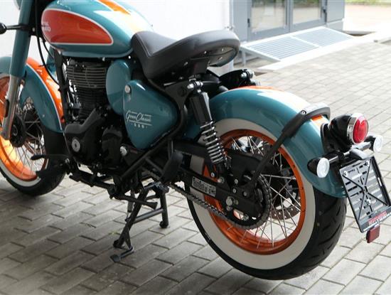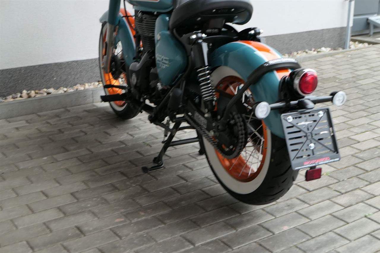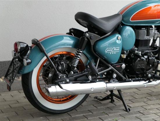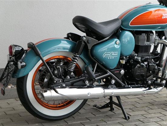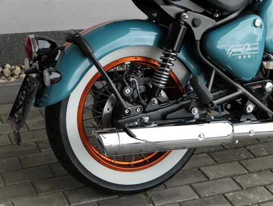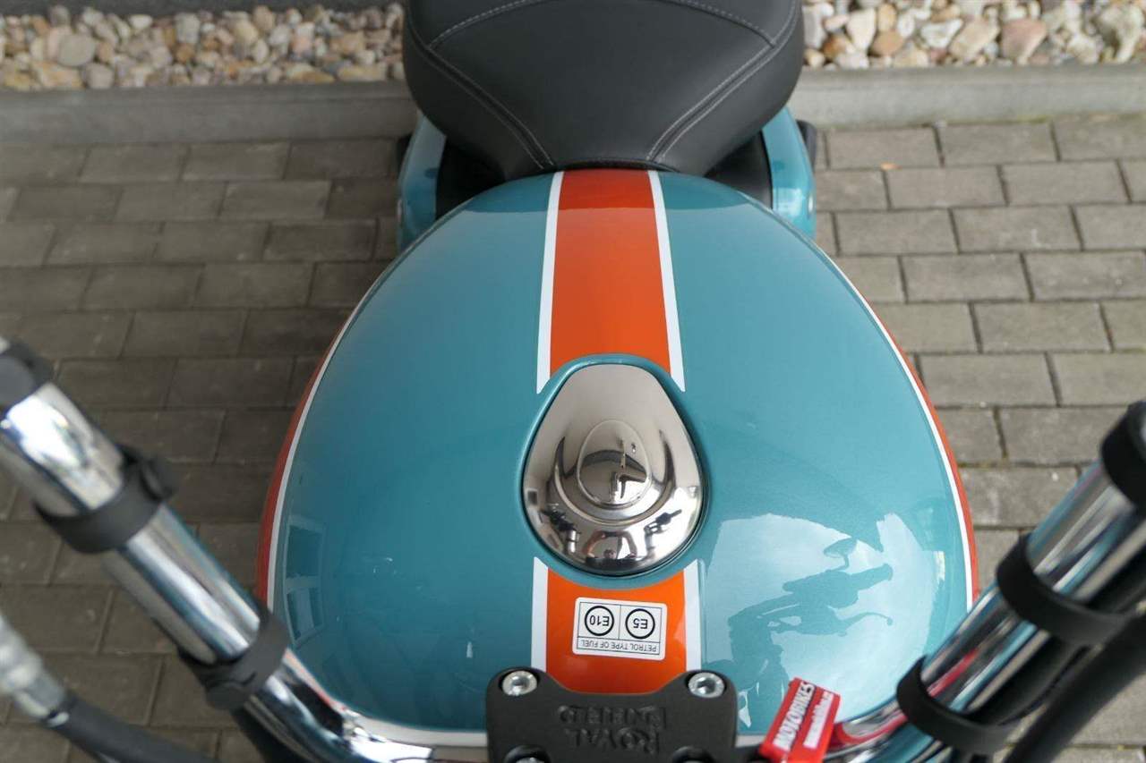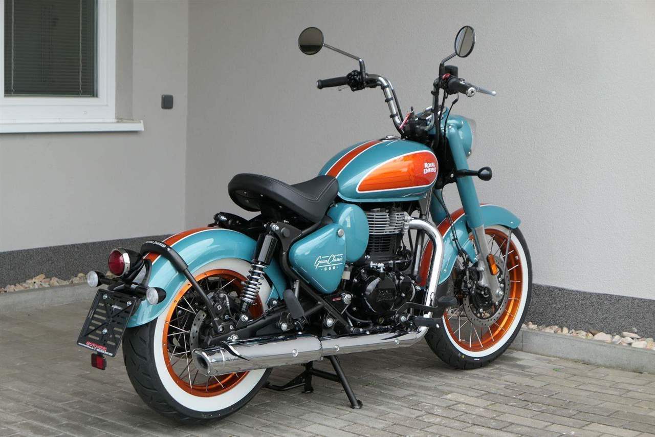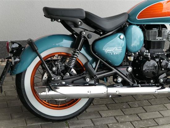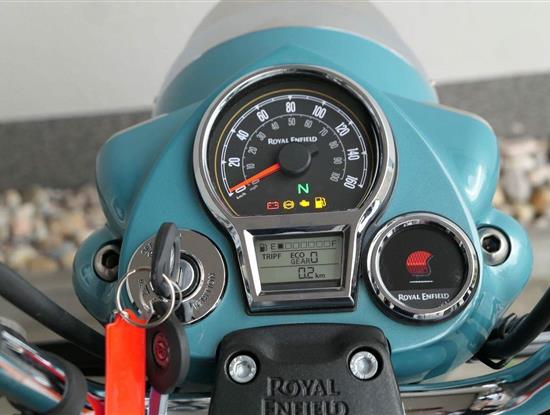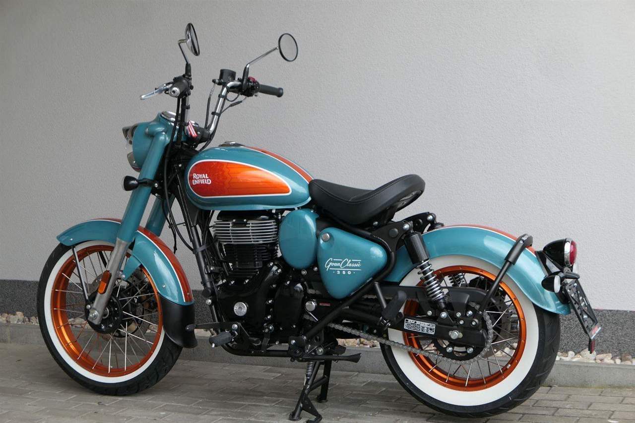 - Osvědčený motor 350 cm³ (J-platforma) – kultivovaný chod, spolehlivost a typický zvuk Royal Enfield