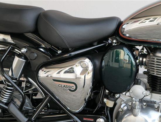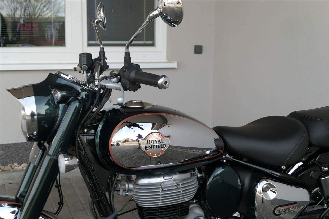 Ústředním prvkem nového Classic 350 je zcela nové srdce, které bije do jedinečného rytmu Royal Enfield. Ve spojení s novým rámem se dvěma spodními trubkami, který jezdí pevně a věrně, solidní a spolehlivou kvalitou konstrukce, je Classic vaším spojencem, ať už je váš cíl kdekoliv. Vzpřímená jízdní poloha dává jezdci Classicu vynikající vzhled na silnici, zatímco brzdy s větším průměrem zvyšují jeho brzdnou sílu. Ale silnější neznamená jen schopný a odolný, Classic je obdařen také pohodlím, s vylepšeným širším sedlem, které zpříjemňuje jízdu.