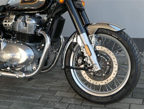 -sebejistotu a plynulost jízdy bez ohledu na to, kam máte namířeno, zajistí ověřené přední odpružení modelu Classic 650 i dvoutrubkové hydraulické zadní odpružení od společnosti Showa.