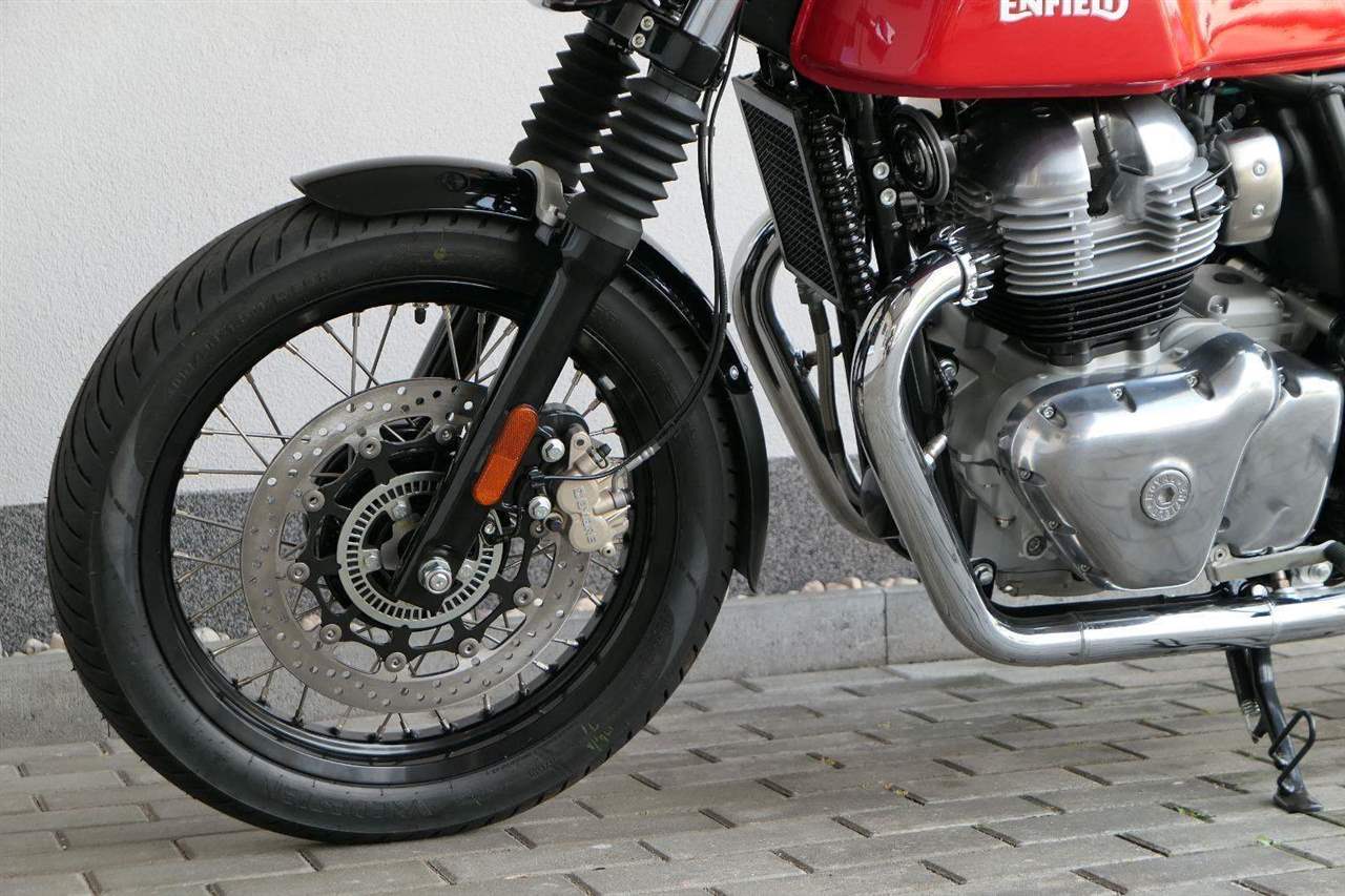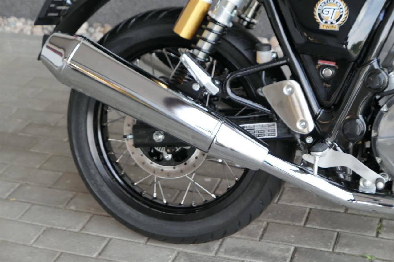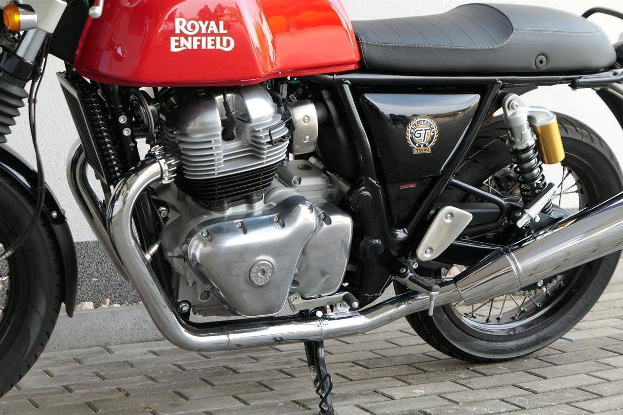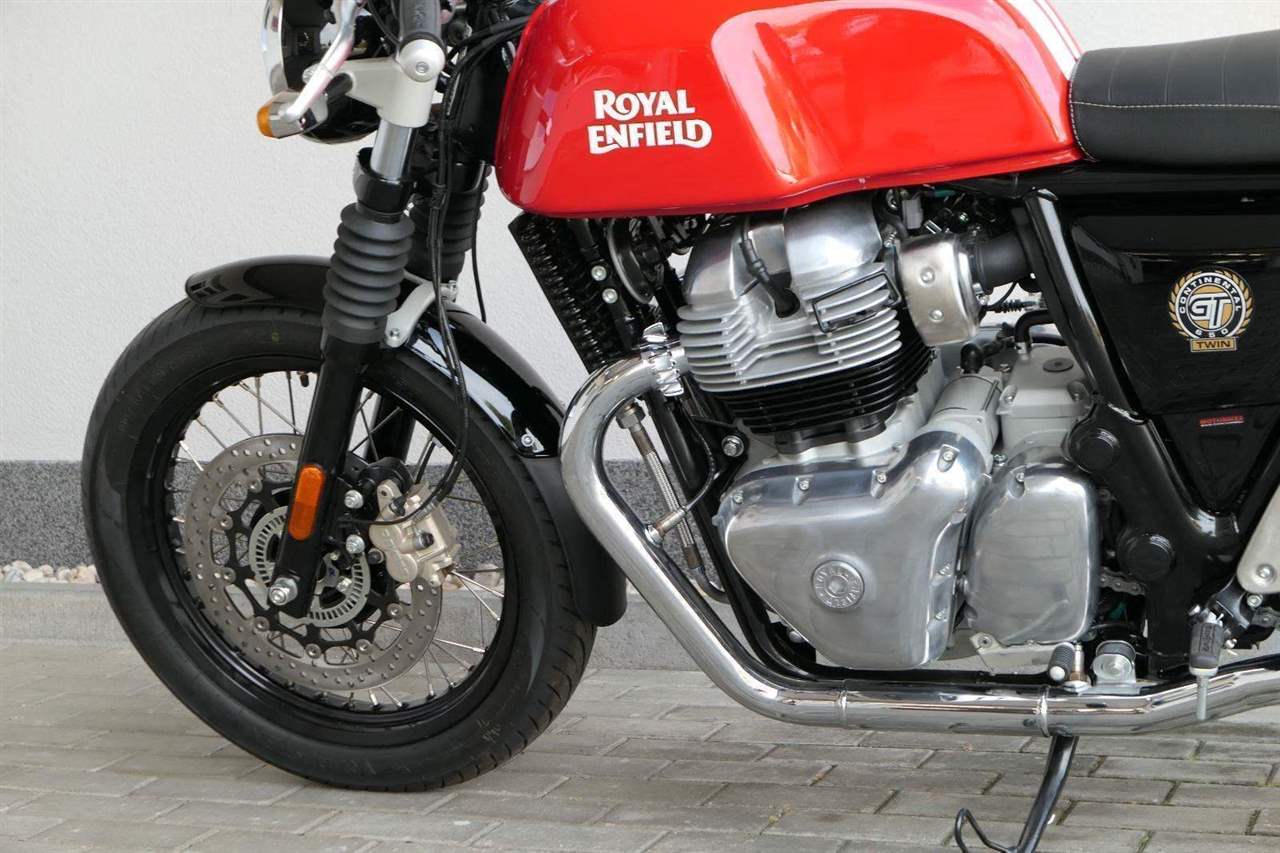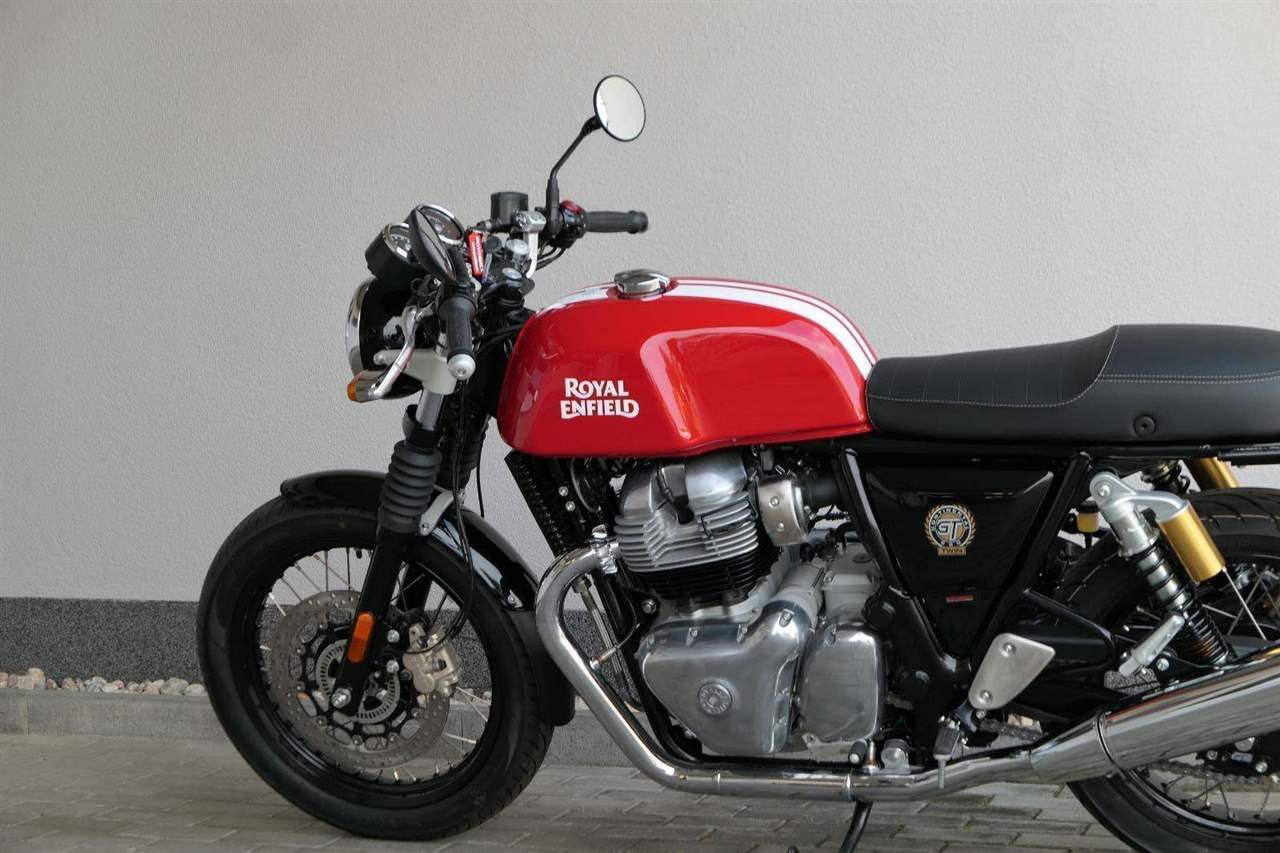 Nový Continental GT 650 Twin zachycuje ducha původního Continental GT 250. Ikona designu, dokonalá směs tradice a moderny s dychtivým přístupem a závodním posedem se všemi znaky tradičního Cafe Racera. Rám, vyvinutý ve spojení s legendárním Harris Performance, důkladně testován na odolnost, nabízí vynikající rovnováhu a ovladatelnost. Spolu s jemně vyladěným odpružením s dvojitými tlumiči naplněnými plynem pro dosažení optimální kombinace pohodlí a cítění podvozku zajišťuje, že s GT 650 je jízda dynamická a živá jako nikdy předtím. Klasická estetika 18 "kola s leštěným lemem je osazena pneumatikami Pirelli Phantom SportComp, jejichž konstrukce a složení byly speciálně vyvinuty pro Royal Enfield pro doplnění podvozku a odpružení ve všech jízdních podmínkách. Kombinace dvojitého pístu odvozeného od Brembo, plovoucí přední disk a dvoukanálový systém ABS Bosch zajišťují spolehlivé brzdění s progresivní zpětnou vazbou. Vzduchem / olejem chlazená paralelní dvojitá konfigurace, která byla vybrána pro své nezahlcené linie. Motor 648 cm3 vytvořen pro jízdu v reálném světě, s dostatečnou silou pro lehkou jízdu v městské dopravě nebo bez námahy na otevřené cestě. Dvojité těleso škrticí klapky spárované s vysoce přesným systémem vstřikování paliva Bosch vede k vynikající odezvě škrtící klapky v celém rozsahu otáček. Zatímco nádherně tvarované linie lesklého, ručně leštěného hliníkového motoru pokrývají zlatou éru motocyklů, to, co nutí otáčet hlavy, je hluboký zvuk výfuku - vytvářející buď opojný rytmické bublání, nebo mohutné dunění. Royal Enfield poprvé používá šestistupňovou převodovku, vyvinutou speciálně pro 650 Twin - prošla náročným testováním, s pečlivě vybranými převodovými poměry, které dodávají nejlepší poměr pro všechny jízdní podmínky. Výsledek je patrný z optimálního řazení a ideálního záběru. Převodovka je doplněna o spojku, která má asistovanou funkci pro lehký stisk páky.