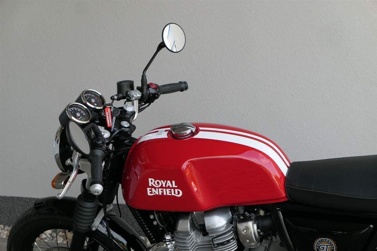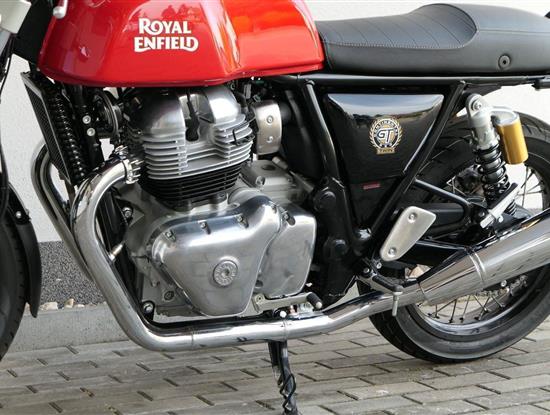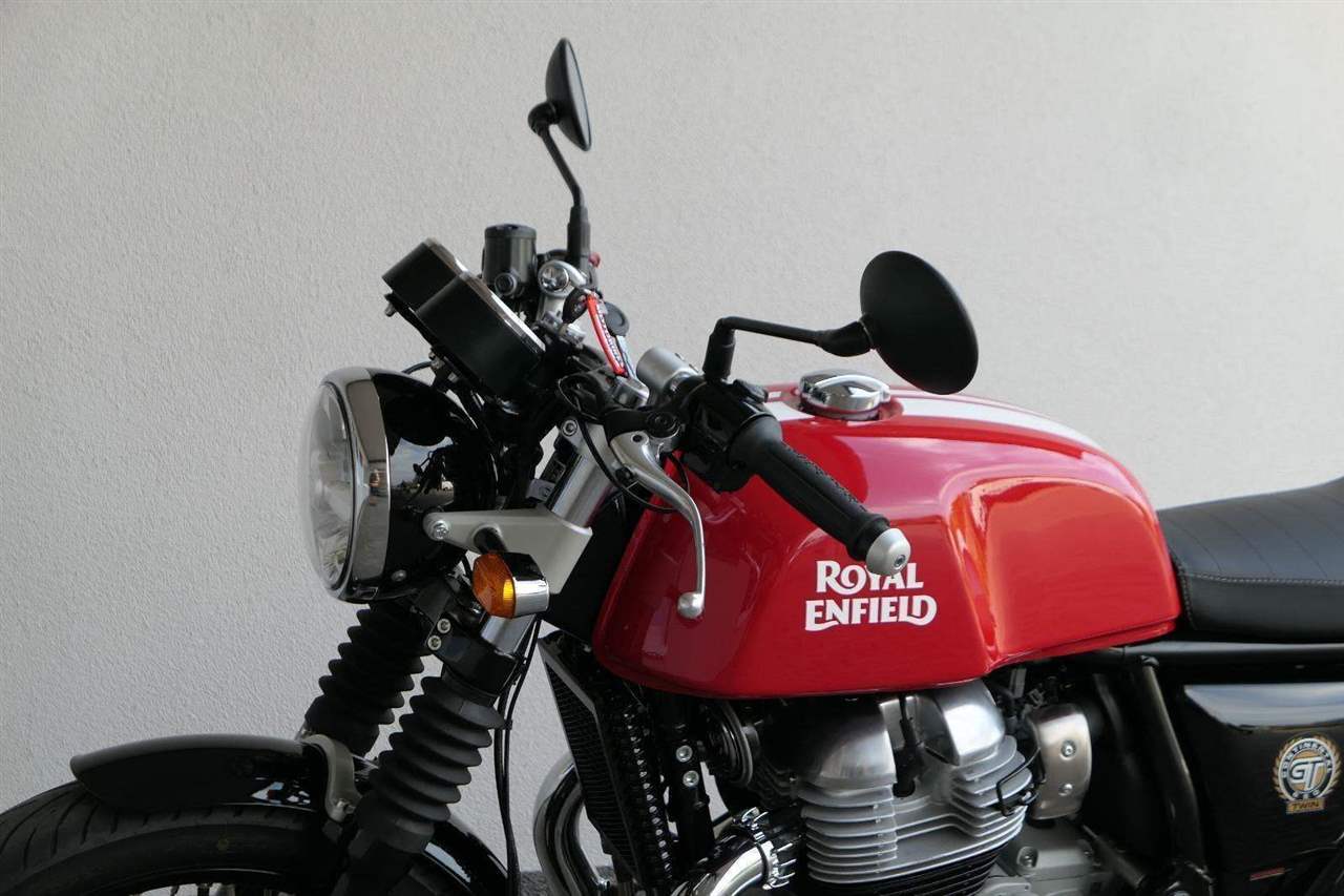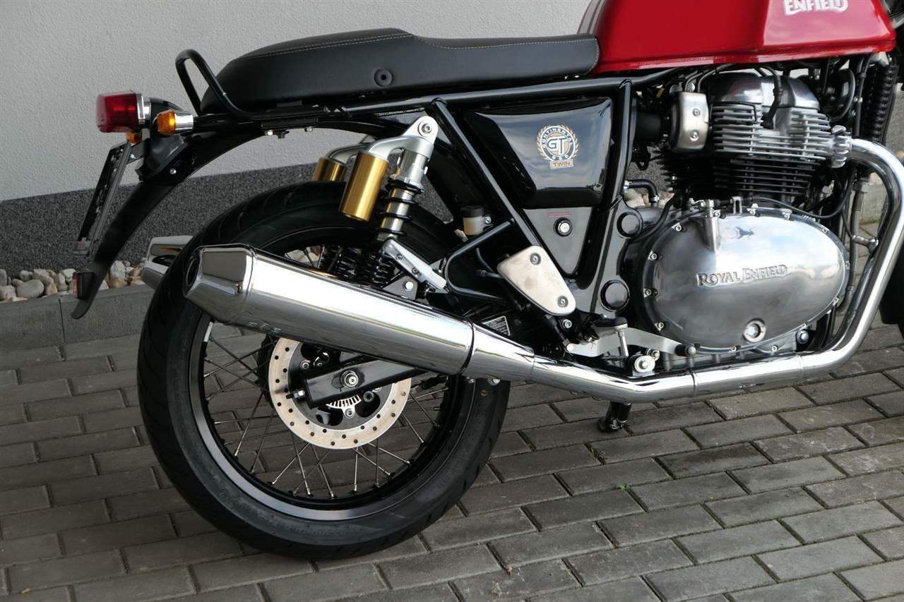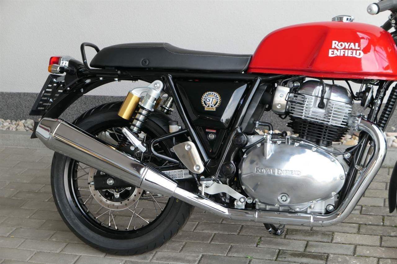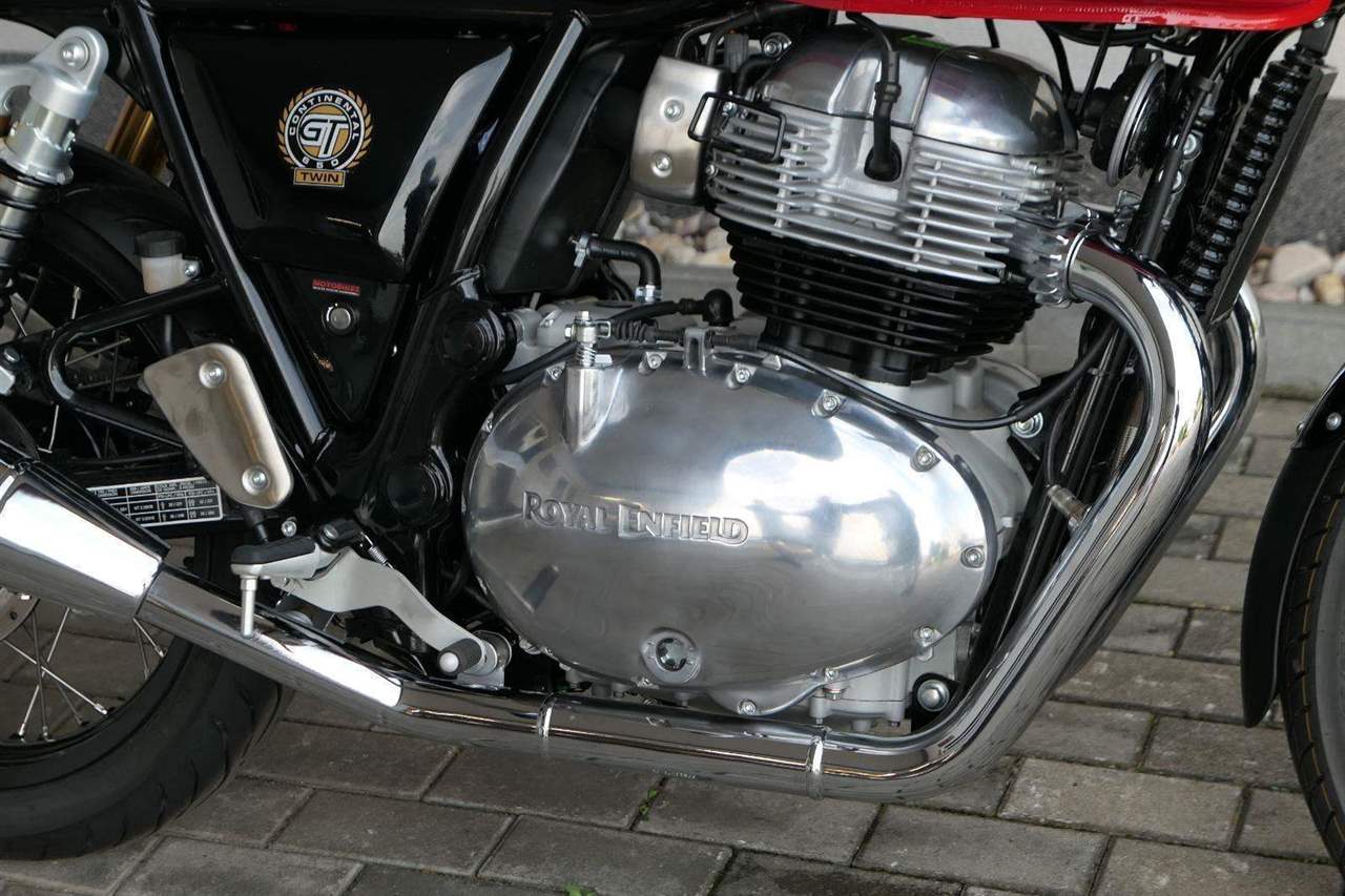 Nový Continental GT 650 Twin zachycuje ducha původního Continental GT 250. Ikona designu, dokonalá směs tradice a moderny s dychtivým přístupem a závodním posedem se všemi znaky tradičního Cafe Racera. Rám, vyvinutý ve spojení s legendárním Harris Performance, důkladně testován na odolnost, nabízí vynikající rovnováhu a ovladatelnost. Spolu s jemně vyladěným odpružením s dvojitými tlumiči naplněnými plynem pro dosažení optimální kombinace pohodlí a cítění podvozku zajišťuje, že s GT 650 je jízda dynamická a živá jako nikdy předtím. Klasická estetika 18 "kola s leštěným lemem je osazena pneumatikami Pirelli Phantom SportComp, jejichž konstrukce a složení byly speciálně vyvinuty pro Royal Enfield pro doplnění podvozku a odpružení ve všech jízdních podmínkách. Kombinace dvojitého pístu odvozeného od Brembo, plovoucí přední disk a dvoukanálový systém ABS Bosch zajišťují spolehlivé brzdění s progresivní zpětnou vazbou. Vzduchem / olejem chlazená paralelní dvojitá konfigurace, která byla vybrána pro své nezahlcené linie. Motor 648 cm3 vytvořen pro jízdu v reálném světě, s dostatečnou silou pro lehkou jízdu v městské dopravě nebo bez námahy na otevřené cestě. Dvojité těleso škrticí klapky spárované s vysoce přesným systémem vstřikování paliva Bosch vede k vynikající odezvě škrtící klapky v celém rozsahu otáček. Zatímco nádherně tvarované linie lesklého, ručně leštěného hliníkového motoru pokrývají zlatou éru motocyklů, to, co nutí otáčet hlavy, je hluboký zvuk výfuku - vytvářející buď opojný rytmické bublání, nebo mohutné dunění. Royal Enfield poprvé používá šestistupňovou převodovku, vyvinutou speciálně pro 650 Twin - prošla náročným testováním, s pečlivě vybranými převodovými poměry, které dodávají nejlepší poměr pro všechny jízdní podmínky. Výsledek je patrný z optimálního řazení a ideálního záběru. Převodovka je doplněna o spojku, která má asistovanou funkci pro lehký stisk páky.