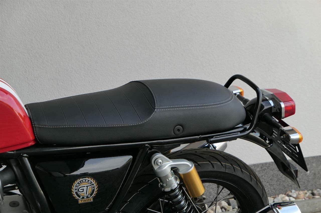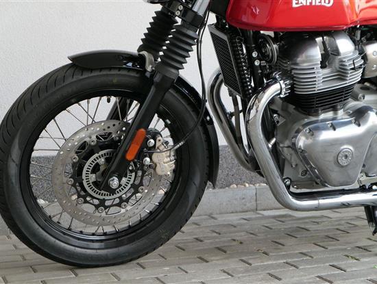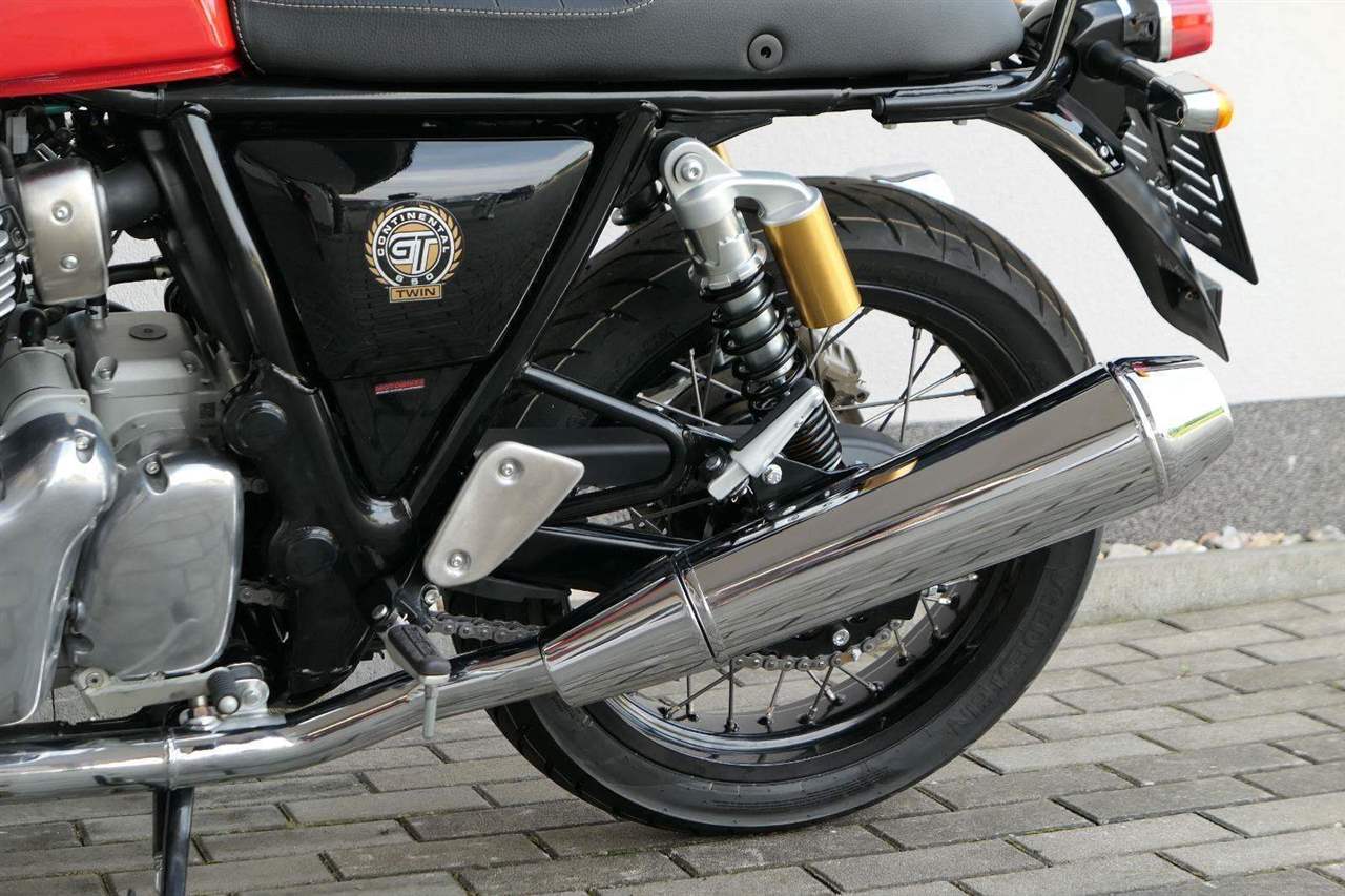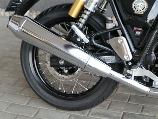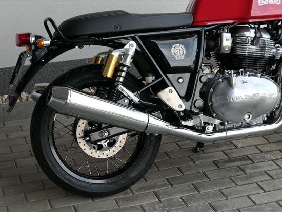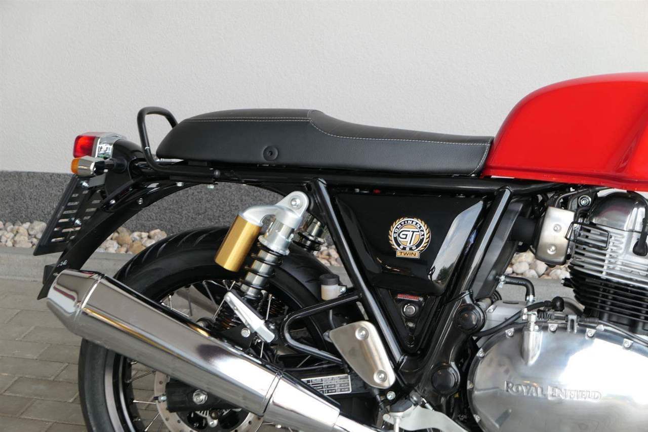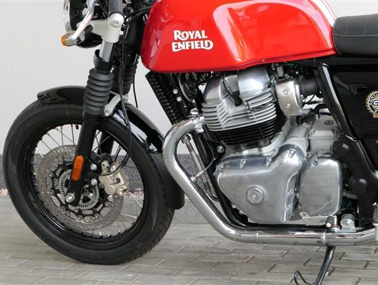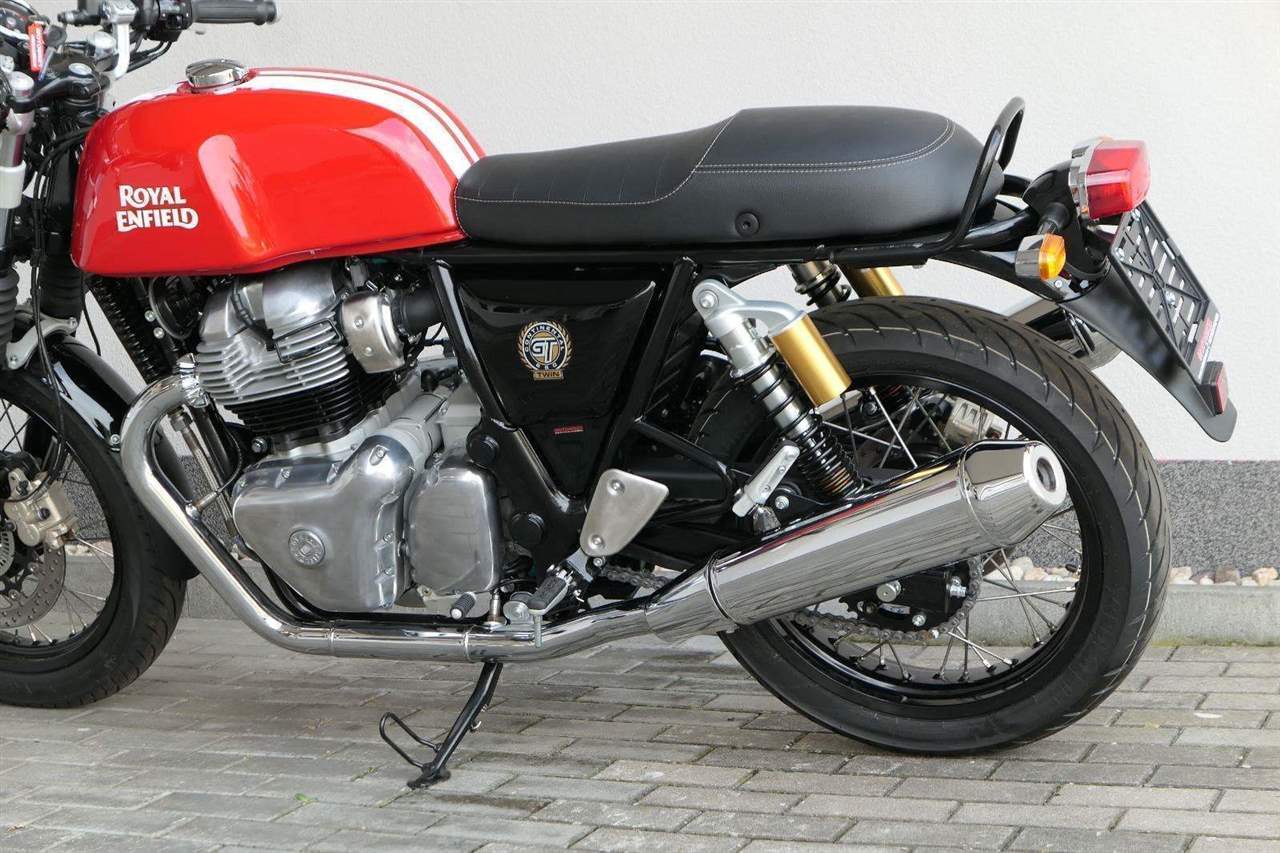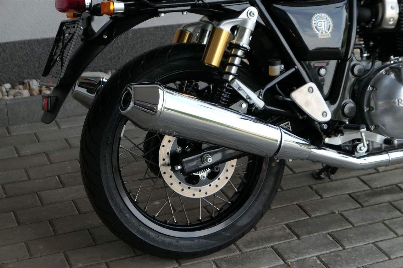 Nový Continental GT 650 Twin zachycuje ducha původního Continental GT 250. Ikona designu, dokonalá směs tradice a moderny s dychtivým přístupem a závodním posedem se všemi znaky tradičního Cafe Racera. Rám, vyvinutý ve spojení s legendárním Harris Performance, důkladně testován na odolnost, nabízí vynikající rovnováhu a ovladatelnost. Spolu s jemně vyladěným odpružením s dvojitými tlumiči naplněnými plynem pro dosažení optimální kombinace pohodlí a cítění podvozku zajišťuje, že s GT 650 je jízda dynamická a živá jako nikdy předtím. Klasická estetika 18 "kola s leštěným lemem je osazena pneumatikami Pirelli Phantom SportComp, jejichž konstrukce a složení byly speciálně vyvinuty pro Royal Enfield pro doplnění podvozku a odpružení ve všech jízdních podmínkách. Kombinace dvojitého pístu odvozeného od Brembo, plovoucí přední disk a dvoukanálový systém ABS Bosch zajišťují spolehlivé brzdění s progresivní zpětnou vazbou. Vzduchem / olejem chlazená paralelní dvojitá konfigurace, která byla vybrána pro své nezahlcené linie. Motor 648 cm3 vytvořen pro jízdu v reálném světě, s dostatečnou silou pro lehkou jízdu v městské dopravě nebo bez námahy na otevřené cestě. Dvojité těleso škrticí klapky spárované s vysoce přesným systémem vstřikování paliva Bosch vede k vynikající odezvě škrtící klapky v celém rozsahu otáček. Zatímco nádherně tvarované linie lesklého, ručně leštěného hliníkového motoru pokrývají zlatou éru motocyklů, to, co nutí otáčet hlavy, je hluboký zvuk výfuku - vytvářející buď opojný rytmické bublání, nebo mohutné dunění. Royal Enfield poprvé používá šestistupňovou převodovku, vyvinutou speciálně pro 650 Twin - prošla náročným testováním, s pečlivě vybranými převodovými poměry, které dodávají nejlepší poměr pro všechny jízdní podmínky. Výsledek je patrný z optimálního řazení a ideálního záběru. Převodovka je doplněna o spojku, která má asistovanou funkci pro lehký stisk páky.