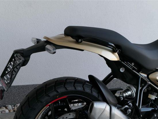 Na rozdíl od Himalayanu, nedělá si Guerrilla terénní ambice, byť některými prvky decentně připomíná, že je vlastně naháčo-scrambler – ve všech tiskových materiálech se pak objevuje populární termín „roadster“. Na teleskopických vidlicích jsou třeba prďácké retro prachovky, nicméně zdvih je jenom 140 milimetrů. Zadní vyosený centrál má potom 150 milimetrů.