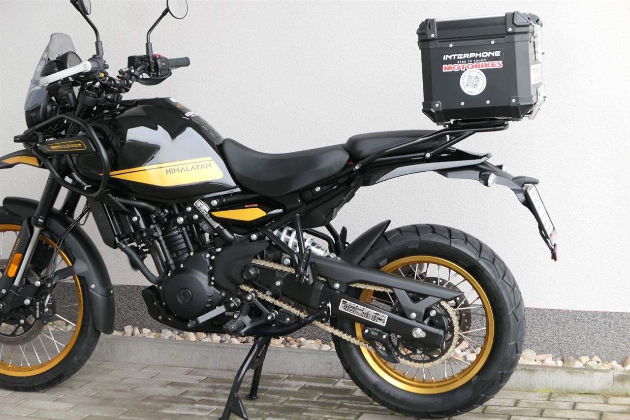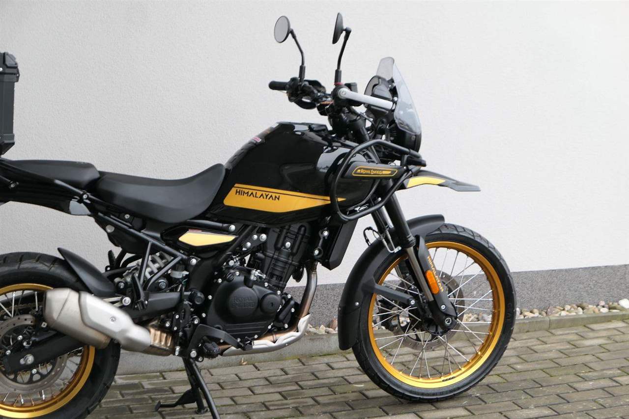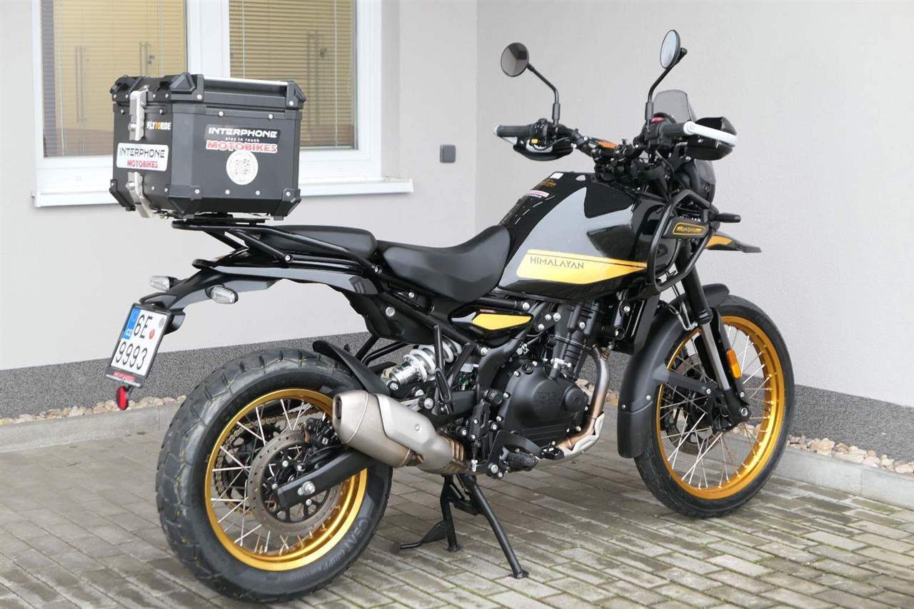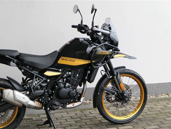 Nový Himalayan, který je evolučním skokem vpřed oproti svému původnímu modelu, jenž bořil mýty, je poháněn motorem Sherpa 450, prvním kapalinou chlazeným motorem společnosti Royal Enfield. Je připraven na dobrodružství s upside-down přední vidlicí a novými funkcemi, jako je Ride-by-Wire a navigační TFT displej TripperDash s plnou mapou.