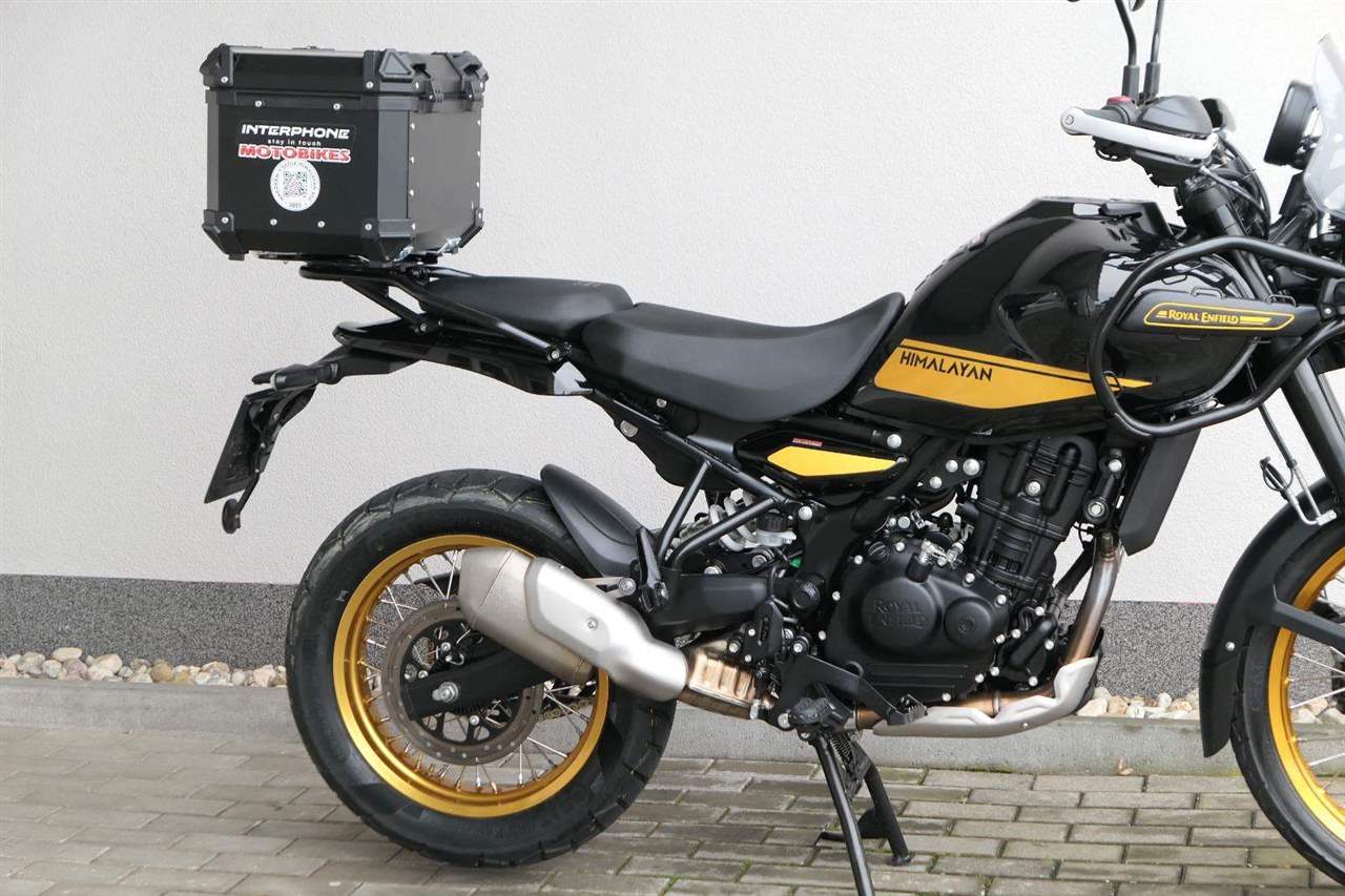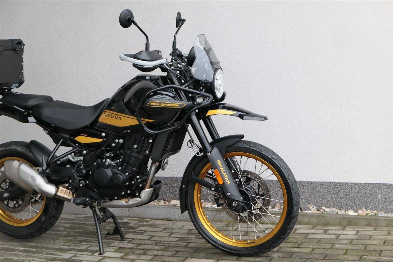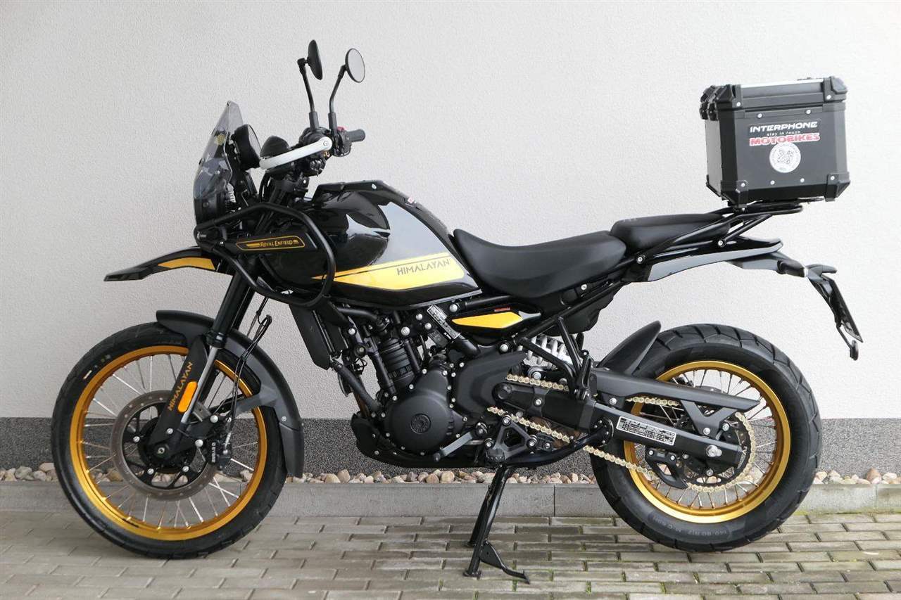 Nový Himalayan, který je evolučním skokem vpřed oproti svému původnímu modelu, jenž bořil mýty, je poháněn motorem Sherpa 450, prvním kapalinou chlazeným motorem společnosti Royal Enfield. Je připraven na dobrodružství s upside-down přední vidlicí a novými funkcemi, jako je Ride-by-Wire a navigační TFT displej TripperDash s plnou mapou.