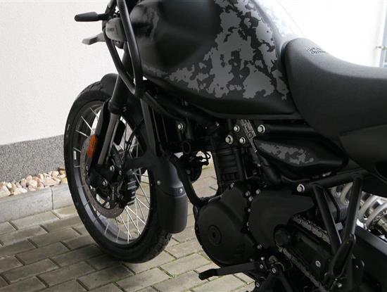 Nový Himalayan, který je evolučním skokem vpřed oproti svému původnímu modelu, jenž bořil mýty, je poháněn motorem Sherpa 450, prvním kapalinou chlazeným motorem společnosti Royal Enfield. Je připraven na dobrodružství s upside-down přední vidlicí a novými funkcemi, jako je Ride-by-Wire a navigační TFT displej TripperDash s plnou mapou.
