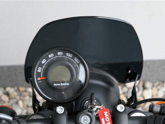 Retro tachometr v kombinaci s digitálním LCD displejem nabízí všechny potřebné informace přehledně a stylově. Přístrojový panel je navíc kompatibilní s navigací Royal Enfield Tripper (volitelné příslušenství).