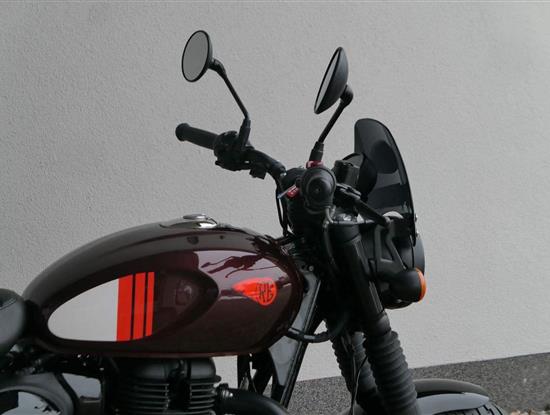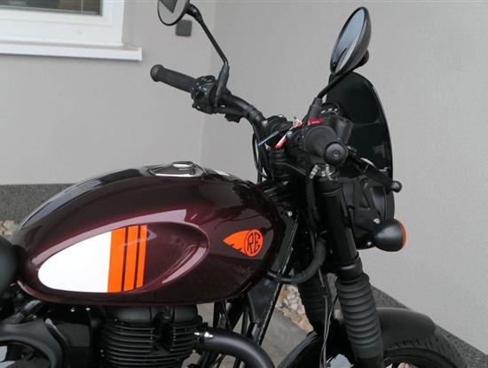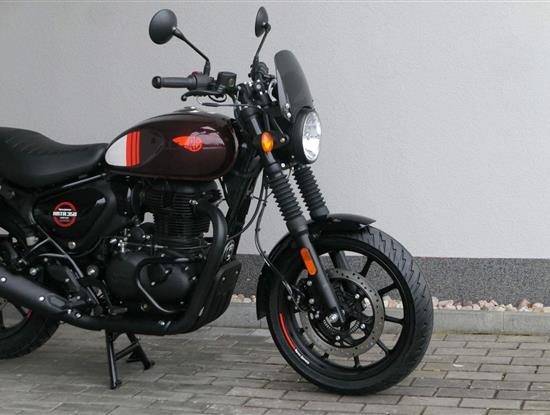 Kratší rozvor, nízká hmotnost a sevřená geometrie. Robustní rám, 17" kola, výrazný retro design a motor 350 ccm – ideální kombinace pro každodenní radost z jízdy.