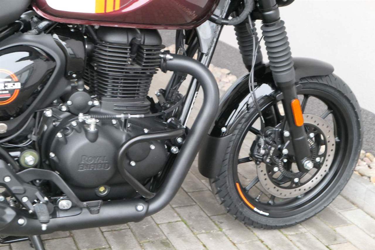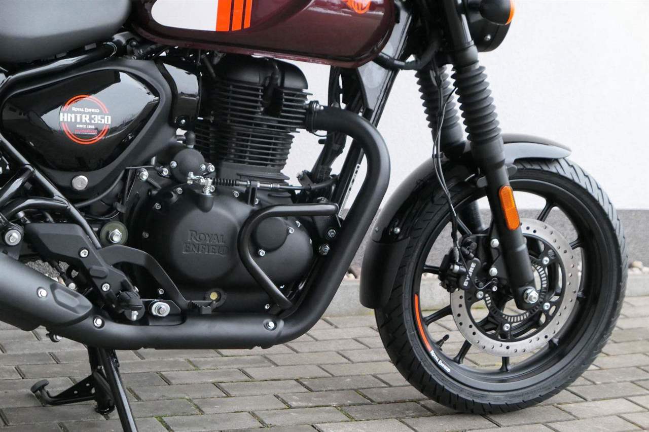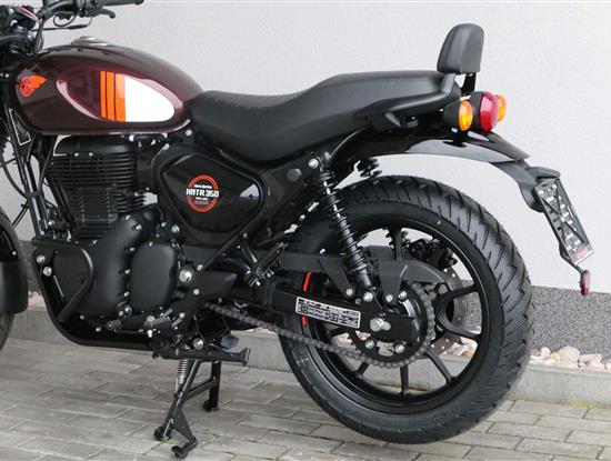 HNTR 350 je jediný sériový model značky Royal Enfield se 17" koly vpředu i vzadu. Bezdušové pneumatiky znamenají klidnější cestování bez zbytečných obav z defektu.