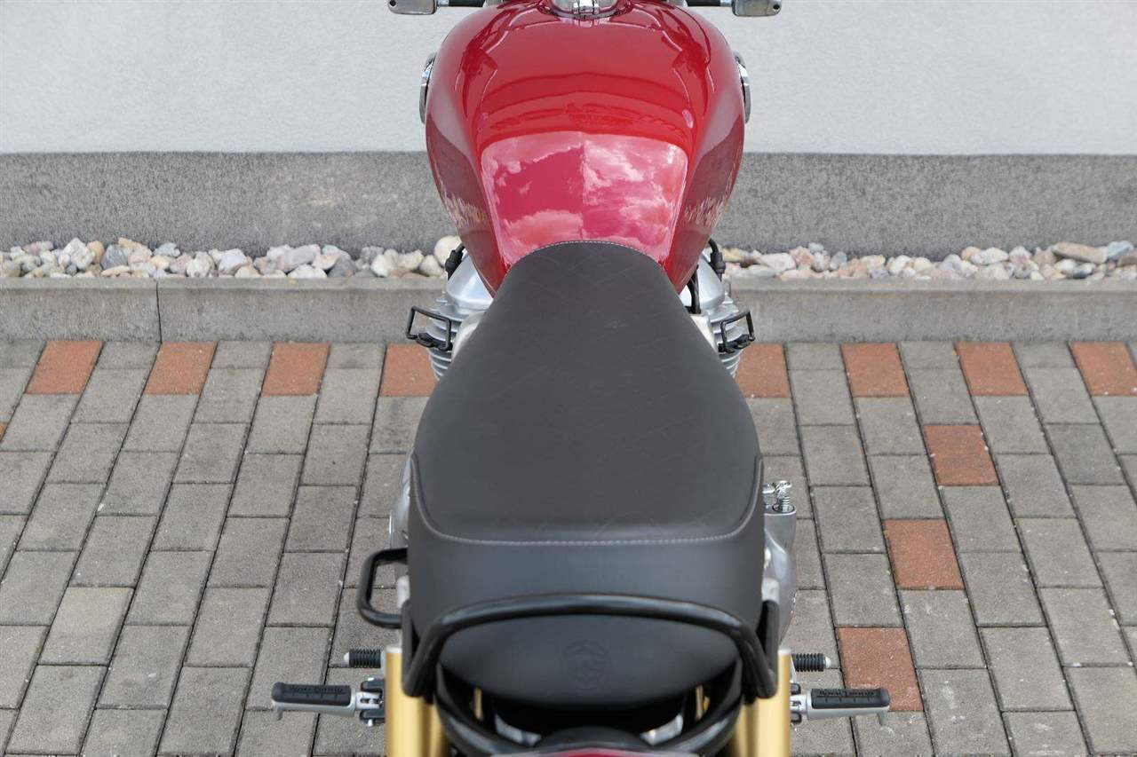 Typický moderní klasický roadster - se kterým je radost jezdit na klikatých silnicích, dálnicích, nebo v městské džungli, se stejnou lehkostí a grácií jak pro začátečníky tak pro zkušené jezdce. Easy come, easy GO Rám, vyvinutý ve spojení s legendárním Harris Performance, důkladně testován na odolnost, nabízí vynikající rovnováhu a ovladatelnost. Spolu s jemně vyladěným odpružením s dvojitými tlumiči naplněnými plynem pro dosažení optimální kombinace pohodlí a cítění podvozku zajišťuje, že s GT 650 je jízda dynamická a živá jako nikdy předtím. Srdce všeho Vzduchem / olejem chlazená paralelní dvojitá konfigurace, která byla vybrána pro své nezahlcené linie. Motor 648 cm3 vytvořen pro jízdu v reálném světě, s dostatečnou silou pro lehkou jízdu v městské dopravě nebo bez námahy na otevřené cestě. Dvojité těleso škrticí klapky spárované s vysoce přesným systémem vstřikování paliva Bosch vede k vynikající odezvě škrtící klapky v celém rozsahu otáček. Smooth operator Klasická estetika 18 "kola, jejichž konstrukce a složení byly speciálně vyvinuty pro Royal Enfield pro doplnění podvozku a odpružení ve všech jízdních podmínkách. Kombinace dvojitého pístu odvozeného od Brembo, plovoucí přední disk a dvoukanálový systém ABS Bosch zajišťují spolehlivé brzdění s progresivní zpětnou vazbou. Paralela bez paralel Se širokým opěrným řídítkem má Interceptor komfortní vzpřímenou řídící jízdní polohu. Ergonomický trojúhelník, který je tvořen řídítky, má nízké sedadlo a stopu, je nastaven pro pohodlí s jemným sportovním zaujetím, který pomáhá jezdci co nejvíce využít agilního podvozku a intuitivně se s ním propojit. Stará škola nově Zatímco nádherně tvarované linie lesklého, ručně leštěného hliníkového motoru pokrývají zlatou éru motocyklů, to, co nutí otáčet hlavy, je hluboký zvuk výfuku - vytvářející buď opojný rytmické bublání, nebo mohutné dunění. Dokonalost v detailech Royal Enfield poprvé používá šestistupňovou převodovku, vyvinutou speciálně pro 650 Twin - prošla náročným testováním, s pečlivě vybranými převodovými poměry, které dodávají nejlepší poměr pro všechny jízdní podmínky. Výsledek je patrný z optimálního řazení a ideálního záběru. Převodovka je doplněna o spojku, která má asistovanou funkci pro lehký stisk páky.