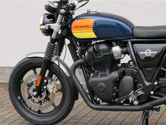 Model Interceptor 650 je inspirován svým kultovním jmenovcem ze 60. let a je dokonale vyvážený z hlediska stylu a výkonu. Je to moderní klasika, která si zachovává podstatu a vzhled autentického britského roadsteru, ale s příměsí sluncem zalité Kalifornie.