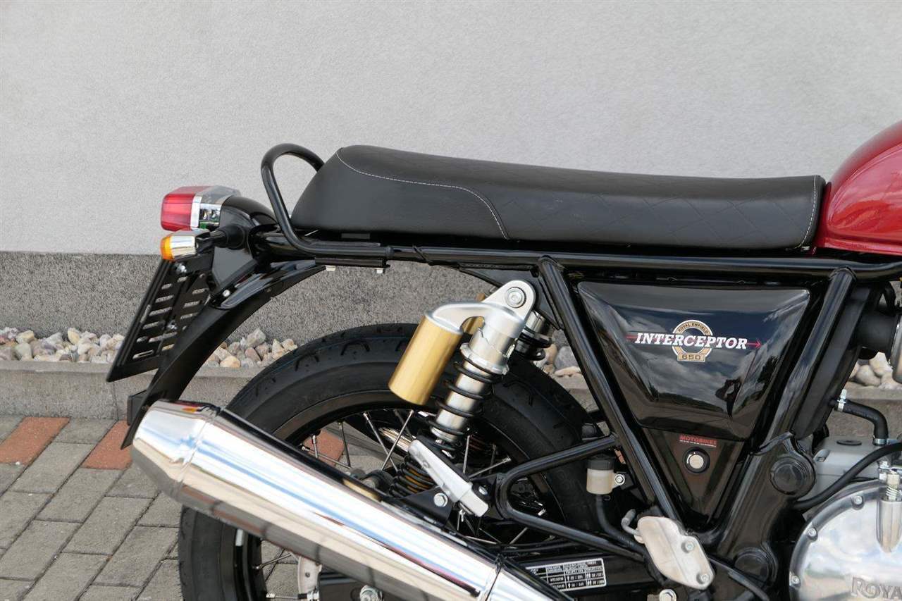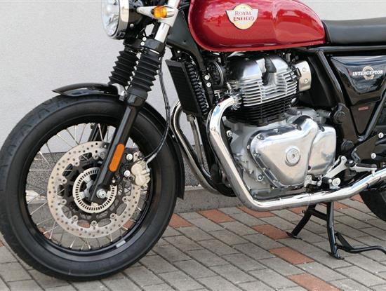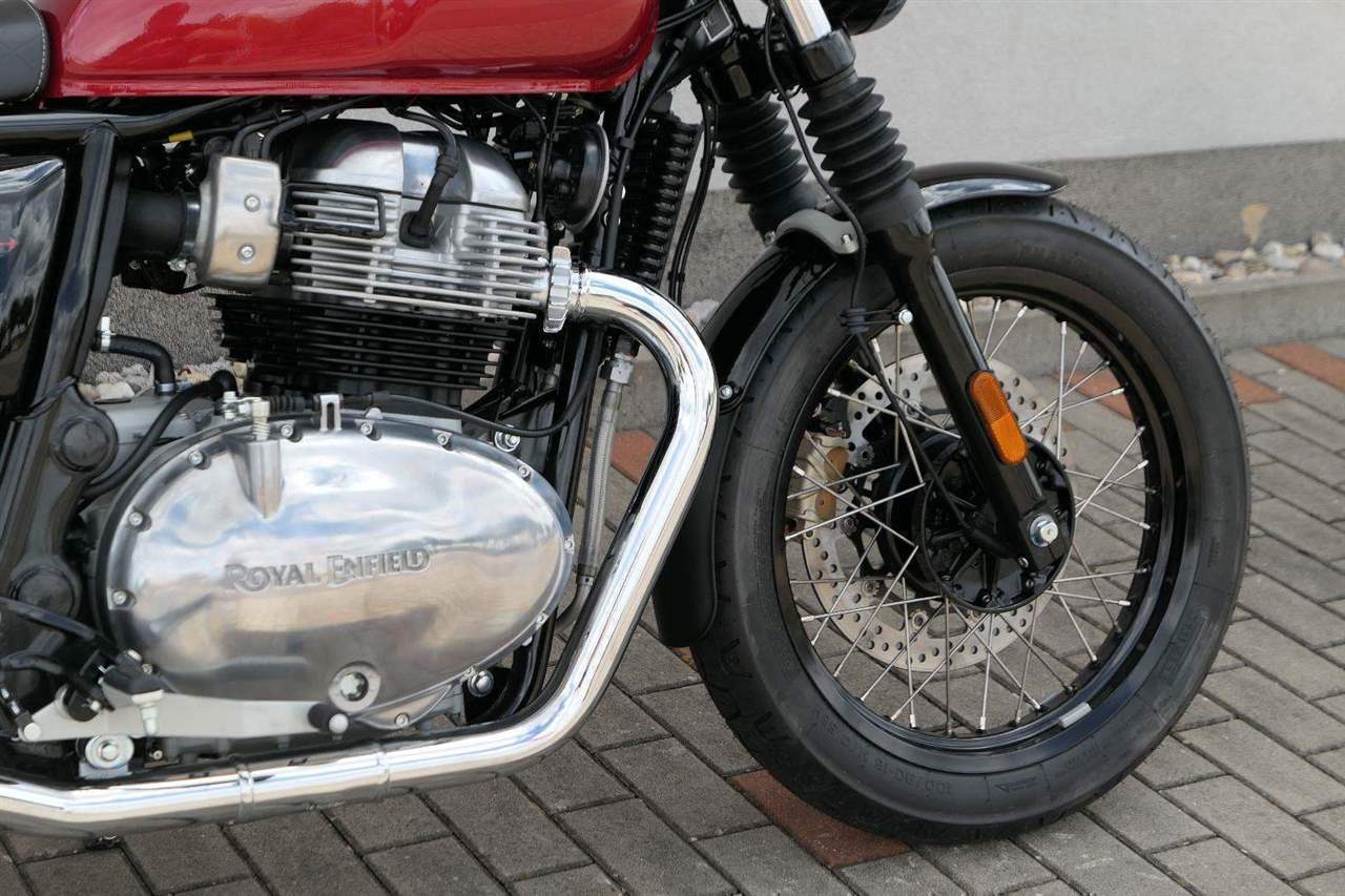 Typický moderní klasický roadster - se kterým je radost jezdit na klikatých silnicích, dálnicích, nebo v městské džungli, se stejnou lehkostí a grácií jak pro začátečníky tak pro zkušené jezdce. Easy come, easy GO Rám, vyvinutý ve spojení s legendárním Harris Performance, důkladně testován na odolnost, nabízí vynikající rovnováhu a ovladatelnost. Spolu s jemně vyladěným odpružením s dvojitými tlumiči naplněnými plynem pro dosažení optimální kombinace pohodlí a cítění podvozku zajišťuje, že s GT 650 je jízda dynamická a živá jako nikdy předtím. Srdce všeho Vzduchem / olejem chlazená paralelní dvojitá konfigurace, která byla vybrána pro své nezahlcené linie. Motor 648 cm3 vytvořen pro jízdu v reálném světě, s dostatečnou silou pro lehkou jízdu v městské dopravě nebo bez námahy na otevřené cestě. Dvojité těleso škrticí klapky spárované s vysoce přesným systémem vstřikování paliva Bosch vede k vynikající odezvě škrtící klapky v celém rozsahu otáček. Smooth operator Klasická estetika 18 "kola, jejichž konstrukce a složení byly speciálně vyvinuty pro Royal Enfield pro doplnění podvozku a odpružení ve všech jízdních podmínkách. Kombinace dvojitého pístu odvozeného od Brembo, plovoucí přední disk a dvoukanálový systém ABS Bosch zajišťují spolehlivé brzdění s progresivní zpětnou vazbou. Paralela bez paralel Se širokým opěrným řídítkem má Interceptor komfortní vzpřímenou řídící jízdní polohu. Ergonomický trojúhelník, který je tvořen řídítky, má nízké sedadlo a stopu, je nastaven pro pohodlí s jemným sportovním zaujetím, který pomáhá jezdci co nejvíce využít agilního podvozku a intuitivně se s ním propojit. Stará škola nově Zatímco nádherně tvarované linie lesklého, ručně leštěného hliníkového motoru pokrývají zlatou éru motocyklů, to, co nutí otáčet hlavy, je hluboký zvuk výfuku - vytvářející buď opojný rytmické bublání, nebo mohutné dunění. Dokonalost v detailech Royal Enfield poprvé používá šestistupňovou převodovku, vyvinutou speciálně pro 650 Twin - prošla náročným testováním, s pečlivě vybranými převodovými poměry, které dodávají nejlepší poměr pro všechny jízdní podmínky. Výsledek je patrný z optimálního řazení a ideálního záběru. Převodovka je doplněna o spojku, která má asistovanou funkci pro lehký stisk páky.