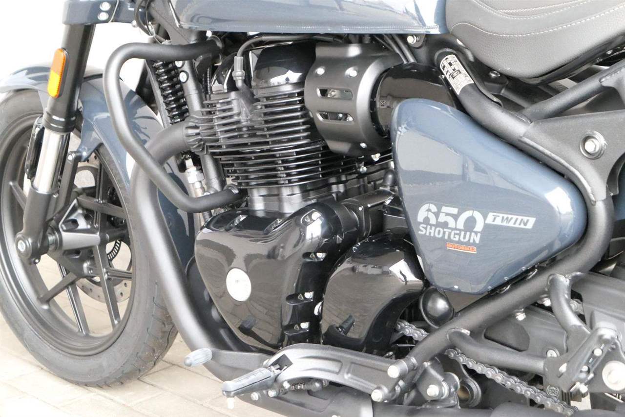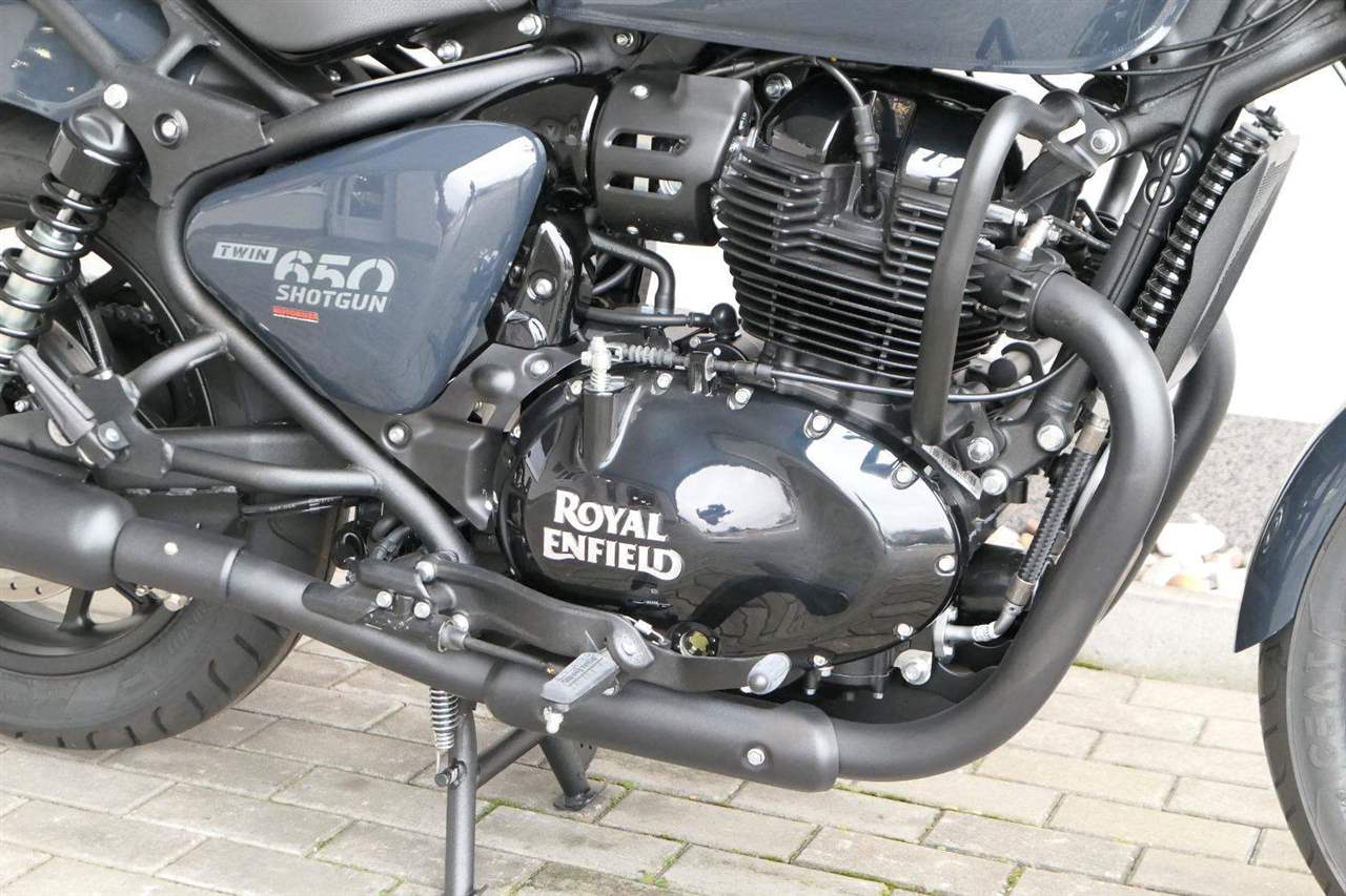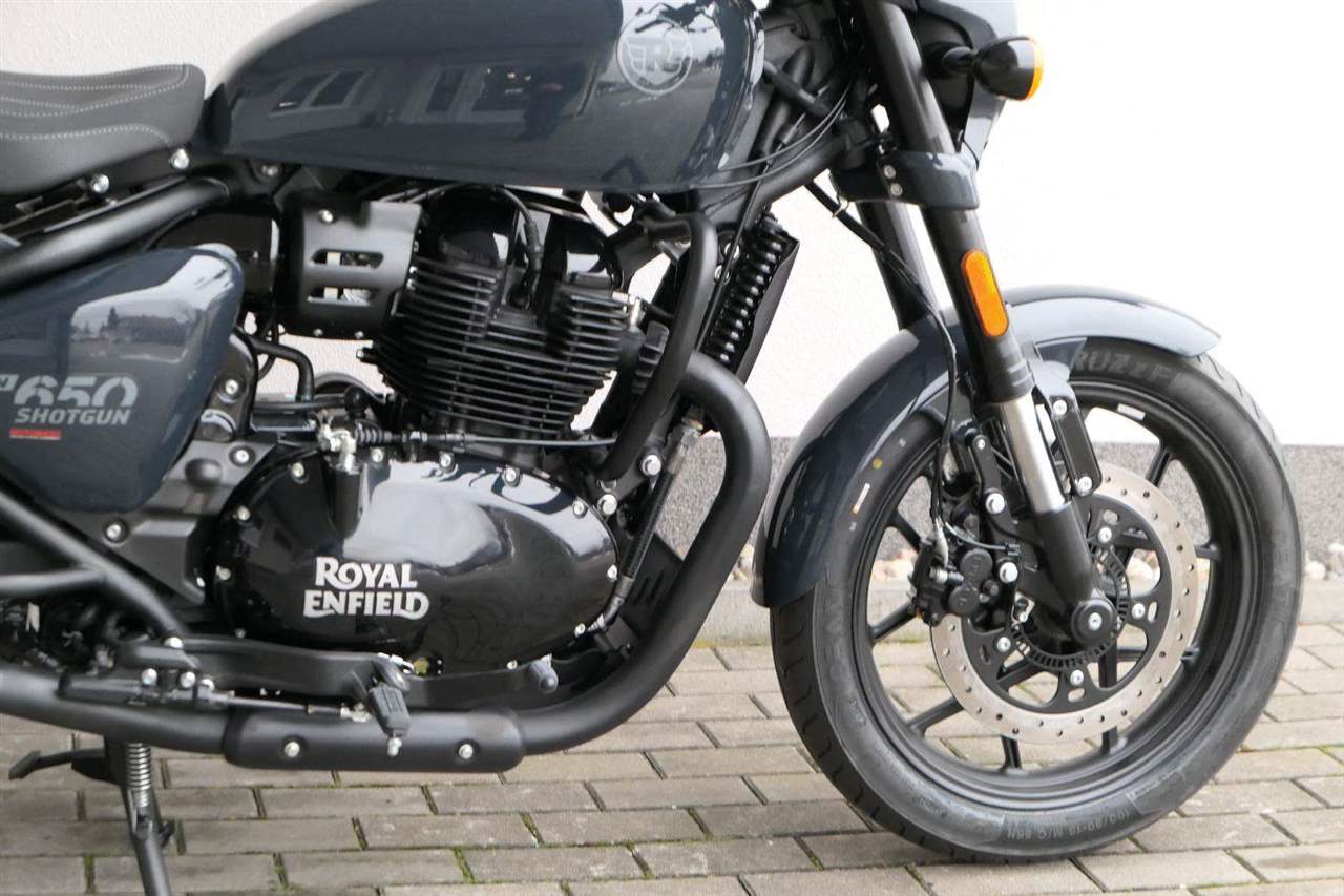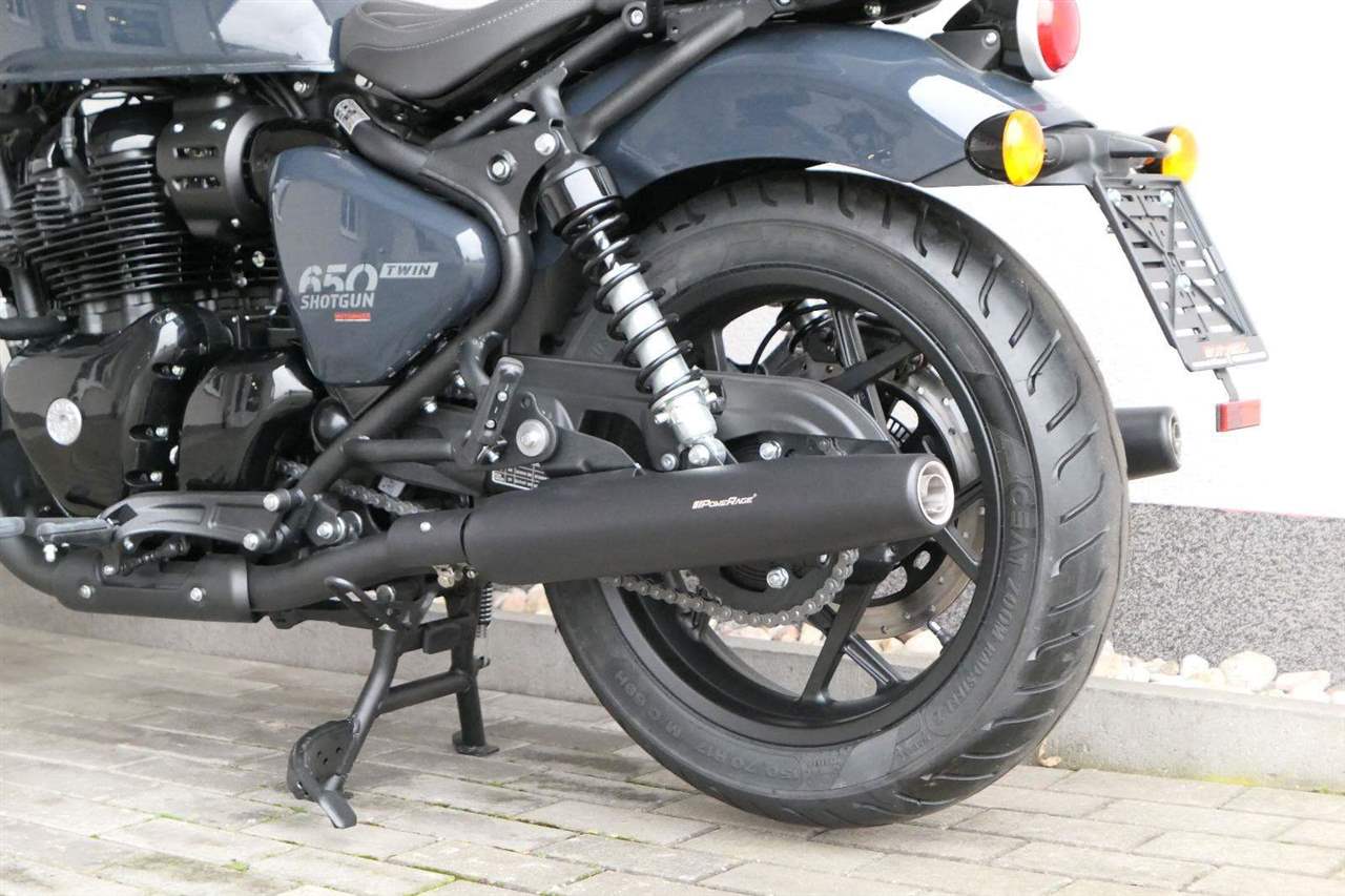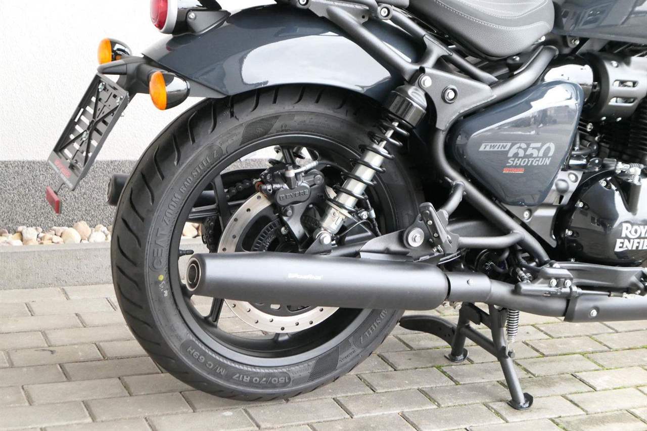 Nový Royal Enfield Shotgun 650 je motocykl, který je definován svým jezdcem. Jeho zcela nová karoserie a postoj jsou prázdným plátnem, které se vzpírá tradiční kategorizaci motocyklů a přebírá osobnost svého jezdce. Jeho modulární konstrukce umožňuje snadné přepínání mezi třemi režimy - od jednomístného přes dvoumístný až po cestovní vůz pro přepravu zavazadel. Otočením klíčku se odklopí sedadlo spolujezdce, což nabízí maximální flexibilitu. Těm, kteří hledají poutavou a agresivní jízdu, nebo těm, kteří hledají pohodovější zážitek, Shotgun 650 bez námahy vyhoví svou vzpřímenou a jistou jízdní pozicí, která podporuje obojí a přizpůsobuje se náladě a stylu jízdy jezdce. Kombinuje retro-futuristický design s moderními prvky. LED světlomet umístěný v nádherné neomoderní gondole na zakázku zůstává věrný estetice neo-retro fúze a zároveň nabízí lepší viditelnost. Motocykl je vybaven digitálně-analogovým sdruženým přístrojem, který je vybaven navigačním systémem Tripper a je navržen tak, aby poskytoval všechny informace, které potřebujete, když se vydáte na cestu. Je také vybaven nabíjecím portem USB, abyste měli svá zařízení na cestách stále nabitá.