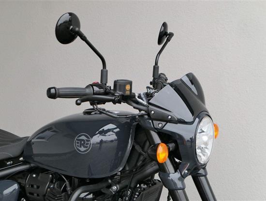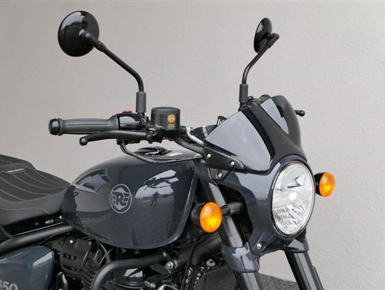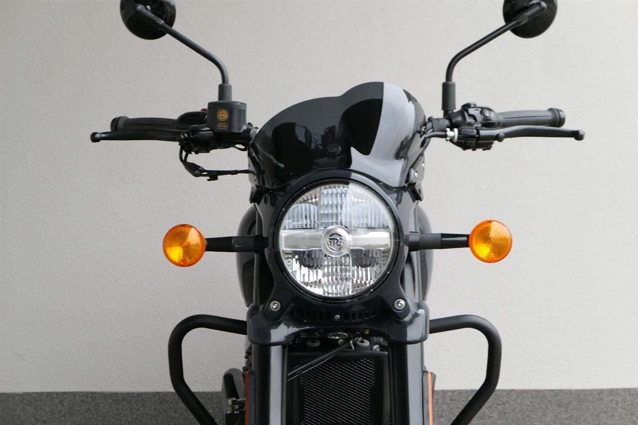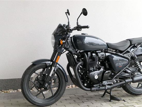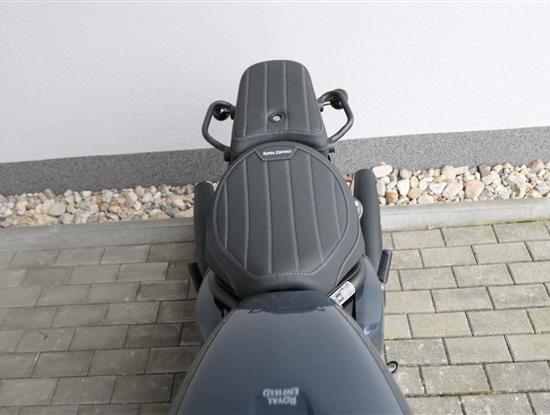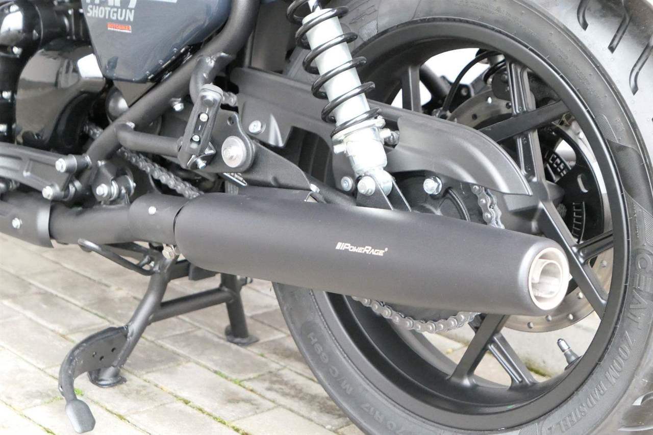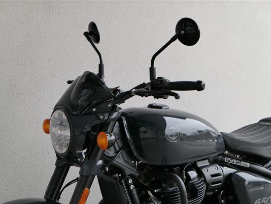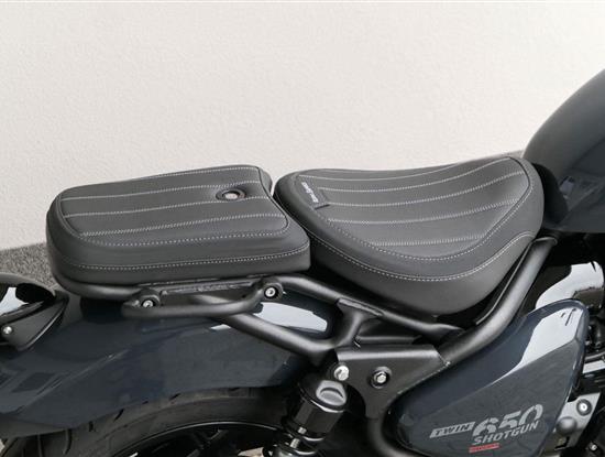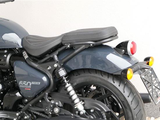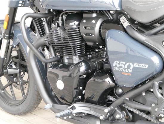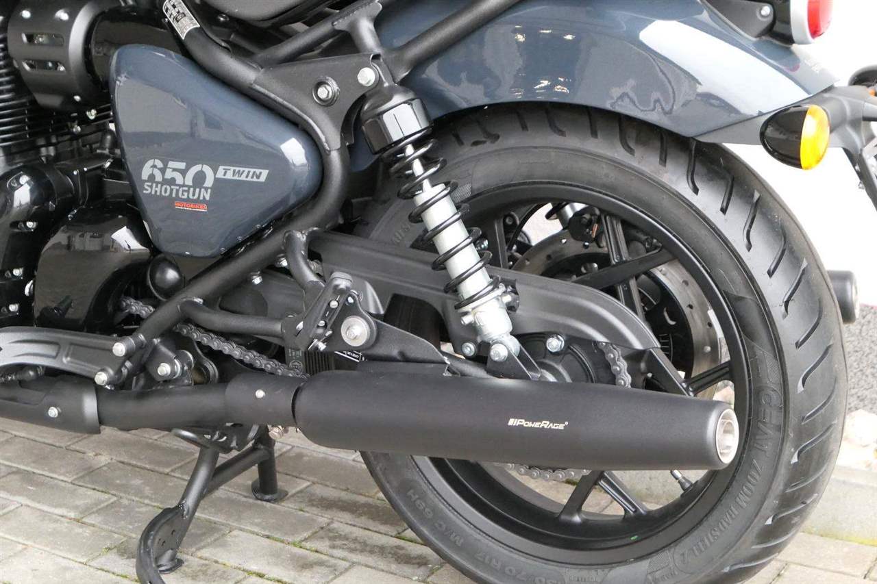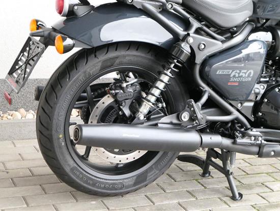 Nový Royal Enfield Shotgun 650 je motocykl, který je definován svým jezdcem. Jeho zcela nová karoserie a postoj jsou prázdným plátnem, které se vzpírá tradiční kategorizaci motocyklů a přebírá osobnost svého jezdce. Jeho modulární konstrukce umožňuje snadné přepínání mezi třemi režimy - od jednomístného přes dvoumístný až po cestovní vůz pro přepravu zavazadel. Otočením klíčku se odklopí sedadlo spolujezdce, což nabízí maximální flexibilitu. Těm, kteří hledají poutavou a agresivní jízdu, nebo těm, kteří hledají pohodovější zážitek, Shotgun 650 bez námahy vyhoví svou vzpřímenou a jistou jízdní pozicí, která podporuje obojí a přizpůsobuje se náladě a stylu jízdy jezdce. Kombinuje retro-futuristický design s moderními prvky. LED světlomet umístěný v nádherné neomoderní gondole na zakázku zůstává věrný estetice neo-retro fúze a zároveň nabízí lepší viditelnost. Motocykl je vybaven digitálně-analogovým sdruženým přístrojem, který je vybaven navigačním systémem Tripper a je navržen tak, aby poskytoval všechny informace, které potřebujete, když se vydáte na cestu. Je také vybaven nabíjecím portem USB, abyste měli svá zařízení na cestách stále nabitá.