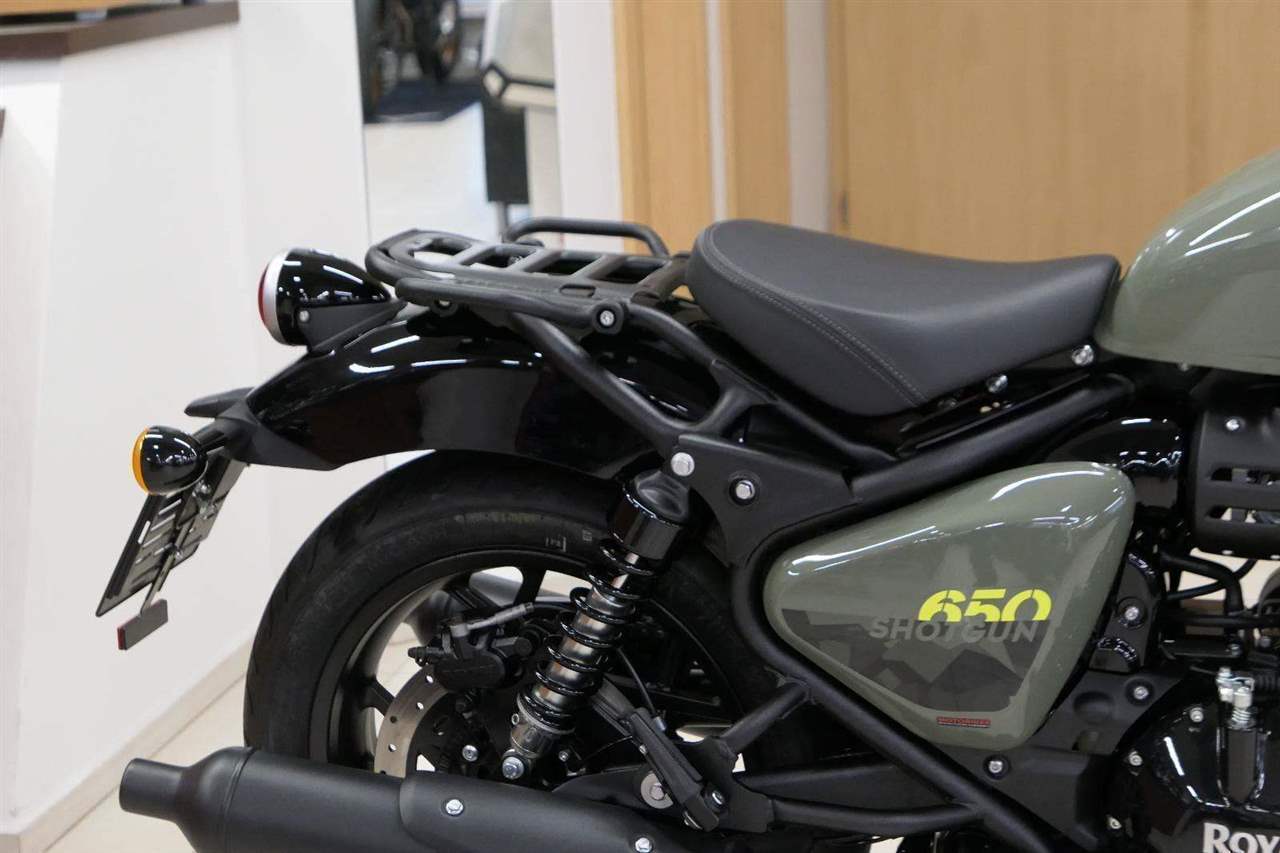 Nový Royal Enfield Shotgun 650 je motocykl, který je definován svým jezdcem. Jeho zcela nová karoserie a postoj jsou prázdným plátnem, které se vzpírá tradiční kategorizaci motocyklů a přebírá osobnost svého jezdce. Jeho modulární konstrukce umožňuje snadné přepínání mezi třemi režimy - od jednomístného přes dvoumístný až po cestovní vůz pro přepravu zavazadel. Otočením klíčku se odklopí sedadlo spolujezdce, což nabízí maximální flexibilitu. Těm, kteří hledají poutavou a agresivní jízdu, nebo těm, kteří hledají pohodovější zážitek, Shotgun 650 bez námahy vyhoví svou vzpřímenou a jistou jízdní pozicí, která podporuje obojí a přizpůsobuje se náladě a stylu jízdy jezdce. Kombinuje retro-futuristický design s moderními prvky. LED světlomet umístěný v nádherné neomoderní gondole na zakázku zůstává věrný estetice neo-retro fúze a zároveň nabízí lepší viditelnost. Motocykl je vybaven digitálně-analogovým sdruženým přístrojem, který je vybaven navigačním systémem Tripper a je navržen tak, aby poskytoval všechny informace, které potřebujete, když se vydáte na cestu. Je také vybaven nabíjecím portem USB, abyste měli svá zařízení na cestách stále nabitá.