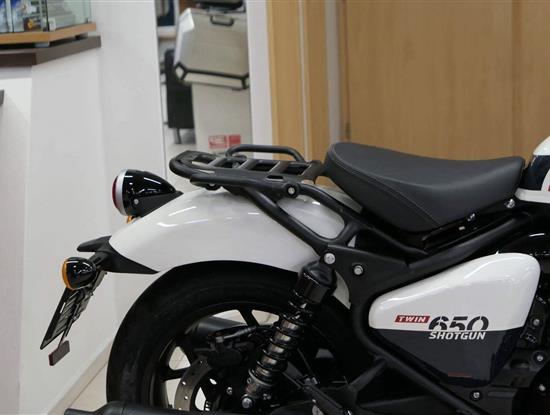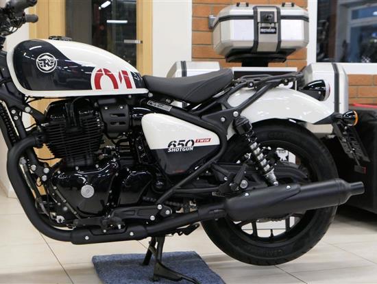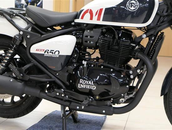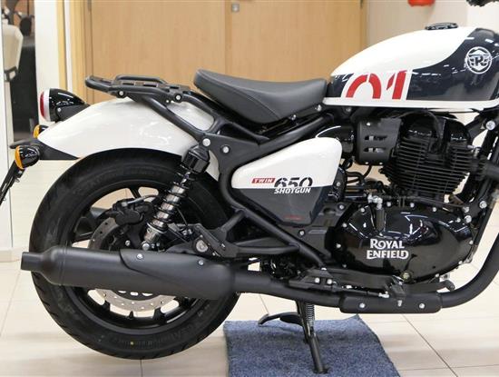 Nový Royal Enfield Shotgun 650 je motocykl, který je definován svým jezdcem. Jeho zcela nová karoserie a postoj jsou prázdným plátnem, které se vzpírá tradiční kategorizaci motocyklů a přebírá osobnost svého jezdce. Jeho modulární konstrukce umožňuje snadné přepínání mezi třemi režimy - od jednomístného přes dvoumístný až po cestovní vůz pro přepravu zavazadel. Otočením klíčku se odklopí sedadlo spolujezdce, což nabízí maximální flexibilitu. Těm, kteří hledají poutavou a agresivní jízdu, nebo těm, kteří hledají pohodovější zážitek, Shotgun 650 bez námahy vyhoví svou vzpřímenou a jistou jízdní pozicí, která podporuje obojí a přizpůsobuje se náladě a stylu jízdy jezdce. Kombinuje retro-futuristický design s moderními prvky. LED světlomet umístěný v nádherné neomoderní gondole na zakázku zůstává věrný estetice neo-retro fúze a zároveň nabízí lepší viditelnost. Motocykl je vybaven digitálně-analogovým sdruženým přístrojem, který je vybaven navigačním systémem Tripper a je navržen tak, aby poskytoval všechny informace, které potřebujete, když se vydáte na cestu. Je také vybaven nabíjecím portem USB, abyste měli svá zařízení na cestách stále nabitá.