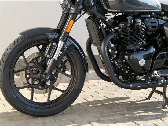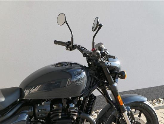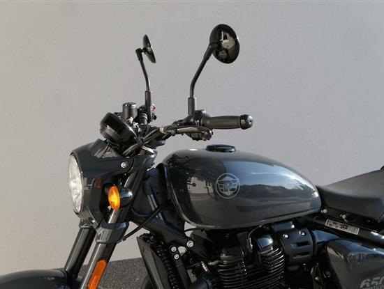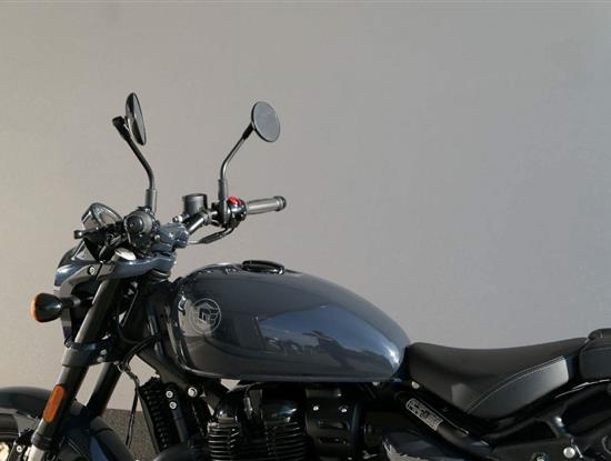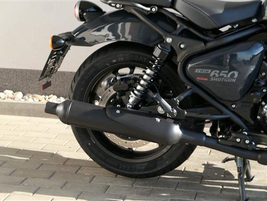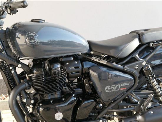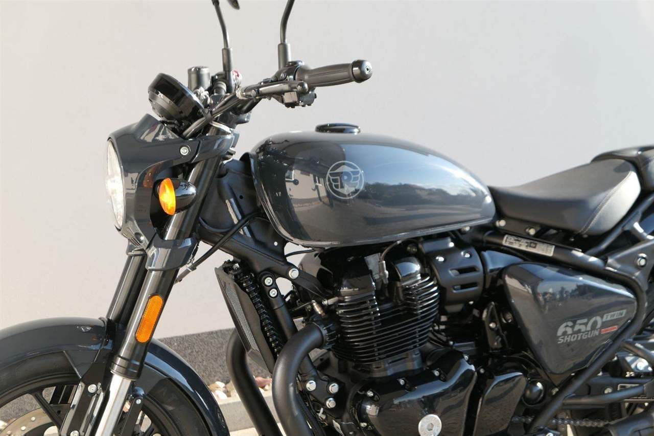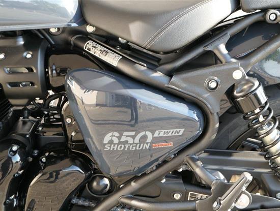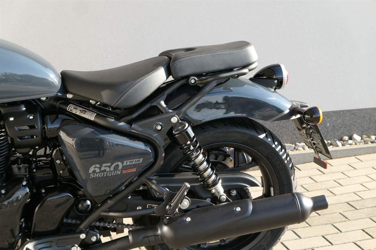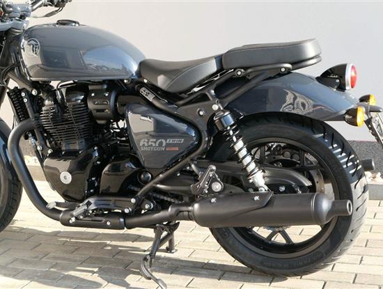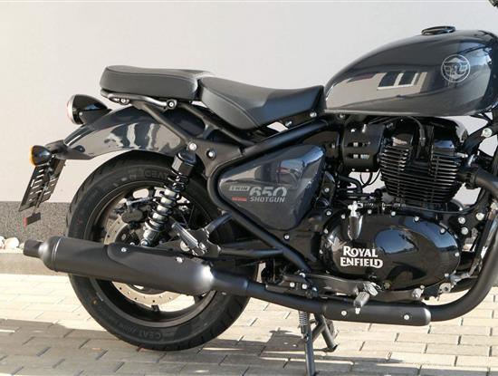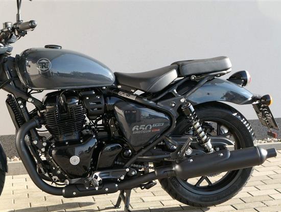 Nový Royal Enfield Shotgun 650 je motocykl, který je definován svým jezdcem. Jeho zcela nová karoserie a postoj jsou prázdným plátnem, které se vzpírá tradiční kategorizaci motocyklů a přebírá osobnost svého jezdce. Jeho modulární konstrukce umožňuje snadné přepínání mezi třemi režimy - od jednomístného přes dvoumístný až po cestovní vůz pro přepravu zavazadel. Otočením klíčku se odklopí sedadlo spolujezdce, což nabízí maximální flexibilitu. Těm, kteří hledají poutavou a agresivní jízdu, nebo těm, kteří hledají pohodovější zážitek, Shotgun 650 bez námahy vyhoví svou vzpřímenou a jistou jízdní pozicí, která podporuje obojí a přizpůsobuje se náladě a stylu jízdy jezdce. Kombinuje retro-futuristický design s moderními prvky. LED světlomet umístěný v nádherné neomoderní gondole na zakázku zůstává věrný estetice neo-retro fúze a zároveň nabízí lepší viditelnost. Motocykl je vybaven digitálně-analogovým sdruženým přístrojem, který je vybaven navigačním systémem Tripper a je navržen tak, aby poskytoval všechny informace, které potřebujete, když se vydáte na cestu. Je také vybaven nabíjecím portem USB, abyste měli svá zařízení na cestách stále nabitá.