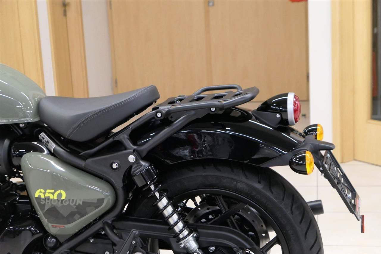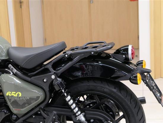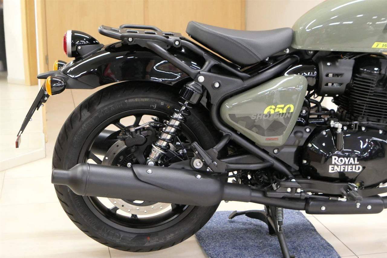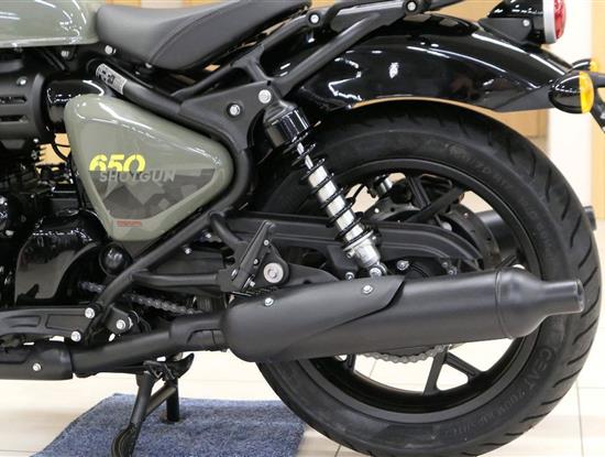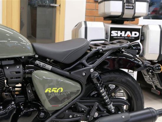Nový Royal Enfield Shotgun 650 je motocykl, který je definován svým jezdcem. Jeho zcela nová karoserie a postoj jsou prázdným plátnem, které se vzpírá tradiční kategorizaci motocyklů a přebírá osobnost svého jezdce. Jeho modulární konstrukce umožňuje snadné přepínání mezi třemi režimy - od jednomístného přes dvoumístný až po cestovní vůz pro přepravu zavazadel. Otočením klíčku se odklopí sedadlo spolujezdce, což nabízí maximální flexibilitu. Těm, kteří hledají poutavou a agresivní jízdu, nebo těm, kteří hledají pohodovější zážitek, Shotgun 650 bez námahy vyhoví svou vzpřímenou a jistou jízdní pozicí, která podporuje obojí a přizpůsobuje se náladě a stylu jízdy jezdce. Kombinuje retro-futuristický design s moderními prvky. LED světlomet umístěný v nádherné neomoderní gondole na zakázku zůstává věrný estetice neo-retro fúze a zároveň nabízí lepší viditelnost. Motocykl je vybaven digitálně-analogovým sdruženým přístrojem, který je vybaven navigačním systémem Tripper a je navržen tak, aby poskytoval všechny informace, které potřebujete, když se vydáte na cestu. Je také vybaven nabíjecím portem USB, abyste měli svá zařízení na cestách stále nabitá.