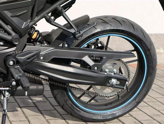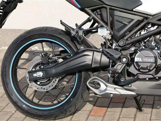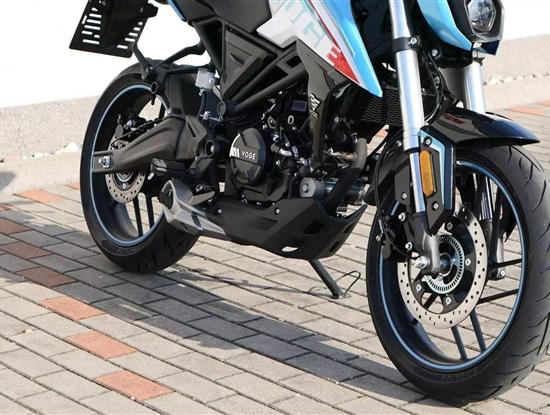 Podvozek je naladěn sportovně, ale přívětivě. Přední upside-down vidlice Ø 35 mm a zadní centrální tlumič zajišťují jistotu v zatáčkách i komfort při běžné jízdě. O bezpečné brzdění se starají kotoučové brzdy vpředu i vzadu doplněné o ABS, které je v základní výbavě. Díky provozní hmotnosti 136 kg je motocykl velmi snadno ovladatelný i pro méně zkušené jezdce.