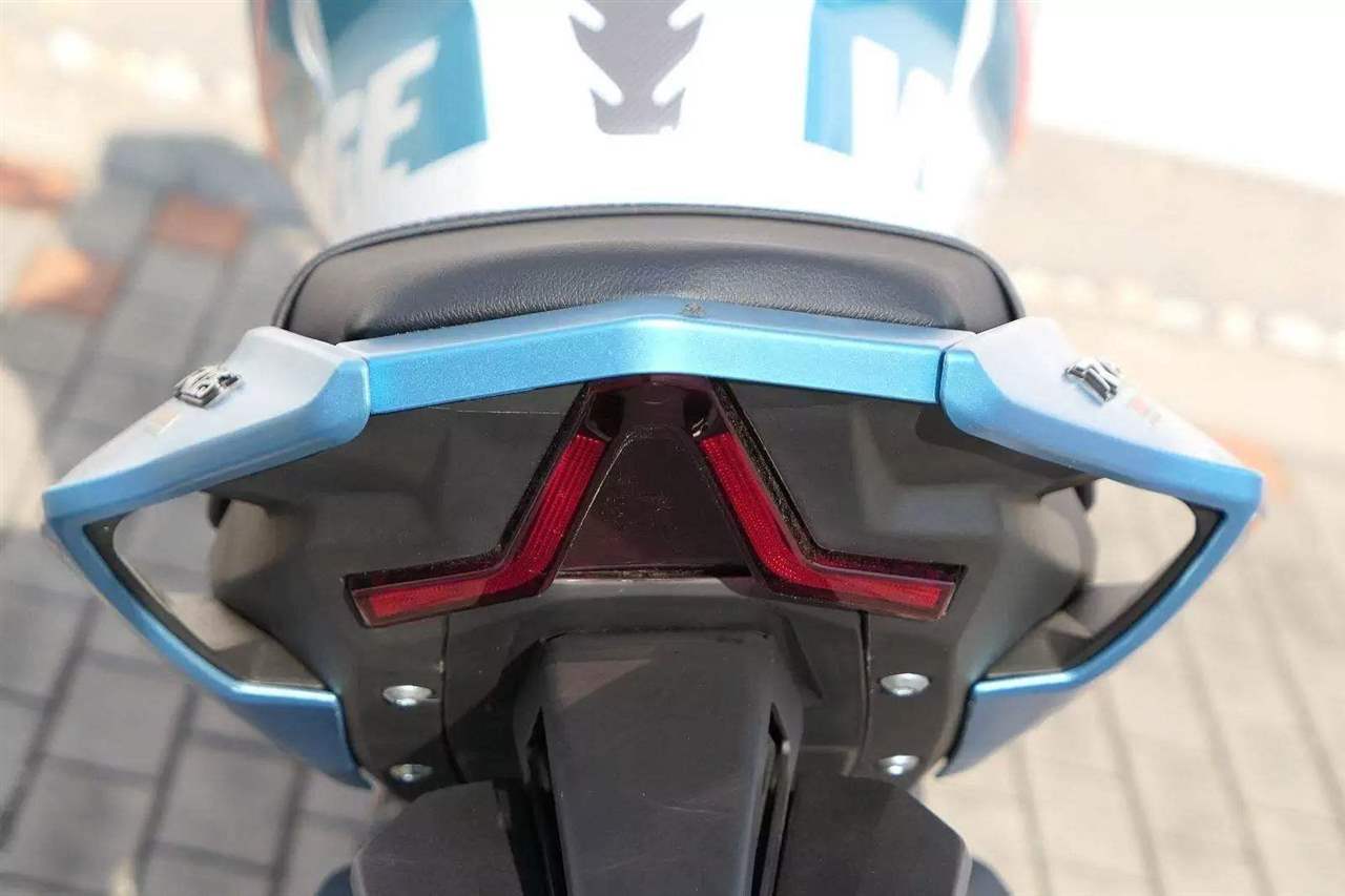 Neskutečně rajcovní LED pásky zdobí obě strany palivový nádrže.