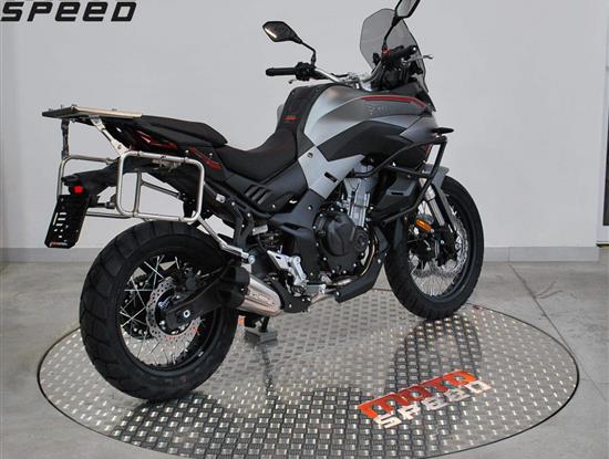 Výbava: Mimořádná základní výbava: Drátěná kola, Pneumatiky Metzeler Tourance, Upside-Down přední vidlice Kayaba, Brzdy Nissin, ABS Bosch - vypínatelné, Přístrojovka s ukazatelem snímače tlaku v pneumatikách a připojení k chytrému telefonu, Sekvenční LED dynamické blinkry, Hlavní stojan, Seřiditelný větrný štítek, Padací rám i přes přední blatník, USB zásuvka, Držáky kufrů jsou součástí sériové výbavy motocyklu.; Možnost dokoupení sady 3 alu kufrů za 15.990,- Kč
