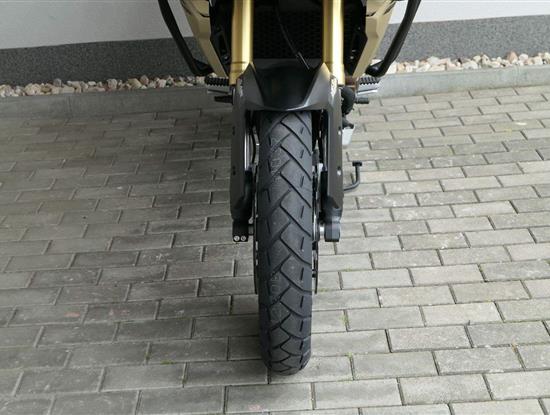 Na fešnejch drátěnejch kolech mám obutý bezdušový gumy Metzeler Tourance. Naprostej spoleh je na topový brzdy od japonskýho Nissinu. Pomocí dvou jízdních režimů mi snadno poručíš, jestli dáme piánko, nebo přitvrdíme v režimu sport.