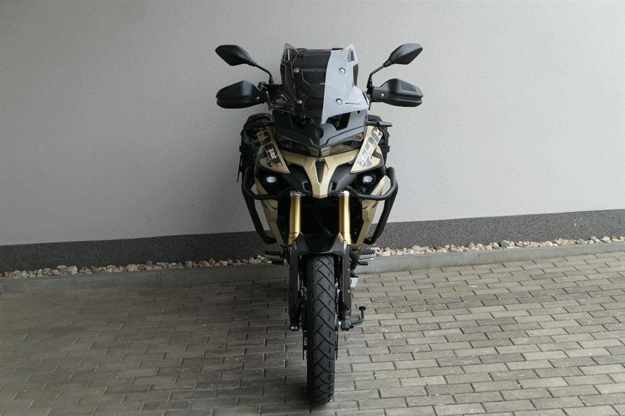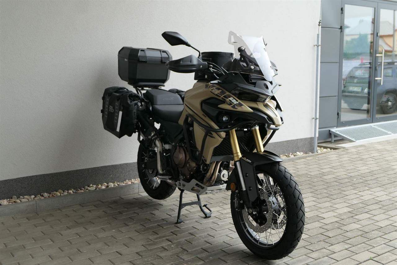Těšit se můžeš taky na plexi, který si z místa řidiče bez nářadí nastavíš do dvou poloh. Oceníš i hliníkovej kryt motoru, LED světla včetně přídavnejch bodovek, boční i středovej stojan a hafo další výbavičky. Jo, a nově mám taky podsvícený ovladače na řídítkách, takže už žádný tápání ve tmě.