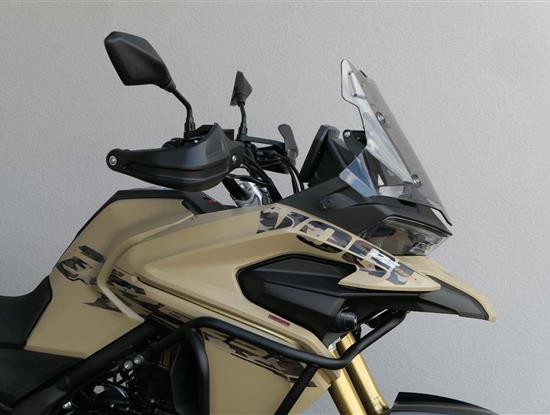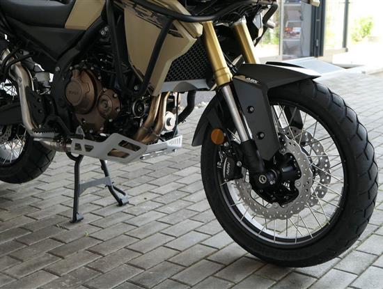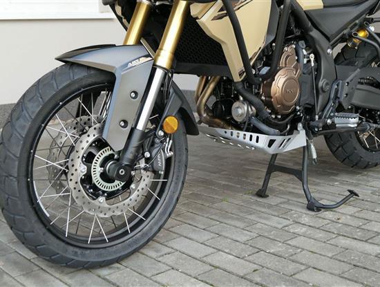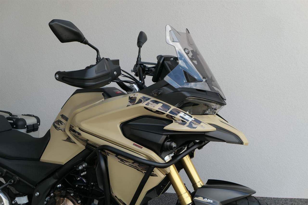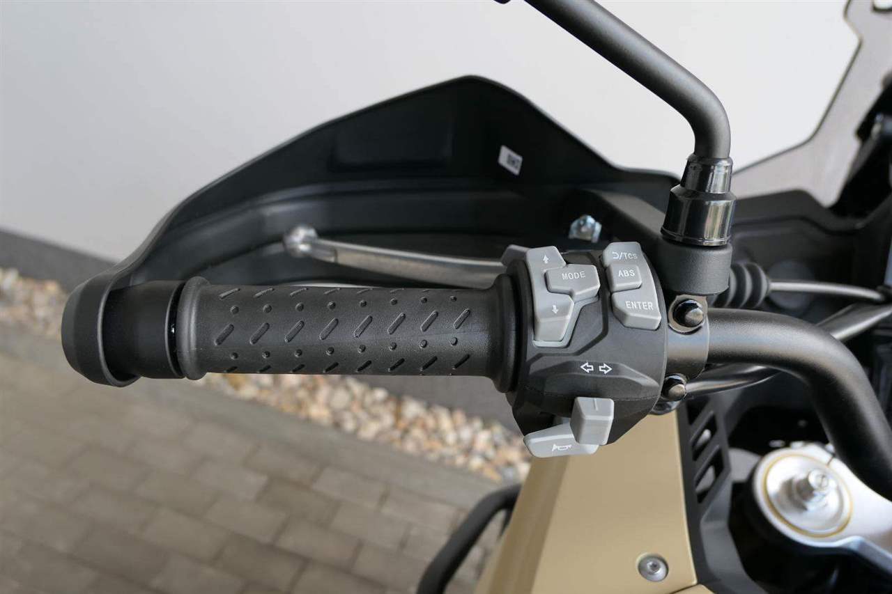 Těšit se můžeš taky na plexi, který si z místa řidiče bez nářadí nastavíš do dvou poloh. Oceníš i hliníkovej kryt motoru, LED světla včetně přídavnejch bodovek, boční i středovej stojan a hafo další výbavičky. Jo, a nově mám taky podsvícený ovladače na řídítkách, takže už žádný tápání ve tmě.