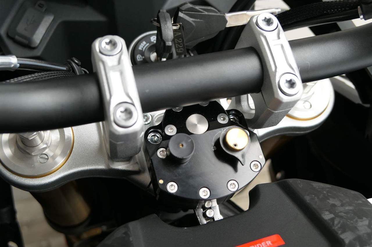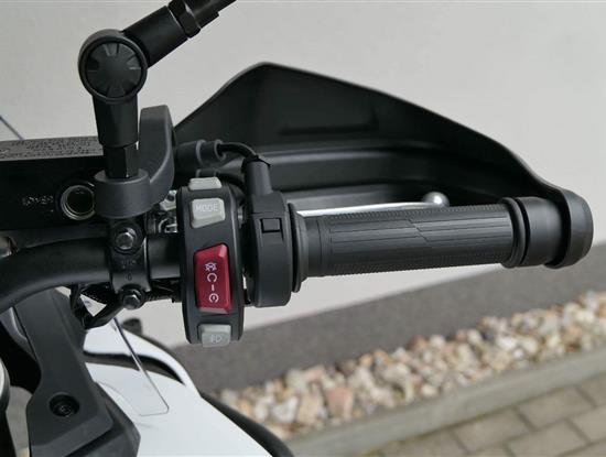Do vínku jsem dostala elektro výbavu přesně podle teréňácký bible. ABS si můžeš vypnout buď komplet, nebo jen na zadním kole. Vypinatelnou mám samozřejmě taky kontrolu trakce. Hlavně v divočině voceníš rotační tlumič řízení. A když bude kosa, uvítáš vyhřívaný sedlo i gripy. Jasný, určitě seš taky drsňák jako já, ale vyrazit vstříc dobrodružství s troškou komfortu není žádná vostuda.