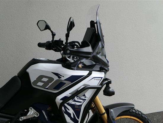 Můj štíhlej pas ti dovolí užít si jak jízdu vestoje, tak vsedě. Vysoký plexi mám fikaně posunutý dopředu, takže ti nebude mlátit do brady třeba při skocích. No a moje stupačky jsou nejen prostorný, ale samože taky zubatý, takže tě podržej v každý situaci.