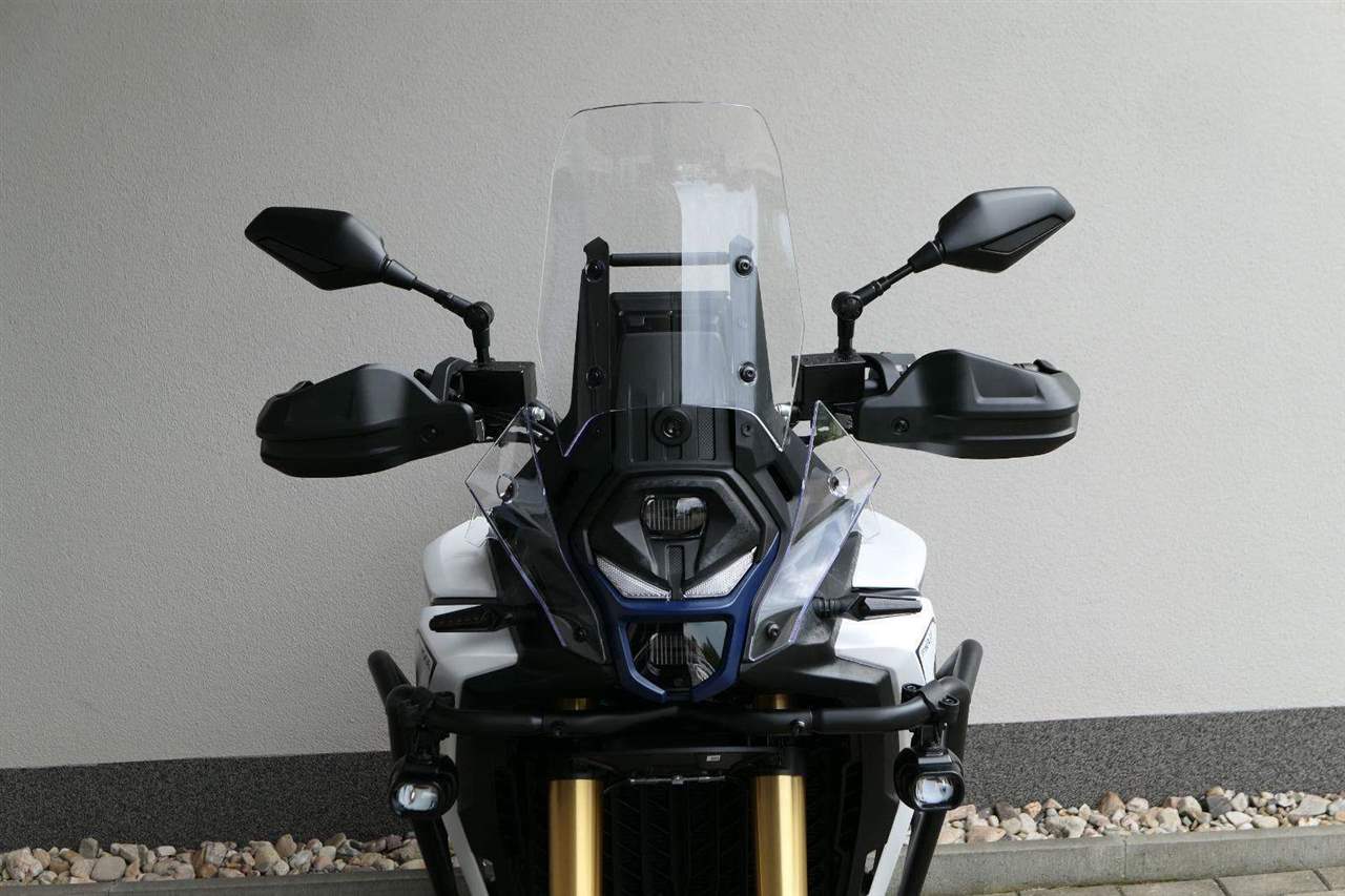 Ne, nejsme na módní přehlídce. Všecko má samozřejmě i praktický důvody: vysoký plexi tě vochrání před větrem i vodou, výkonný LEDky prosvítěj noc jako den. A ten výraznej zobák? Ten taky není jen na parádu. V terénu ho sakramentsky oceníš, až bude polykat odletující šutráky.