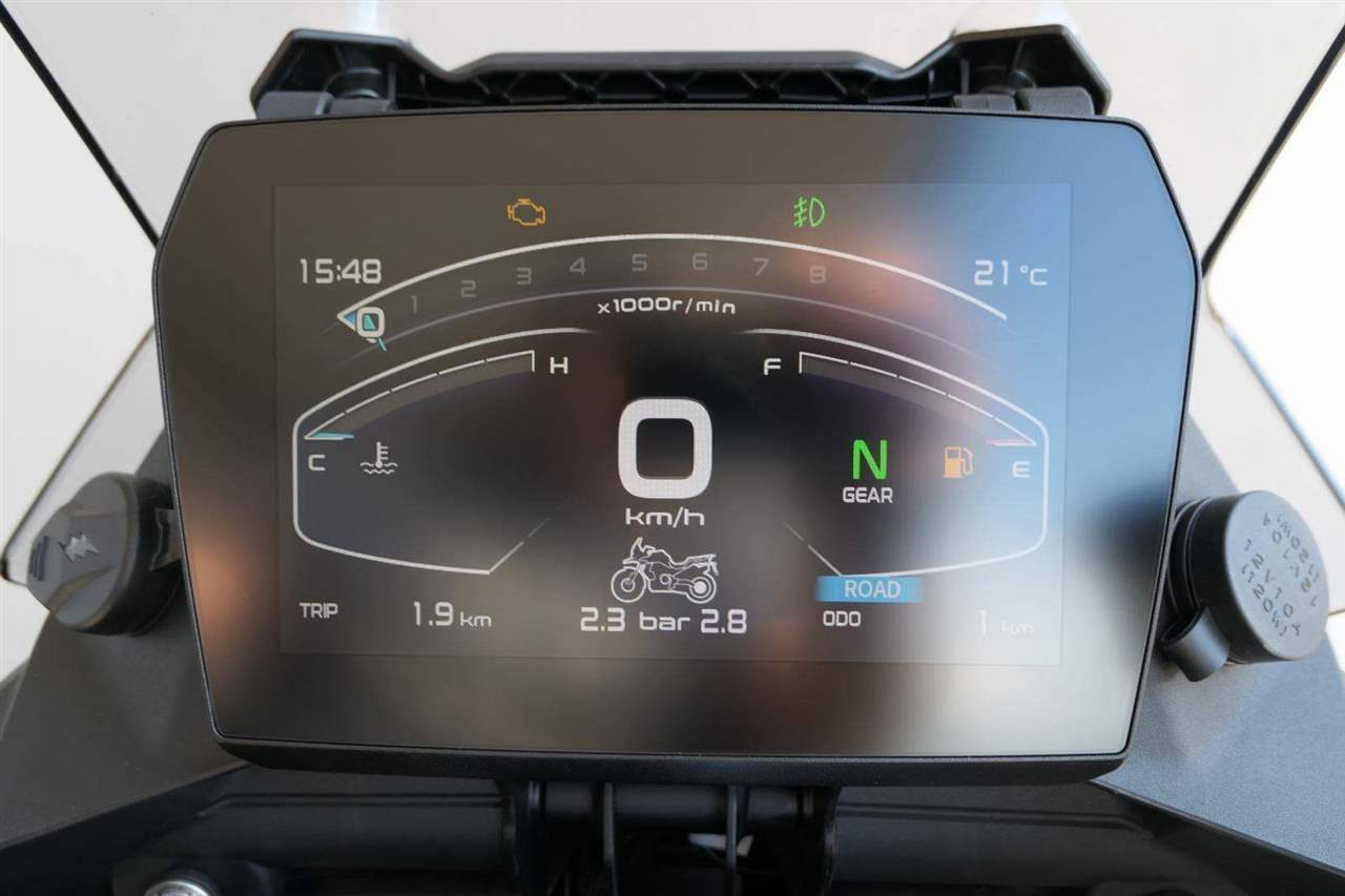 Konstruktéři VOGE zde mysleli na všechno, počítejte sami: od nastavitelného podvozku s velkými zdvihy, vypínatelné kontrole trakce, kompletního osvětlení s LED až po vyhřívanou sedačku. A s výškou sedadla 850 mm i piloti menšího vzrůstu dobře dosáhnou na zem při manipulaci v pomalých rychlostech.