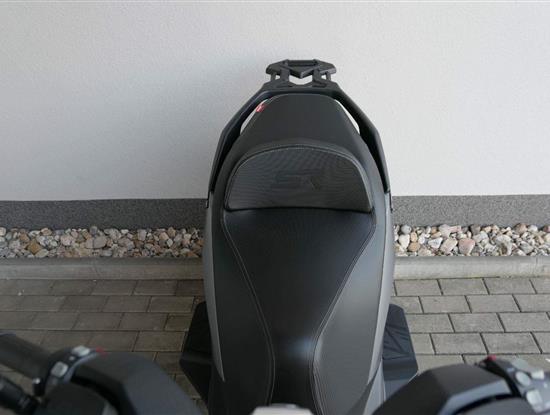 Pravým direktem kontruje osvětlenej prostor pod sedlem s místem až na dvě helmy. Do provazů konkurenci zatlačí propracovanej vysokokontrastní 7" TFT displej s turn by turn navigací, senzorem tlaku v pneumatikách a kompletní bluetooth konektivtou. Definitivní K. O. zasadí vyhřívaný rukojeti řídítek. Jedna, dva, tři… odpočítáno.