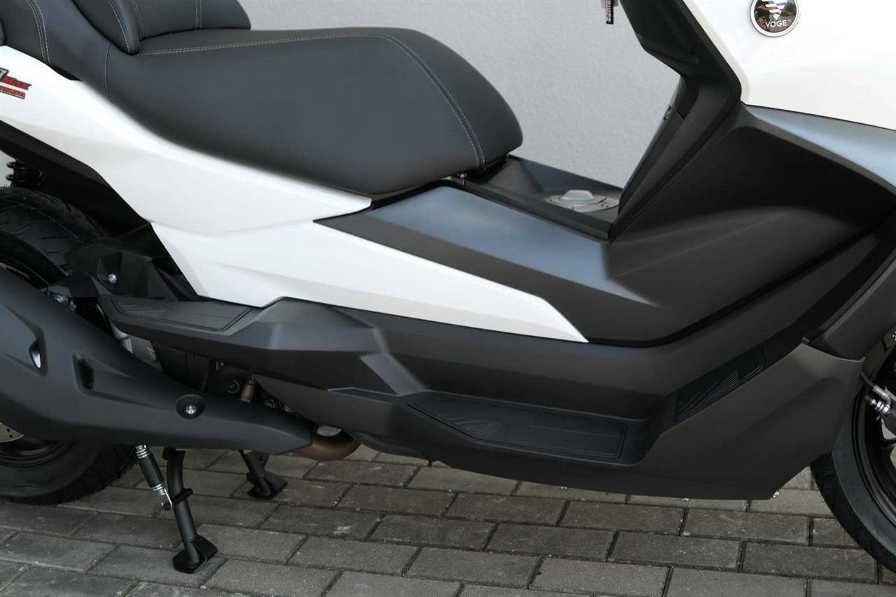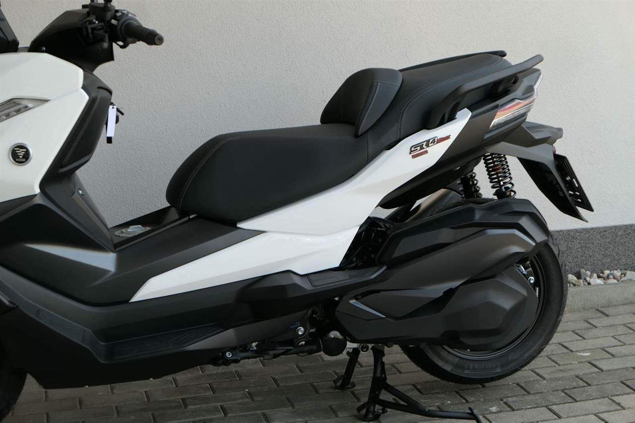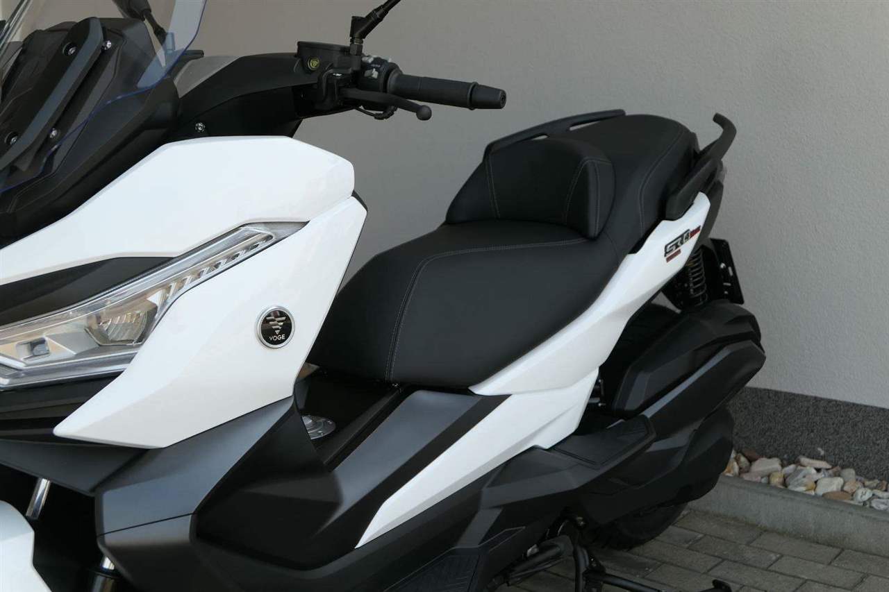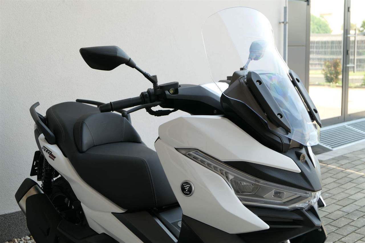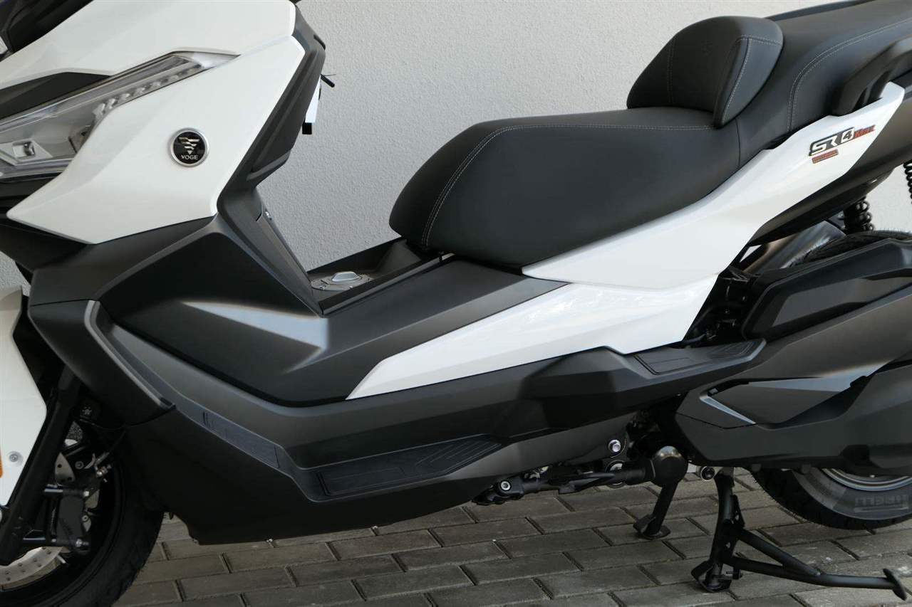 První skútr z rodiny VOGE se řadí do objemové kategorie 350 ccm a vedle jeho silného motoru askvělé ovladatelnosti se vyznačuje i svojí markantní moderní optikou. VOGE SR4 MAX nabízí ivelkou porci komfortu a výbavy. systém kontroly trakce TCS, kompletní LED osvětlení včetně denního svícení a svícení do zatáček, velký TFT displej s konektivitou, USB zásuvka, kamera, keyless systém, vyhřívané rukojeti, vyhřívané sedadlo, elektricky stavitelné plexi