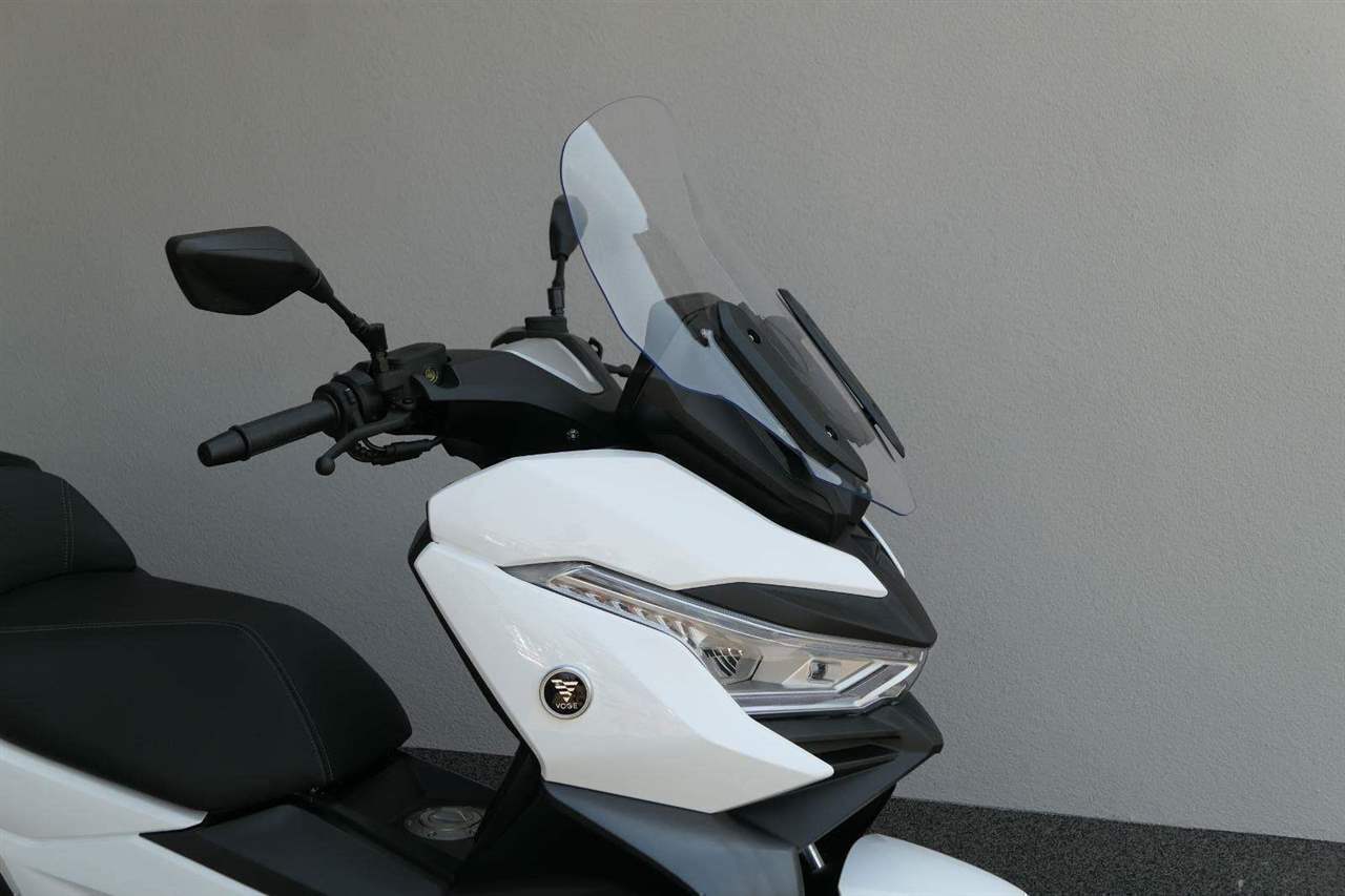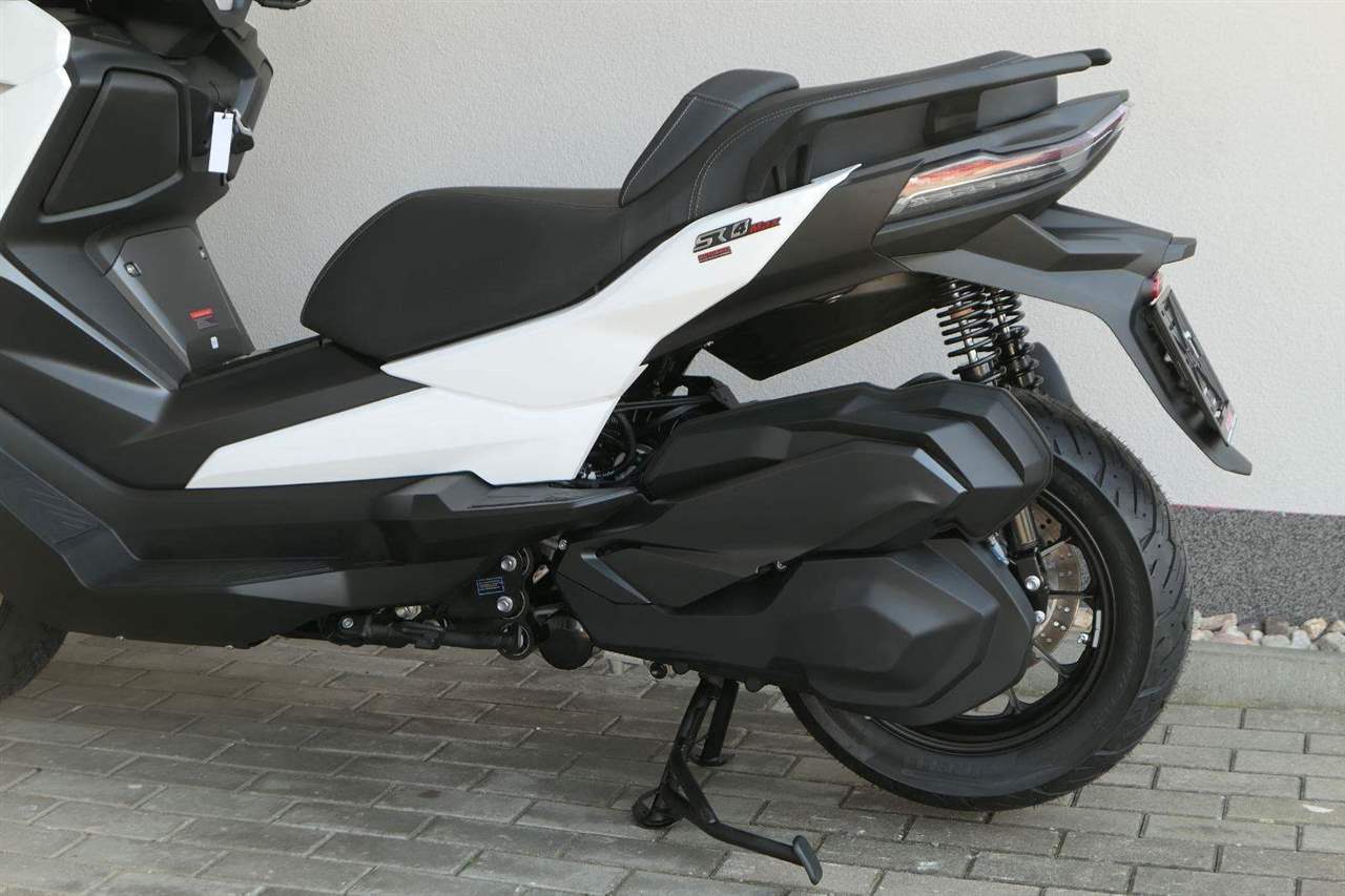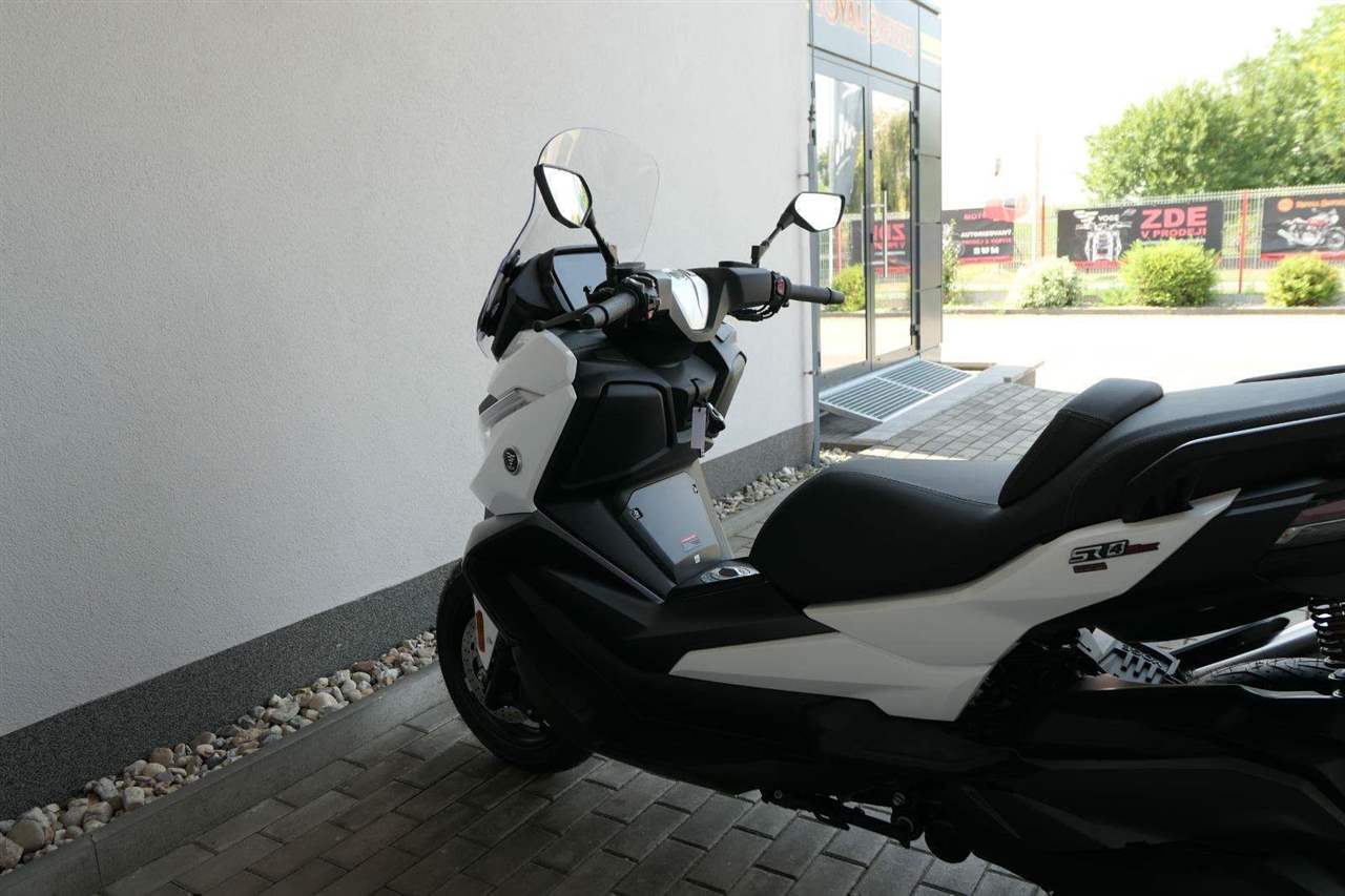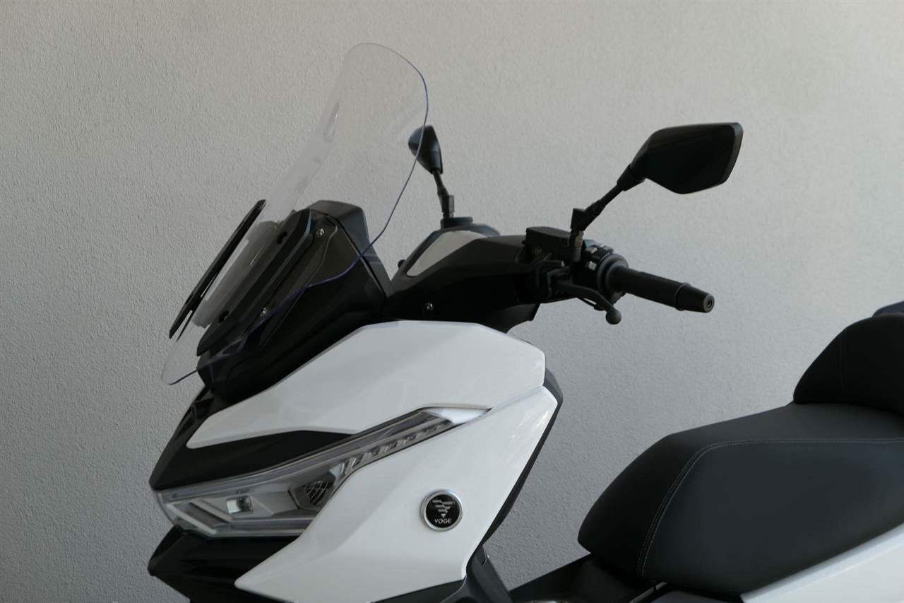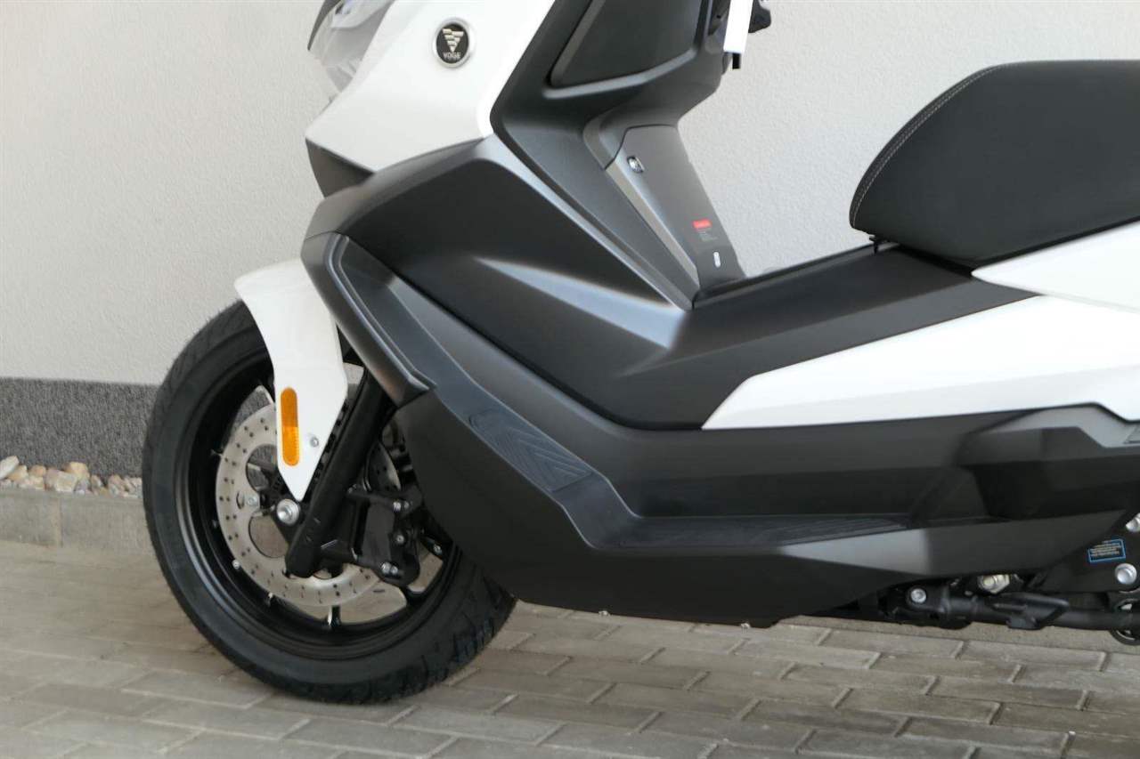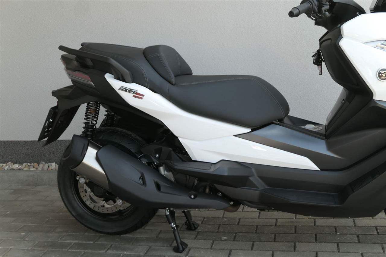 První skútr z rodiny VOGE se řadí do objemové kategorie 350 ccm a vedle jeho silného motoru askvělé ovladatelnosti se vyznačuje i svojí markantní moderní optikou. VOGE SR4 MAX nabízí ivelkou porci komfortu a výbavy. systém kontroly trakce TCS, kompletní LED osvětlení včetně denního svícení a svícení do zatáček, velký TFT displej s konektivitou, USB zásuvka, kamera, keyless systém, vyhřívané rukojeti, vyhřívané sedadlo, elektricky stavitelné plexi