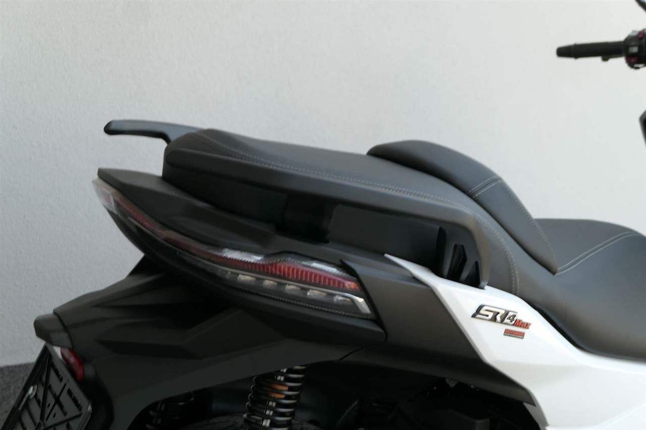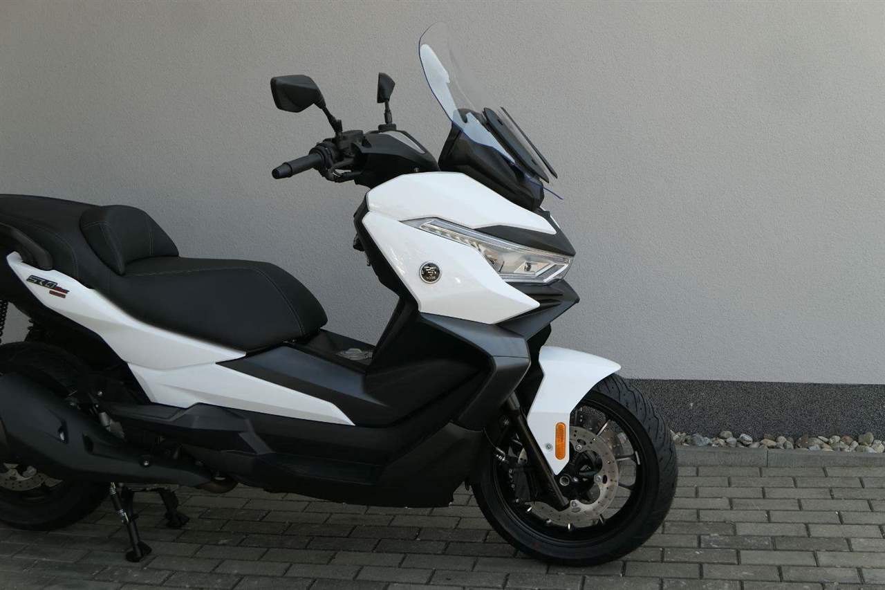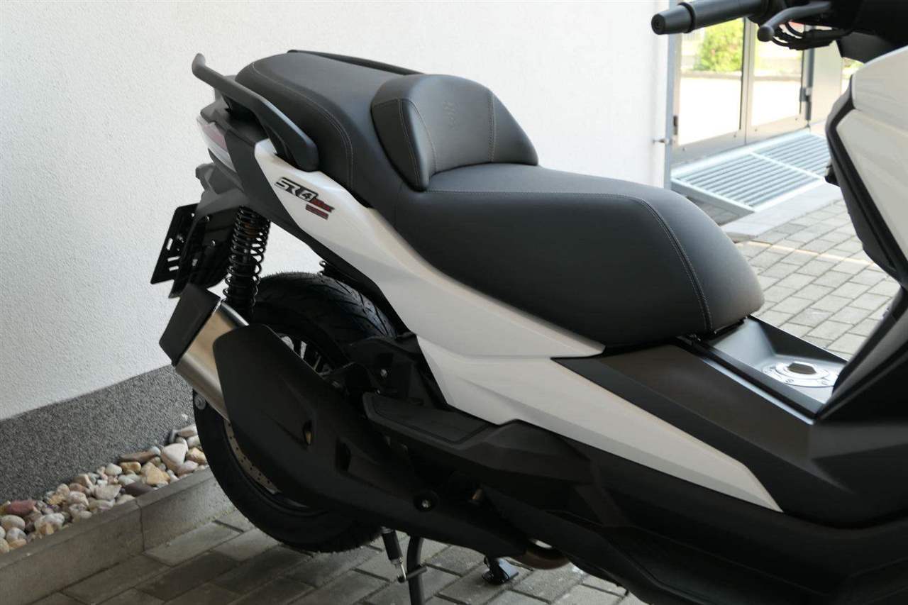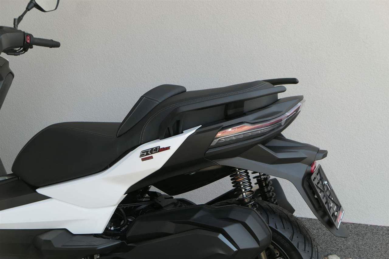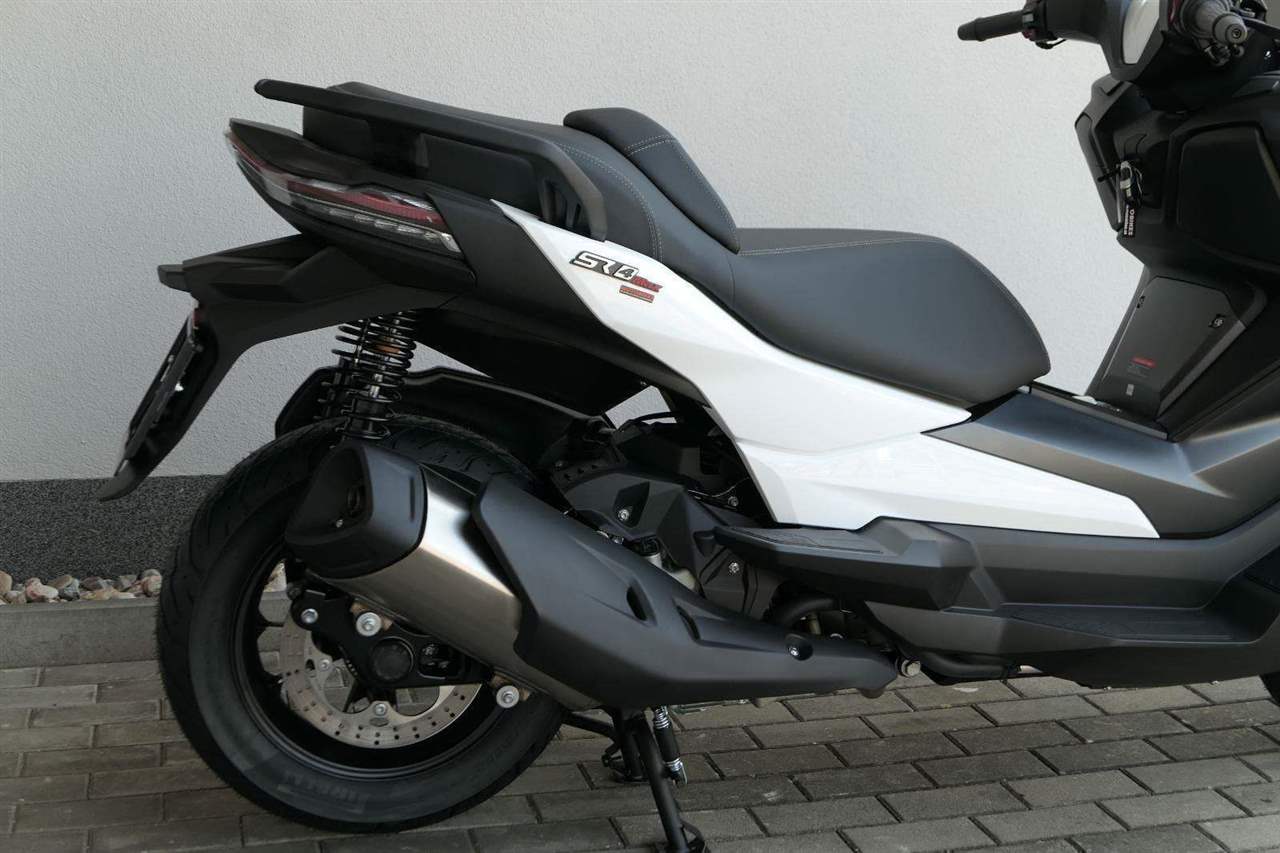 První skútr z rodiny VOGE se řadí do objemové kategorie 350 ccm a vedle jeho silného motoru askvělé ovladatelnosti se vyznačuje i svojí markantní moderní optikou. VOGE SR4 MAX nabízí ivelkou porci komfortu a výbavy. systém kontroly trakce TCS, kompletní LED osvětlení včetně denního svícení a svícení do zatáček, velký TFT displej s konektivitou, USB zásuvka, kamera, keyless systém, vyhřívané rukojeti, vyhřívané sedadlo, elektricky stavitelné plexi