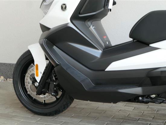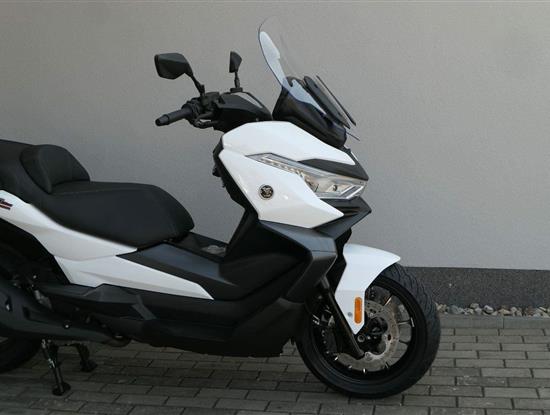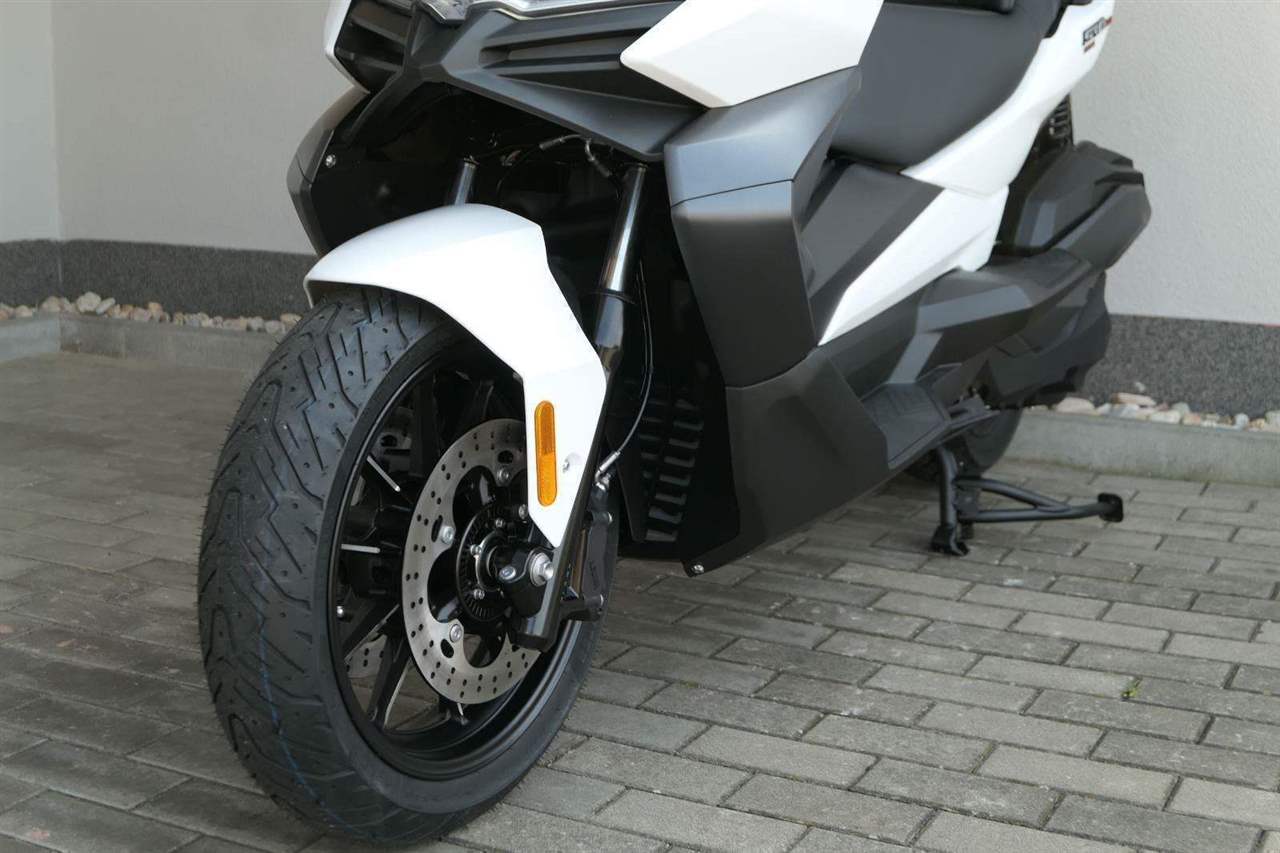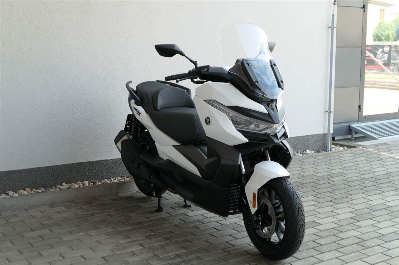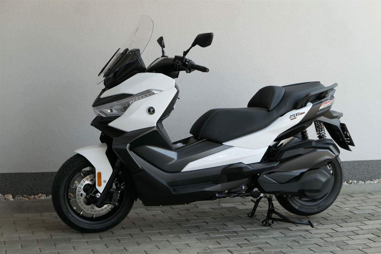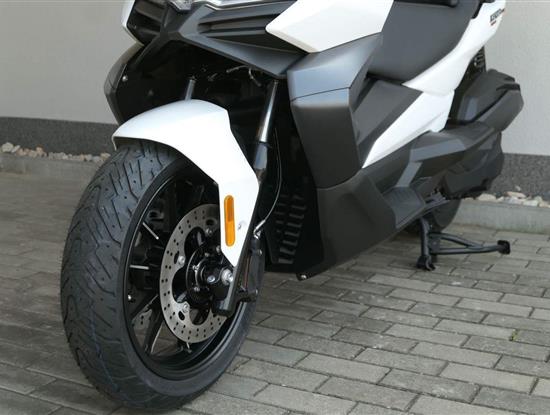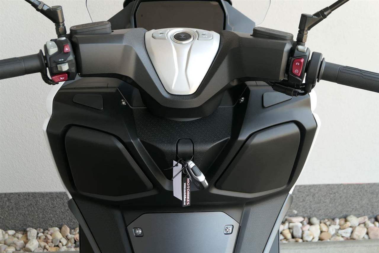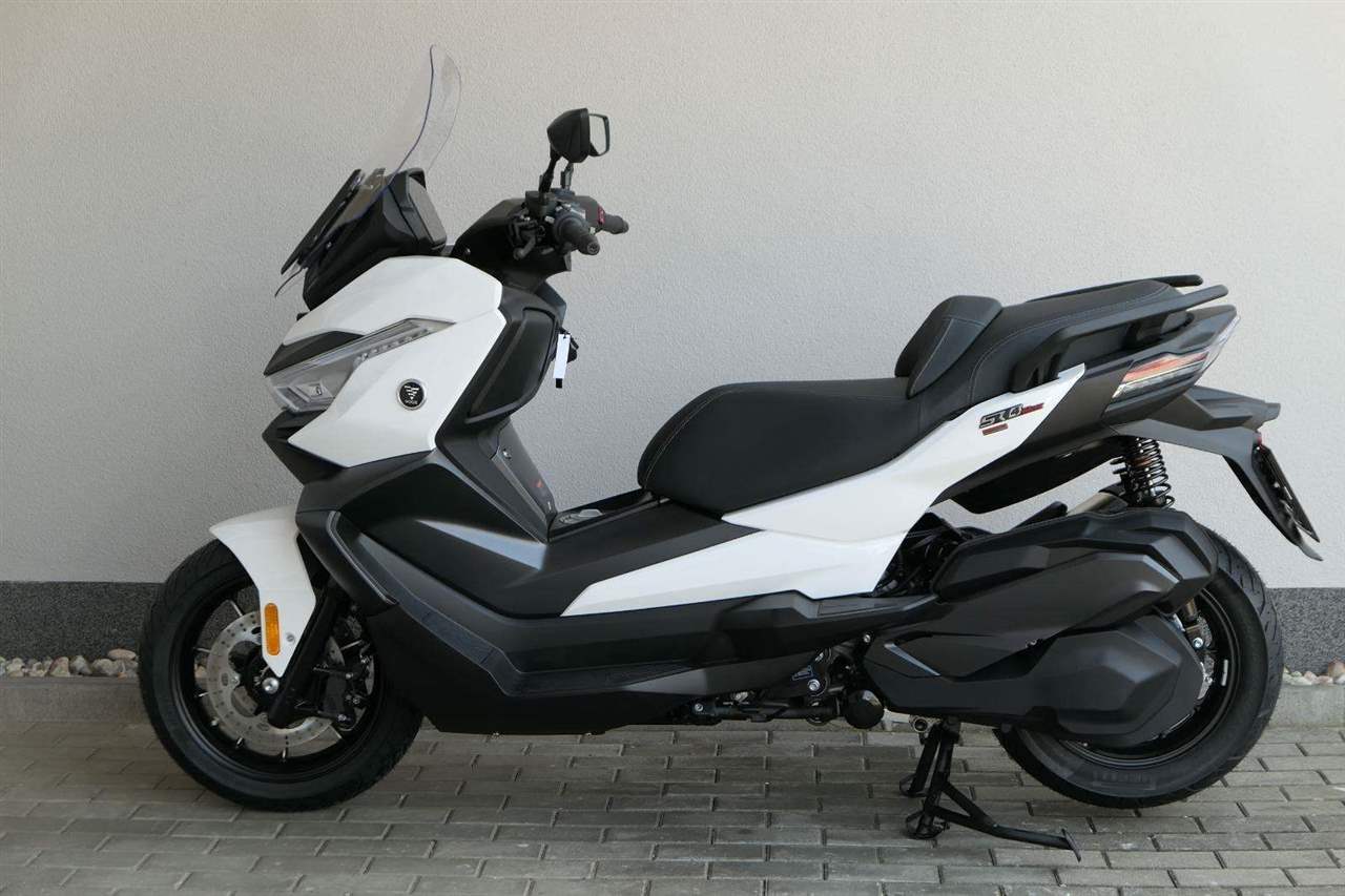 První skútr z rodiny VOGE se řadí do objemové kategorie 350 ccm a vedle jeho silného motoru askvělé ovladatelnosti se vyznačuje i svojí markantní moderní optikou. VOGE SR4 MAX nabízí ivelkou porci komfortu a výbavy. systém kontroly trakce TCS, kompletní LED osvětlení včetně denního svícení a svícení do zatáček, velký TFT displej s konektivitou, USB zásuvka, kamera, keyless systém, vyhřívané rukojeti, vyhřívané sedadlo, elektricky stavitelné plexi