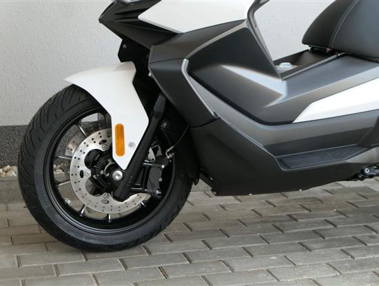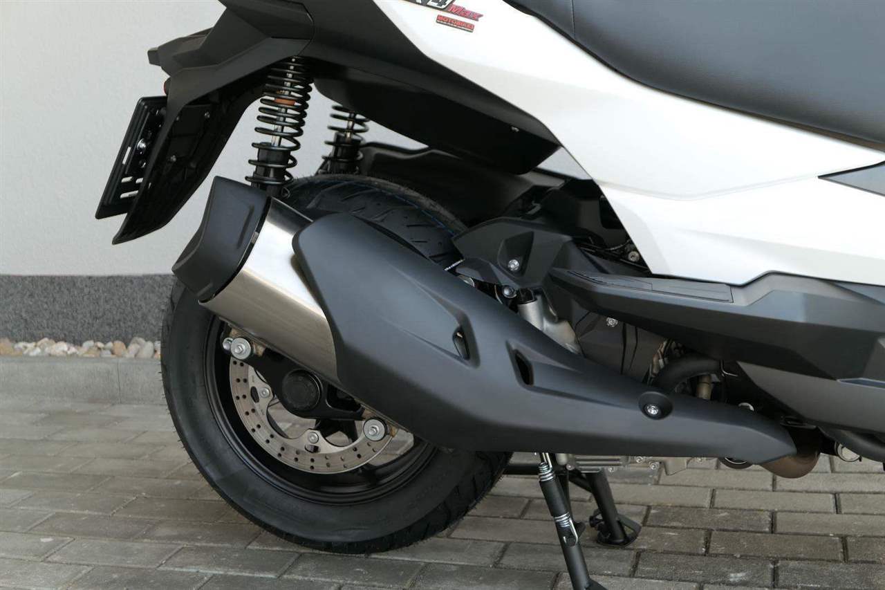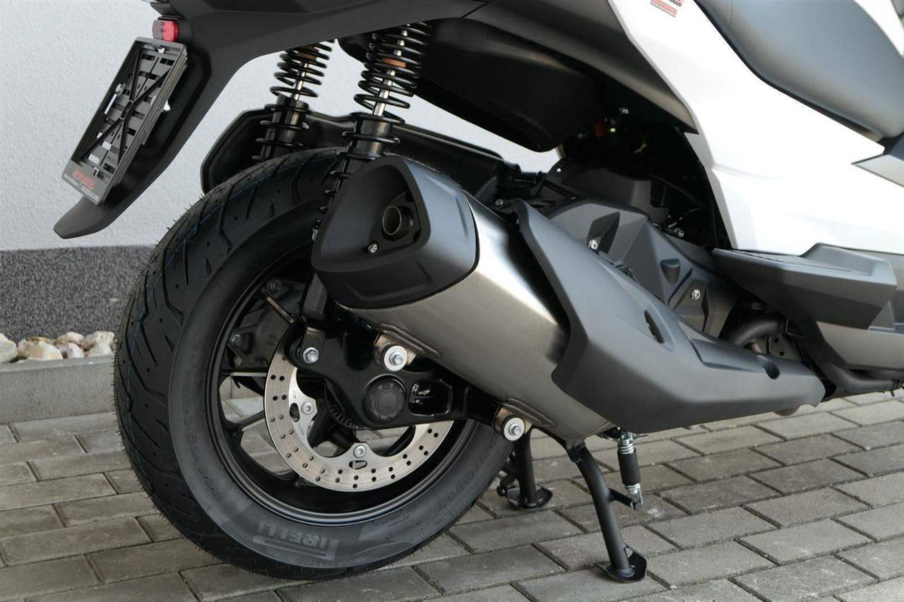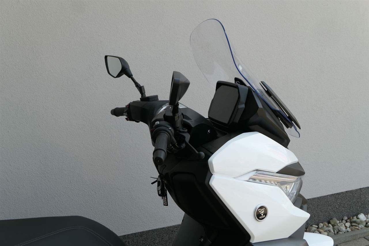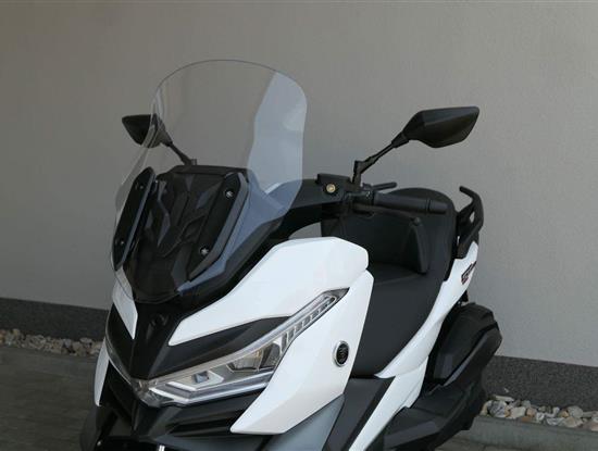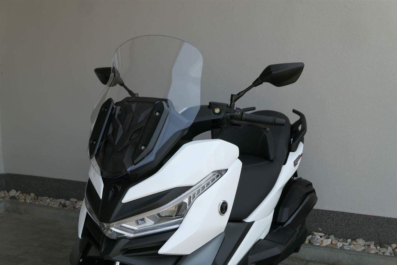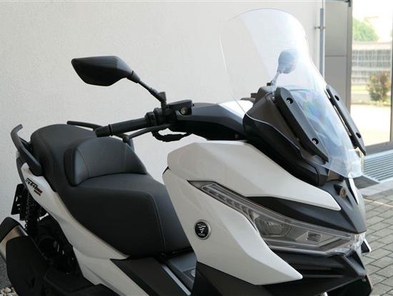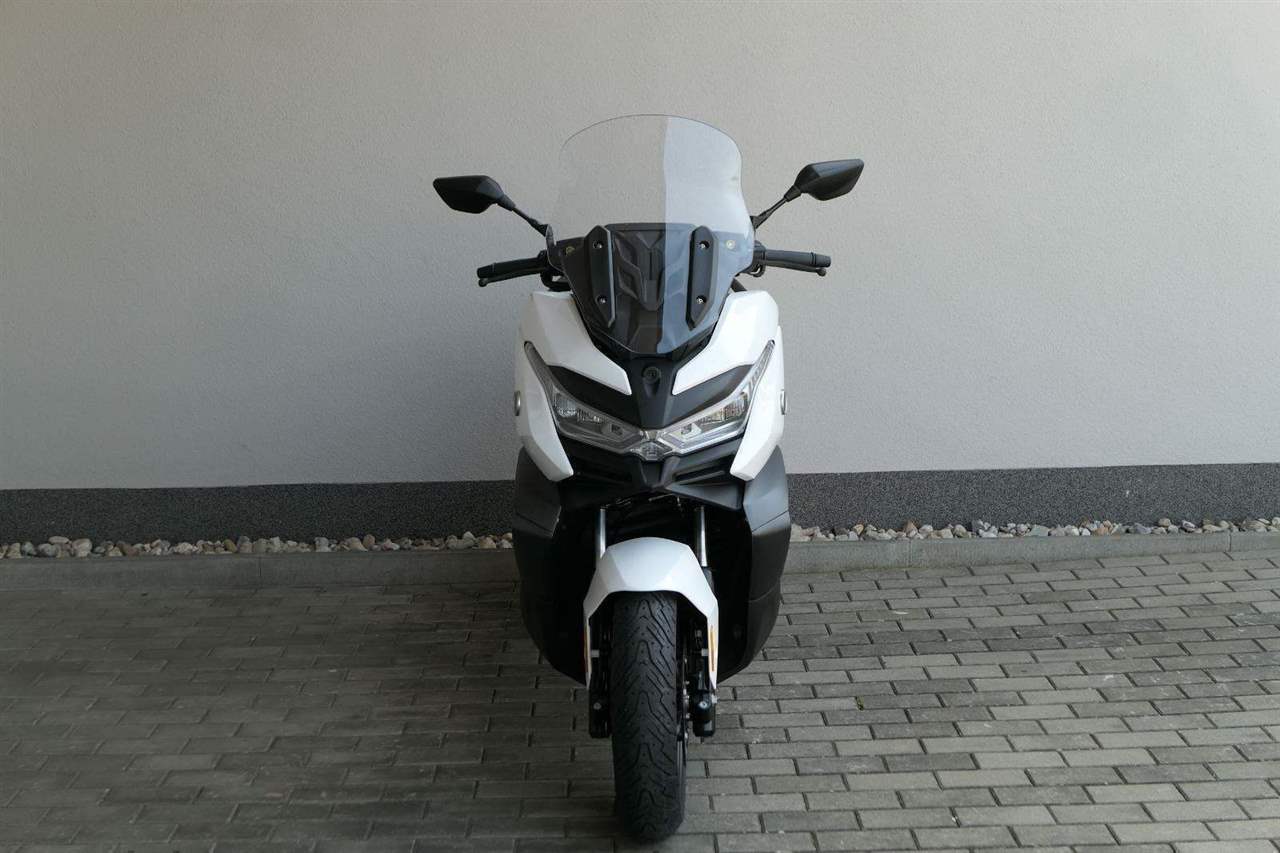 První skútr z rodiny VOGE se řadí do objemové kategorie 350 ccm a vedle jeho silného motoru askvělé ovladatelnosti se vyznačuje i svojí markantní moderní optikou. VOGE SR4 MAX nabízí ivelkou porci komfortu a výbavy. systém kontroly trakce TCS, kompletní LED osvětlení včetně denního svícení a svícení do zatáček, velký TFT displej s konektivitou, USB zásuvka, kamera, keyless systém, vyhřívané rukojeti, vyhřívané sedadlo, elektricky stavitelné plexi