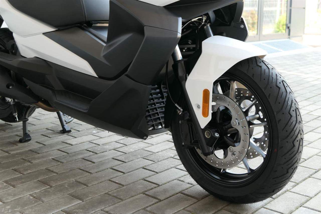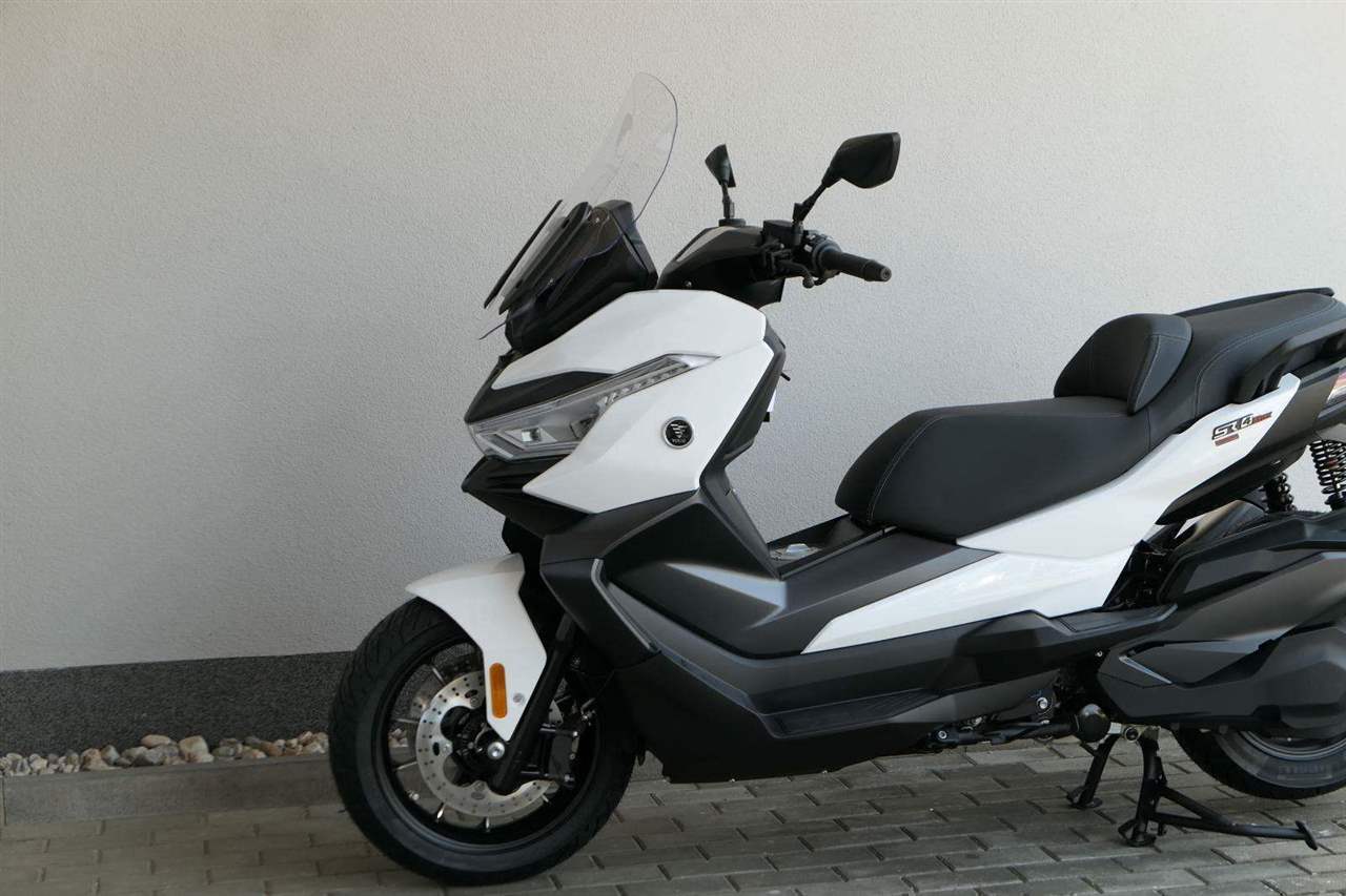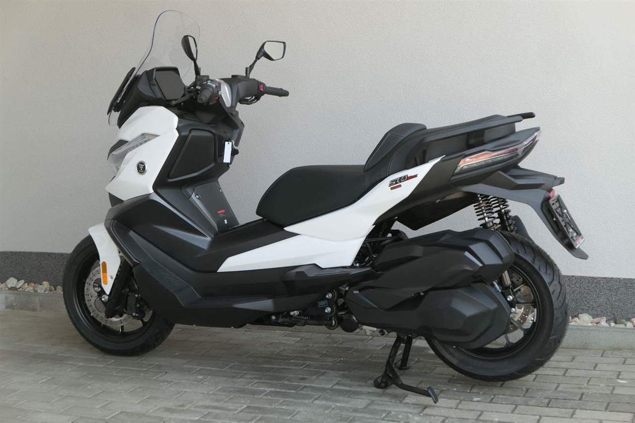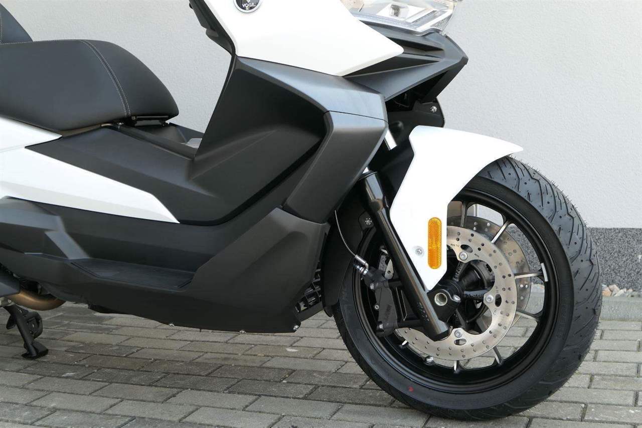 První skútr z rodiny VOGE se řadí do objemové kategorie 350 ccm a vedle jeho silného motoru askvělé ovladatelnosti se vyznačuje i svojí markantní moderní optikou. VOGE SR4 MAX nabízí ivelkou porci komfortu a výbavy. systém kontroly trakce TCS, kompletní LED osvětlení včetně denního svícení a svícení do zatáček, velký TFT displej s konektivitou, USB zásuvka, kamera, keyless systém, vyhřívané rukojeti, vyhřívané sedadlo, elektricky stavitelné plexi
